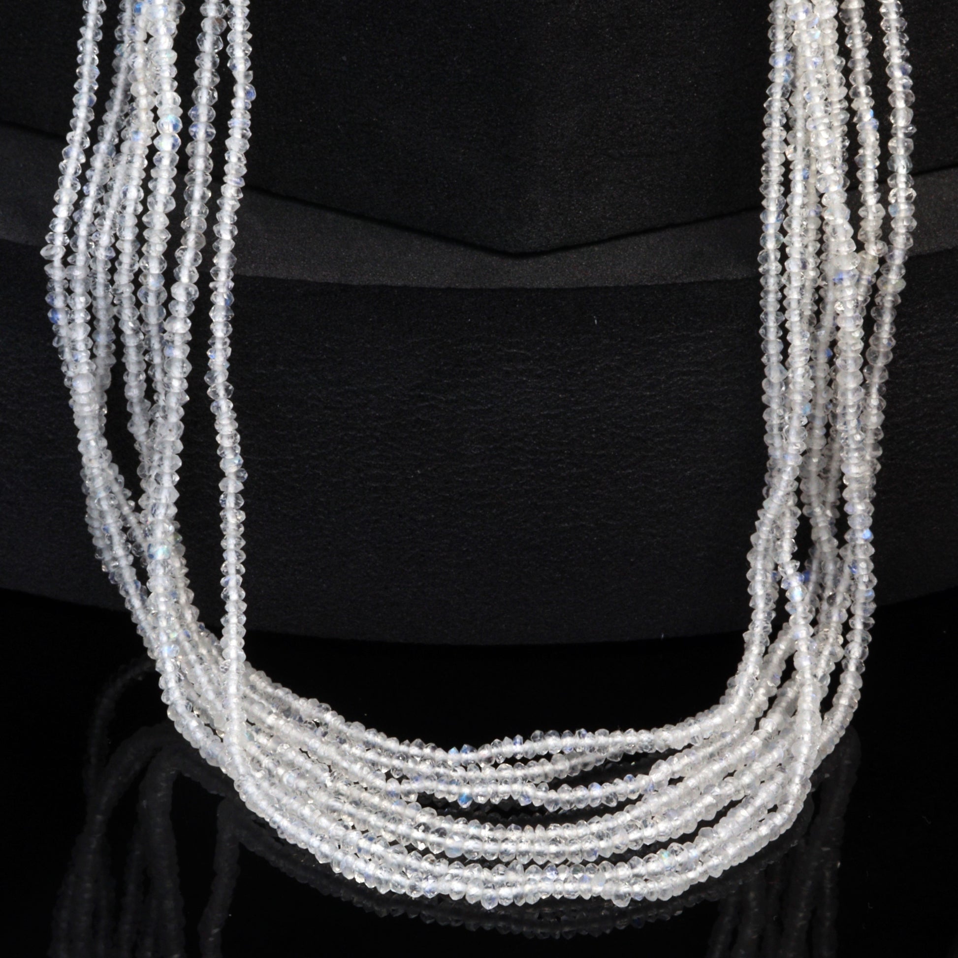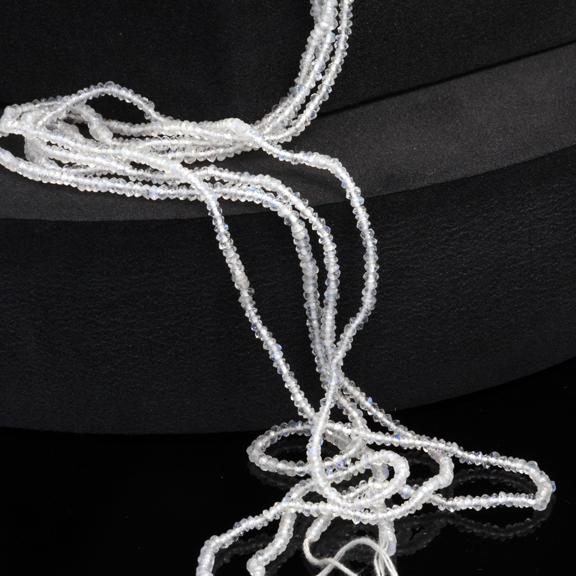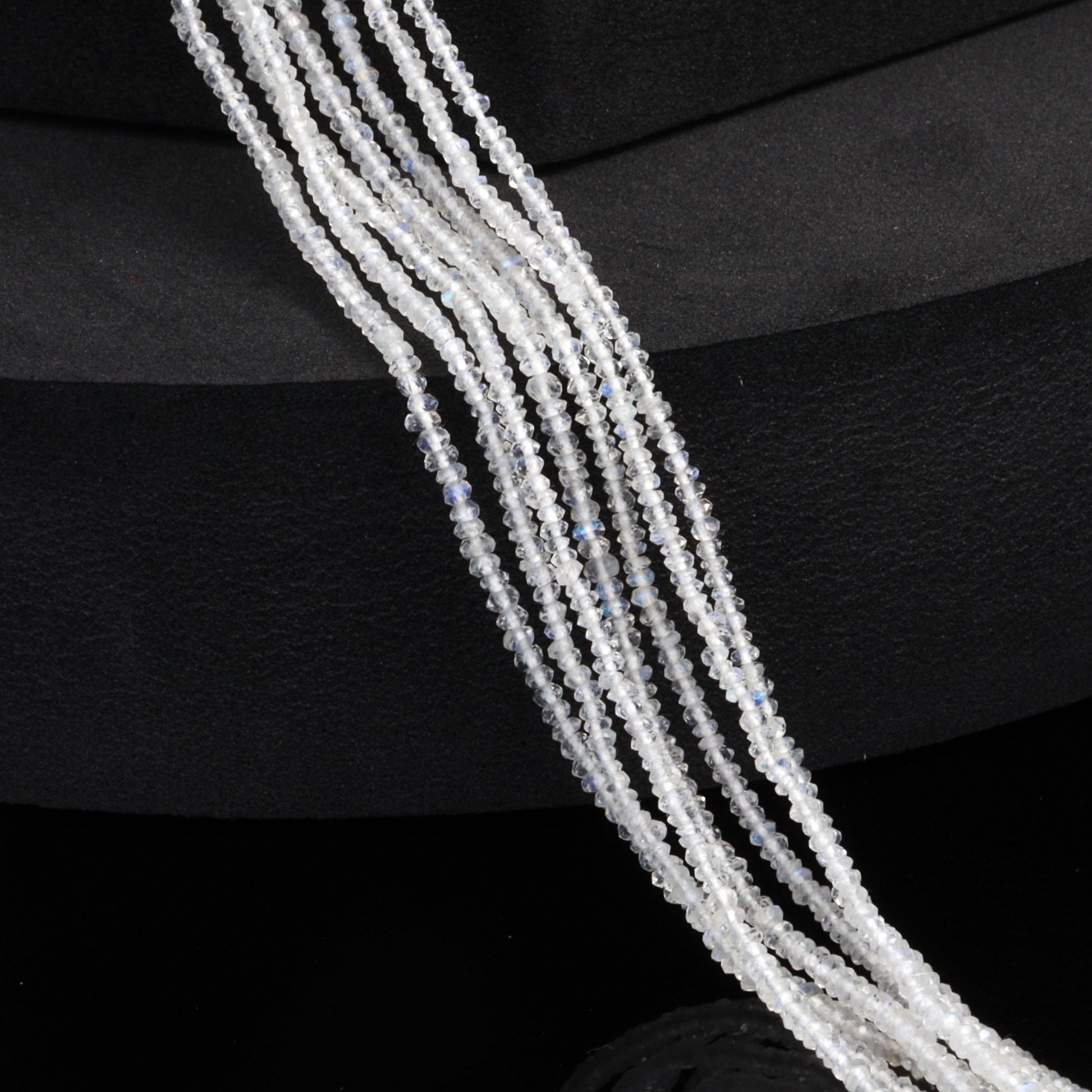AA Blue Rainbow Moonstone 2mm Hand Faceted Rondelles Bead Strand