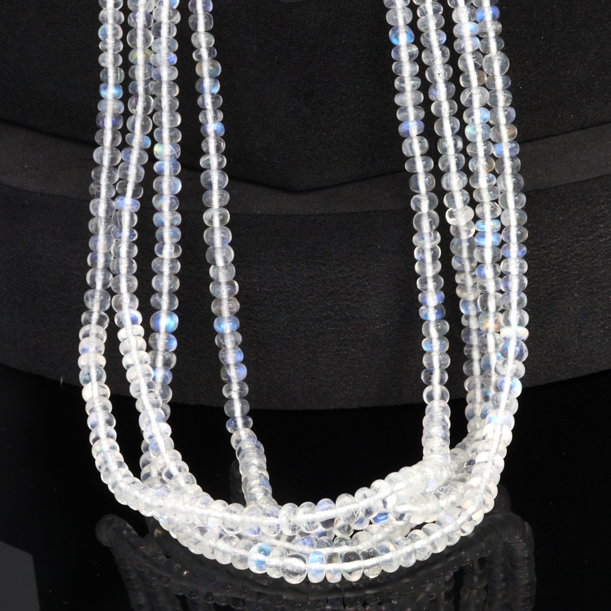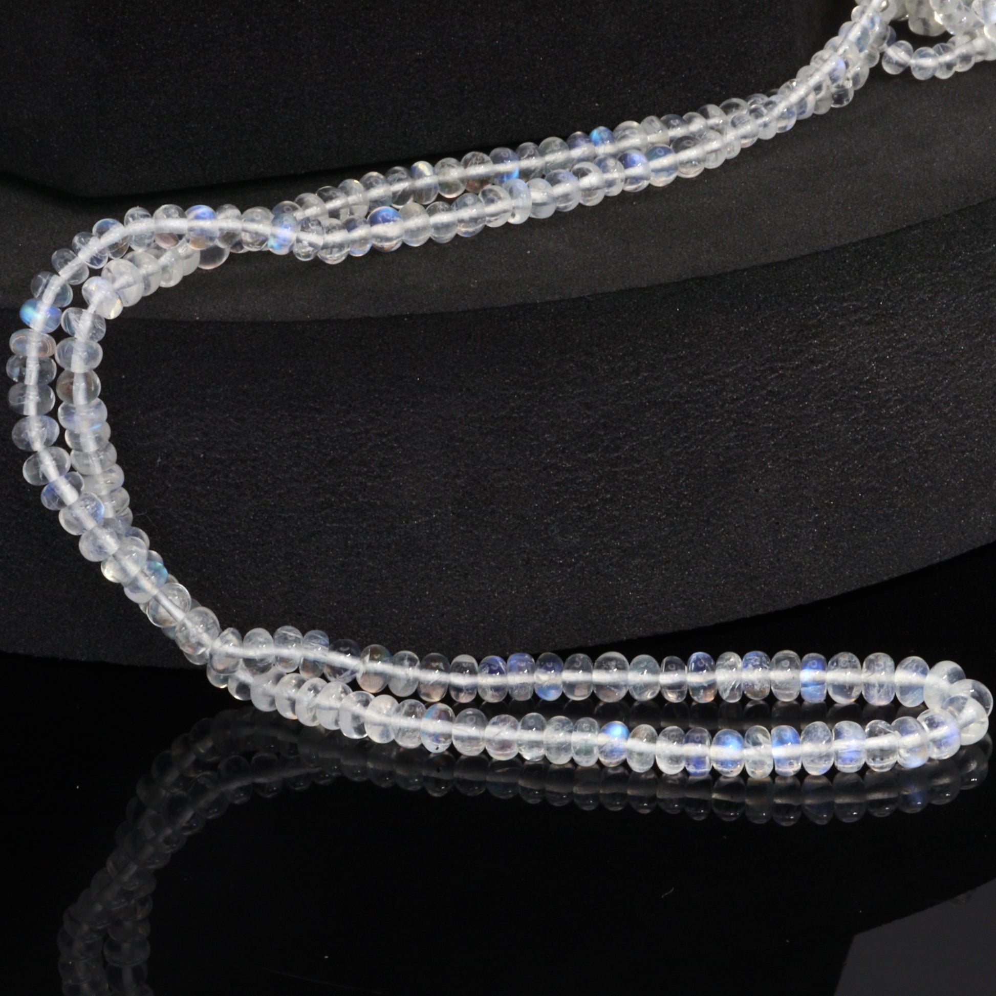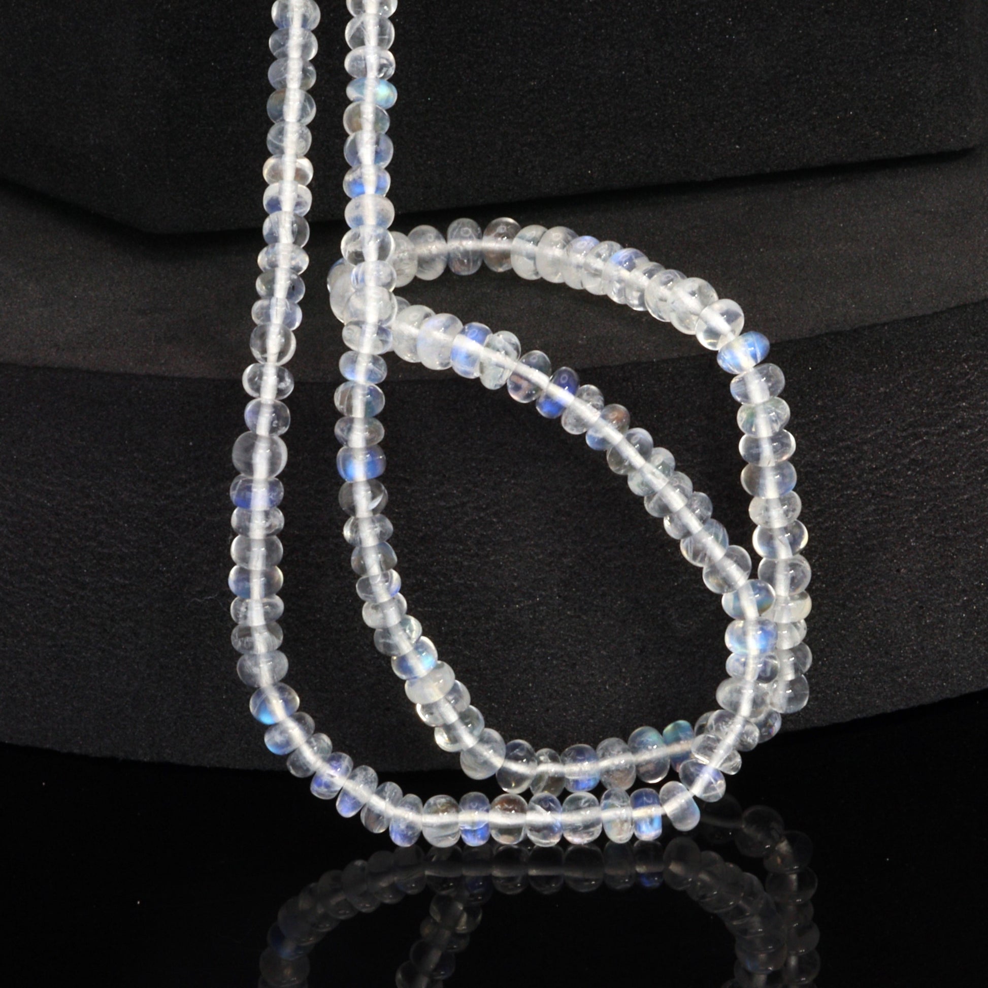 AA Blue Rainbow Moonstone 3.5mm - 4.5mm Smooth Rondelles Bead Strand