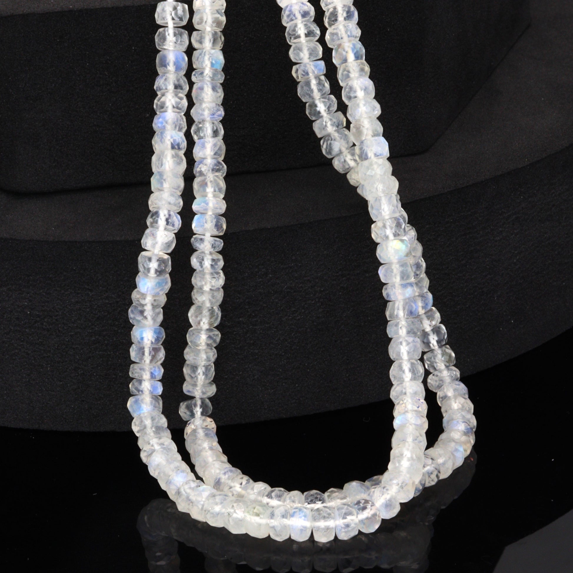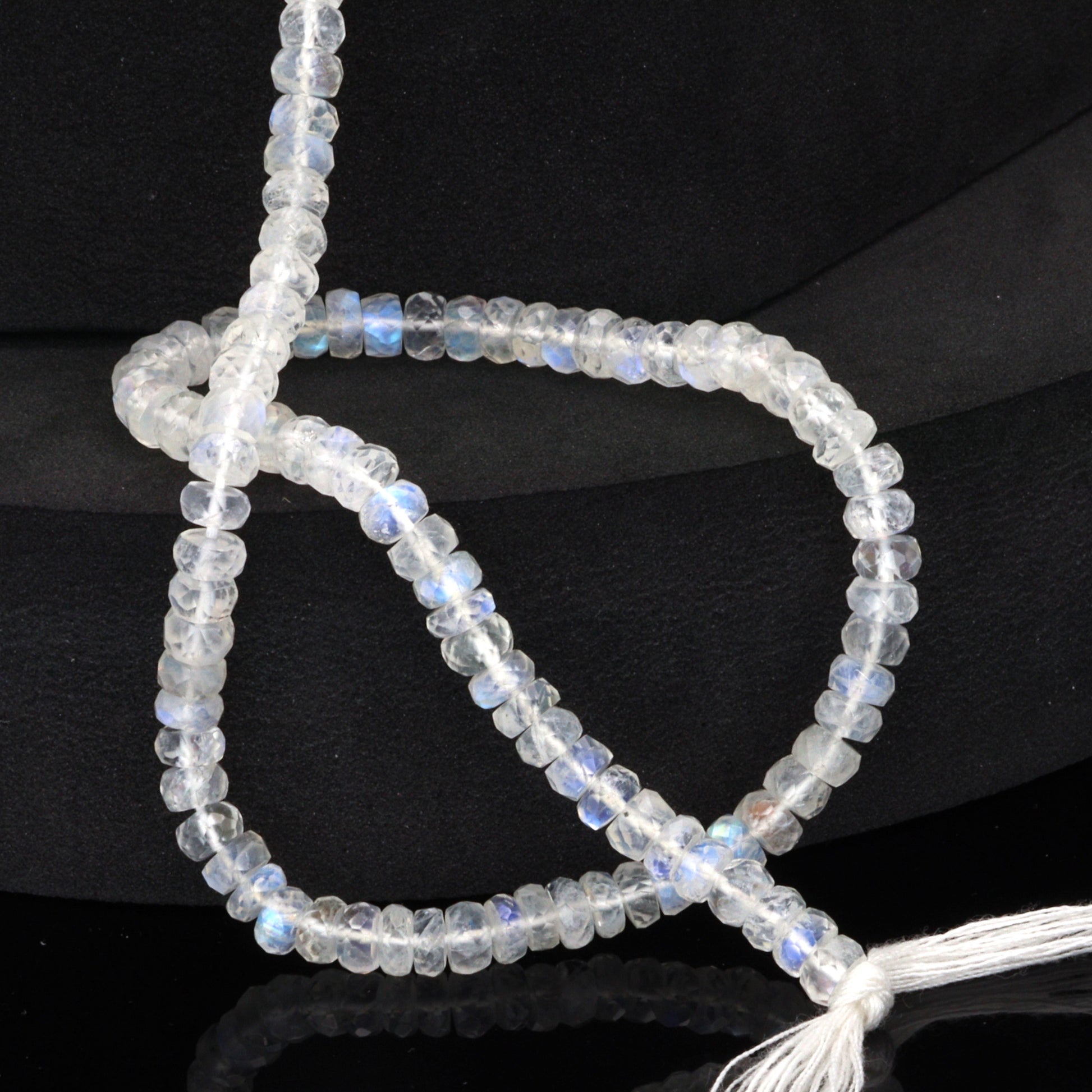 AA Blue Rainbow Moonstone 4.5mm Faceted Rondelles Bead Strand
