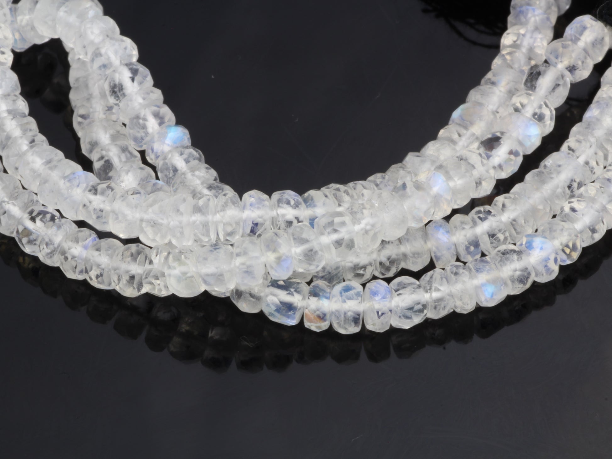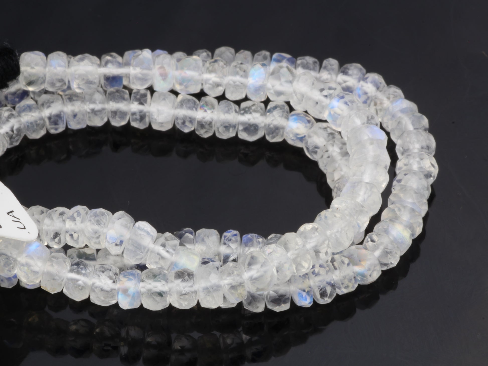 AA Blue Rainbow Moonstone 4mm Faceted Rondelles Bead Strand