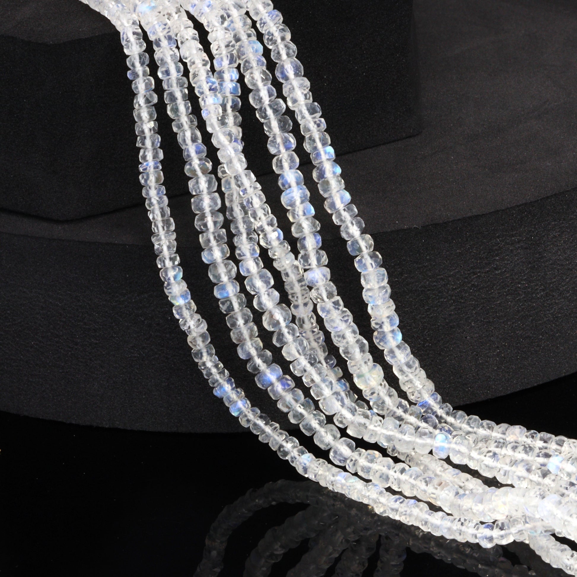 AA Blue Rainbow Moonstone 4mm Hand Faceted Rondelles Bead Strand