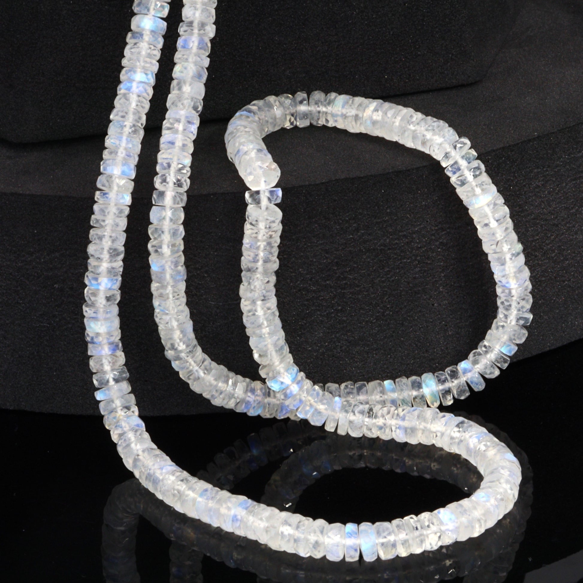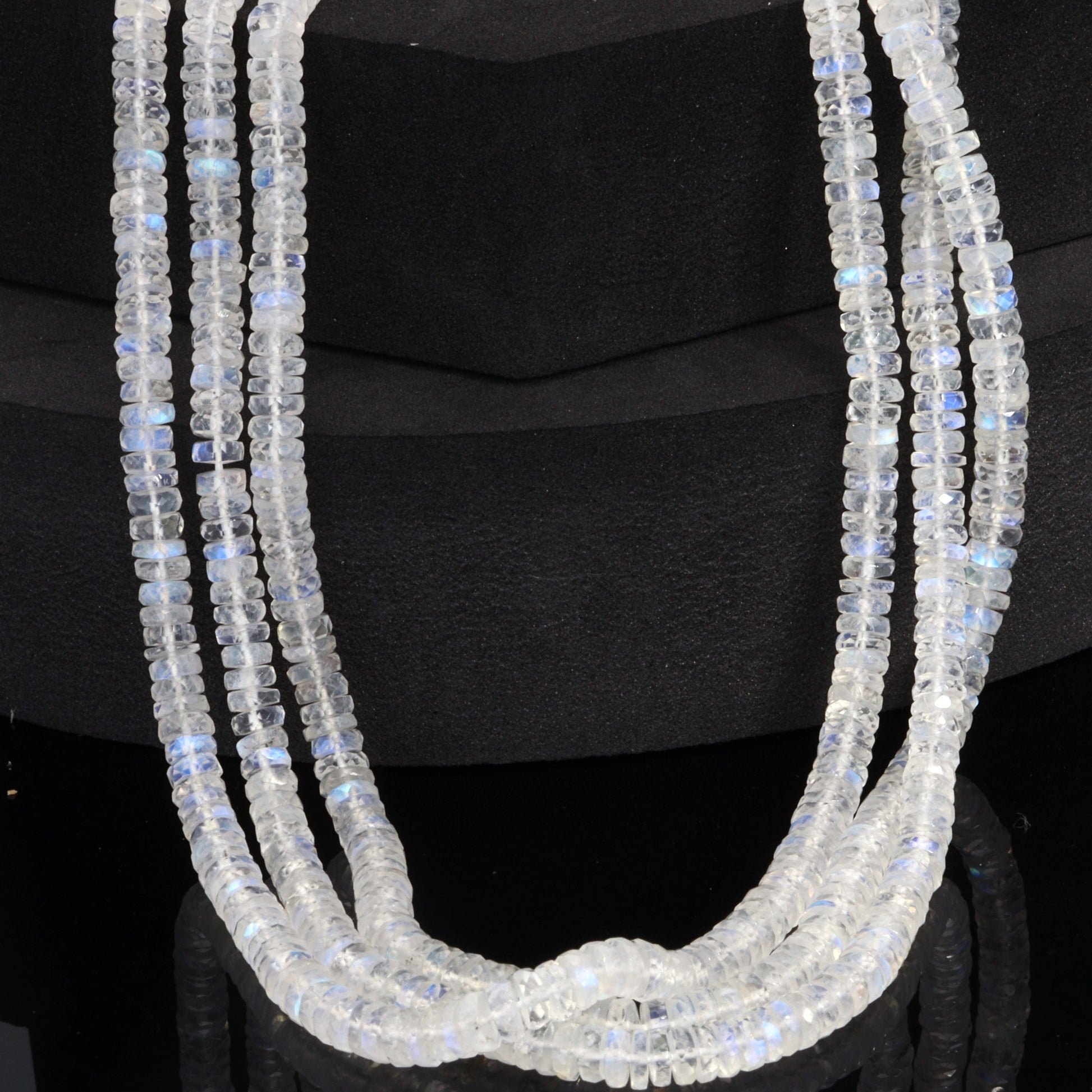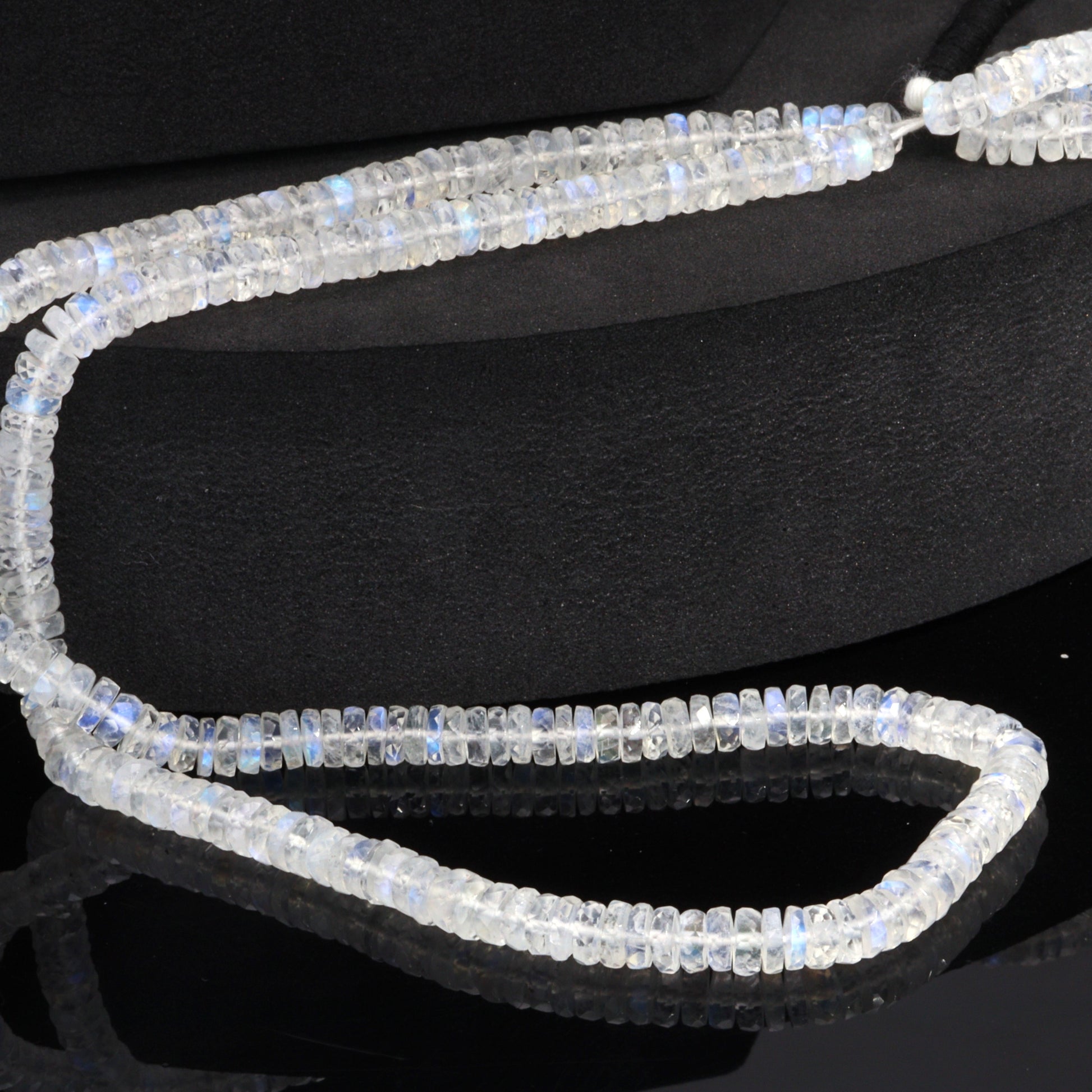 AA Blue Rainbow Moonstone 4mm Hand Faceted Tires Bead Strand