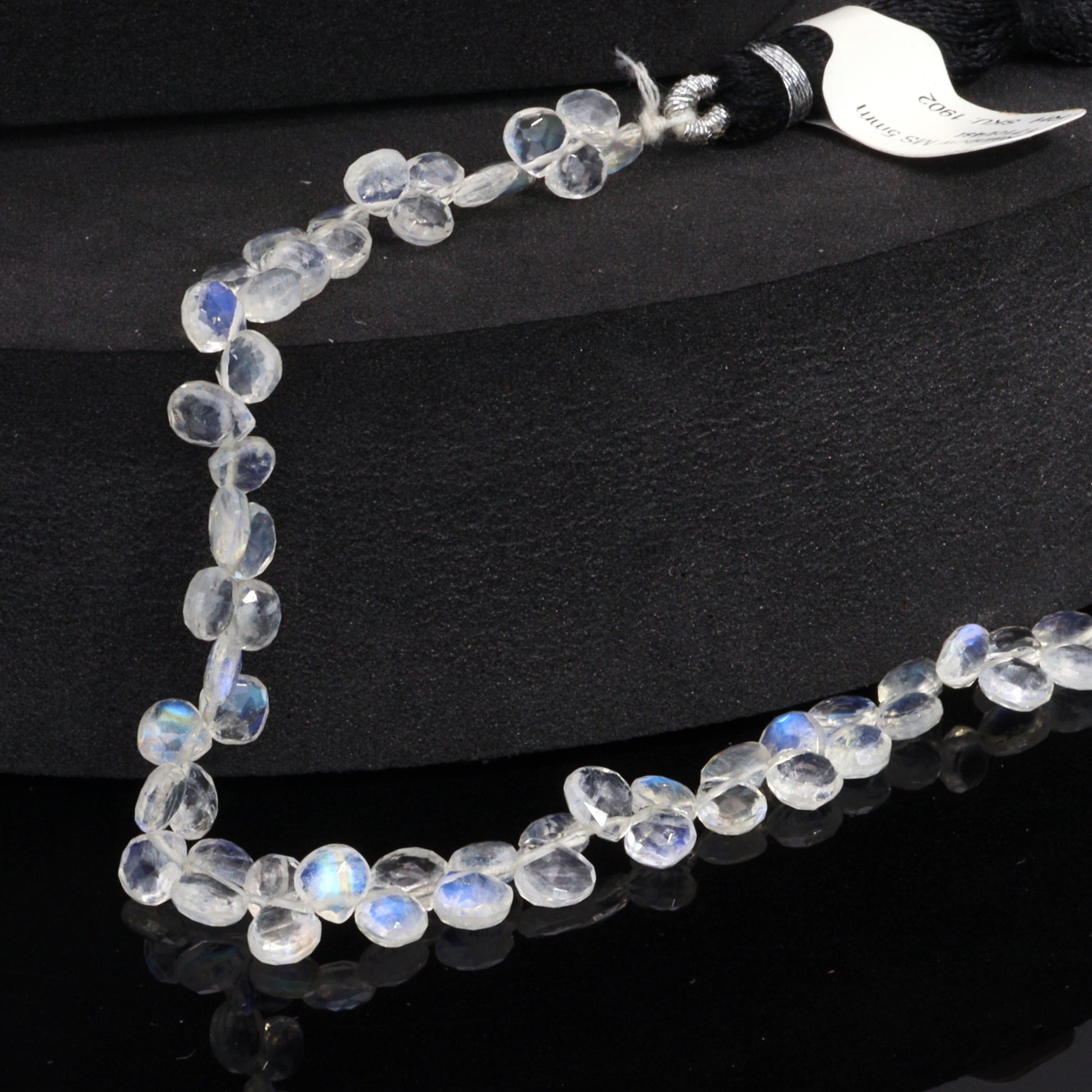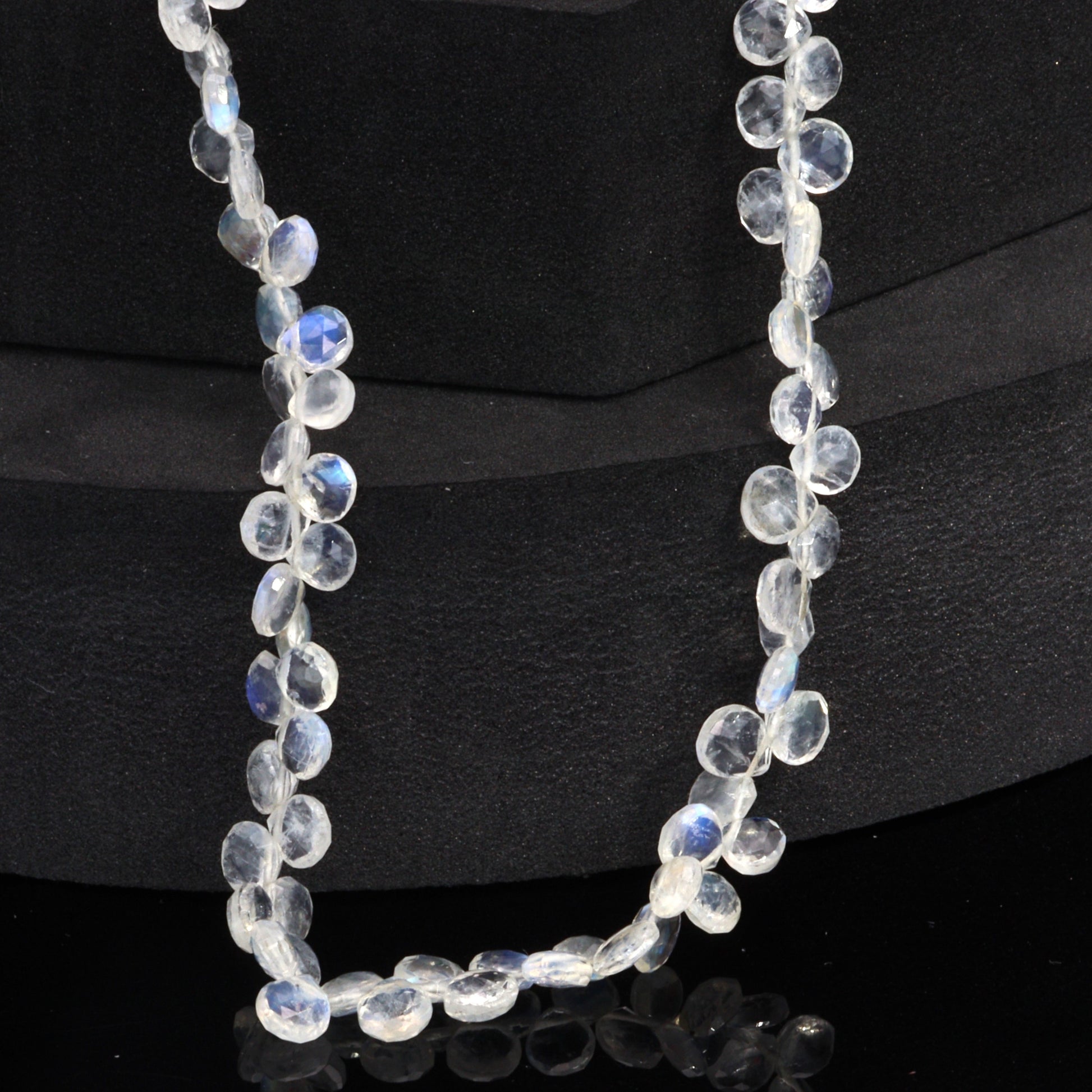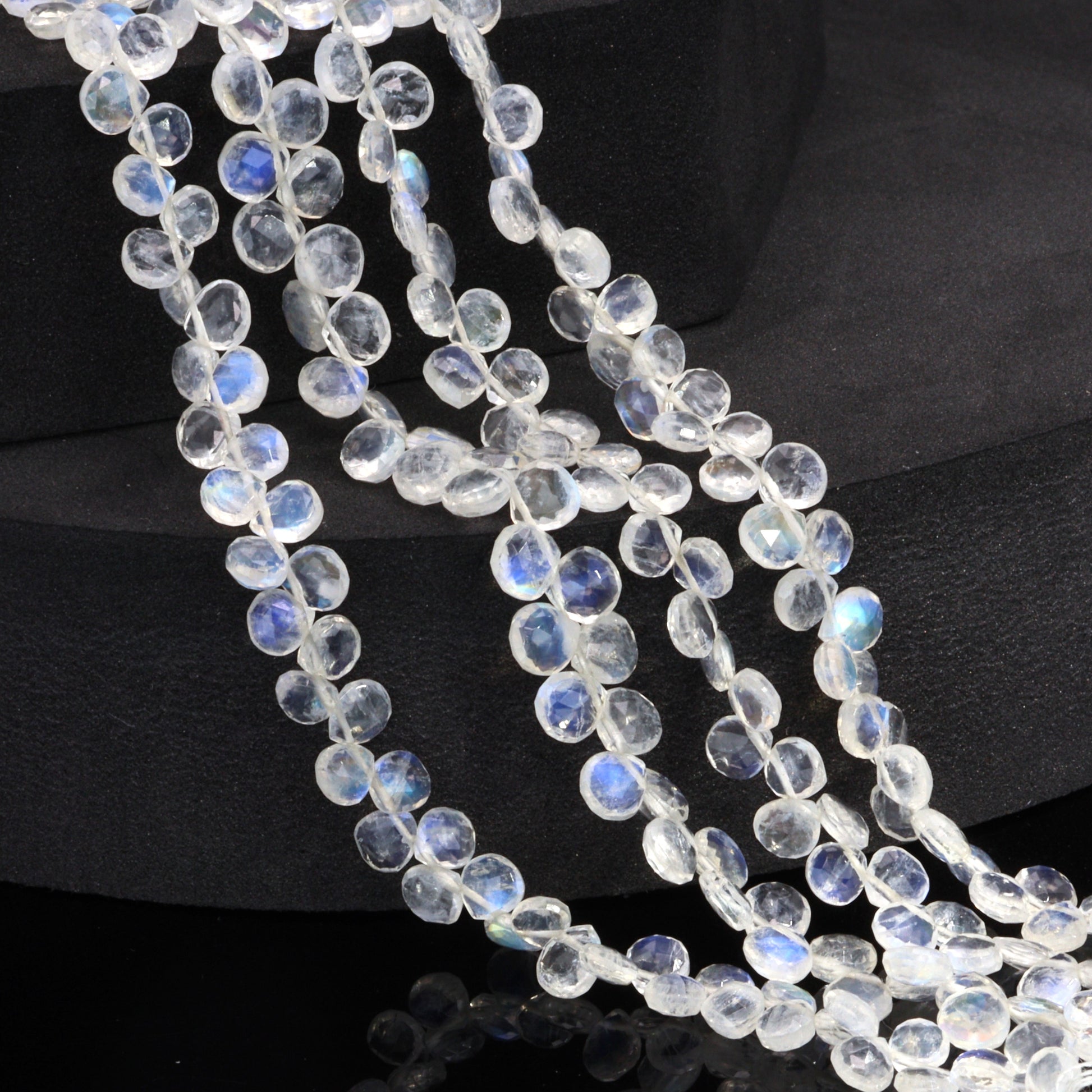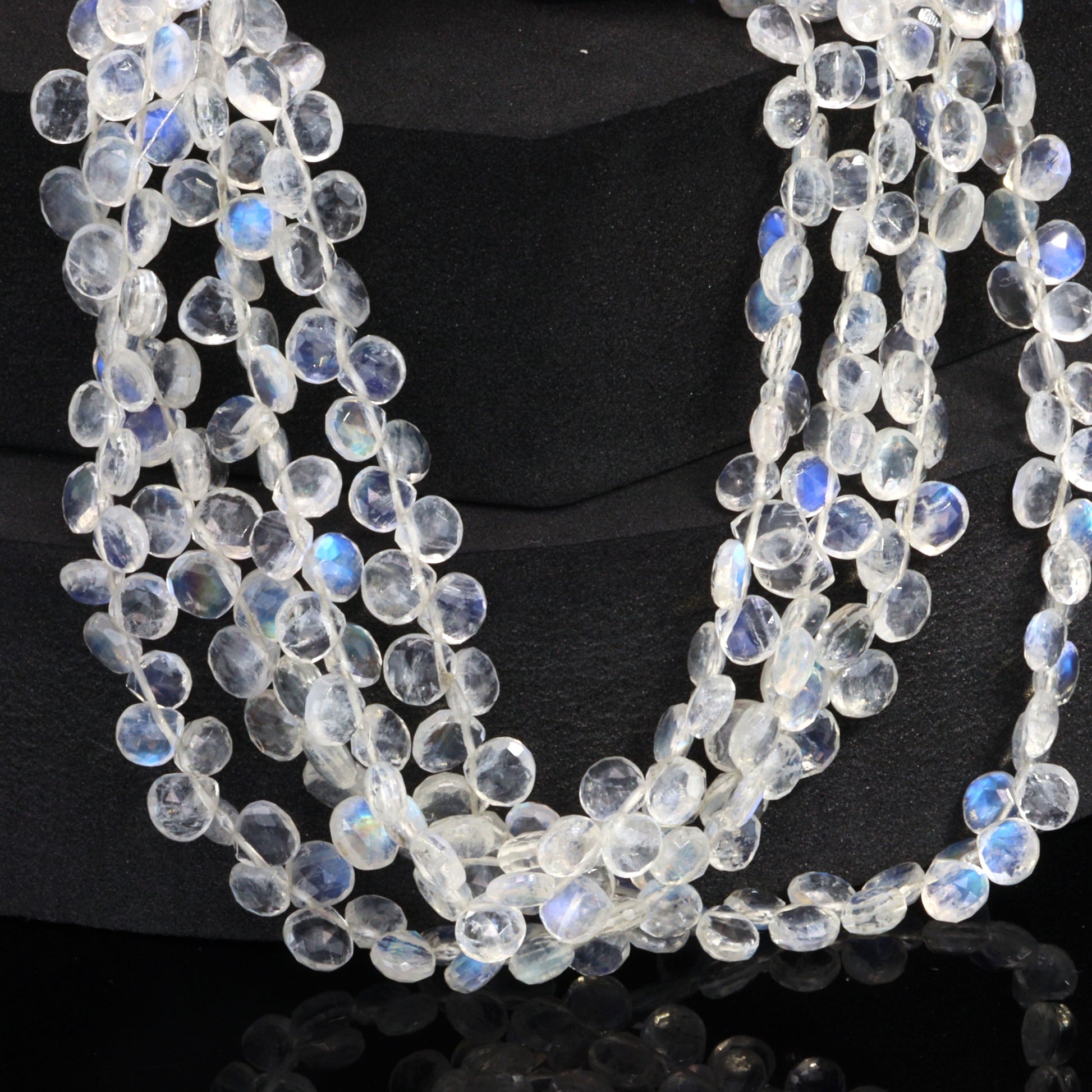 AA Blue Rainbow Moonstone 5mm Faceted Heart Shaped Briolettes Bead Strand