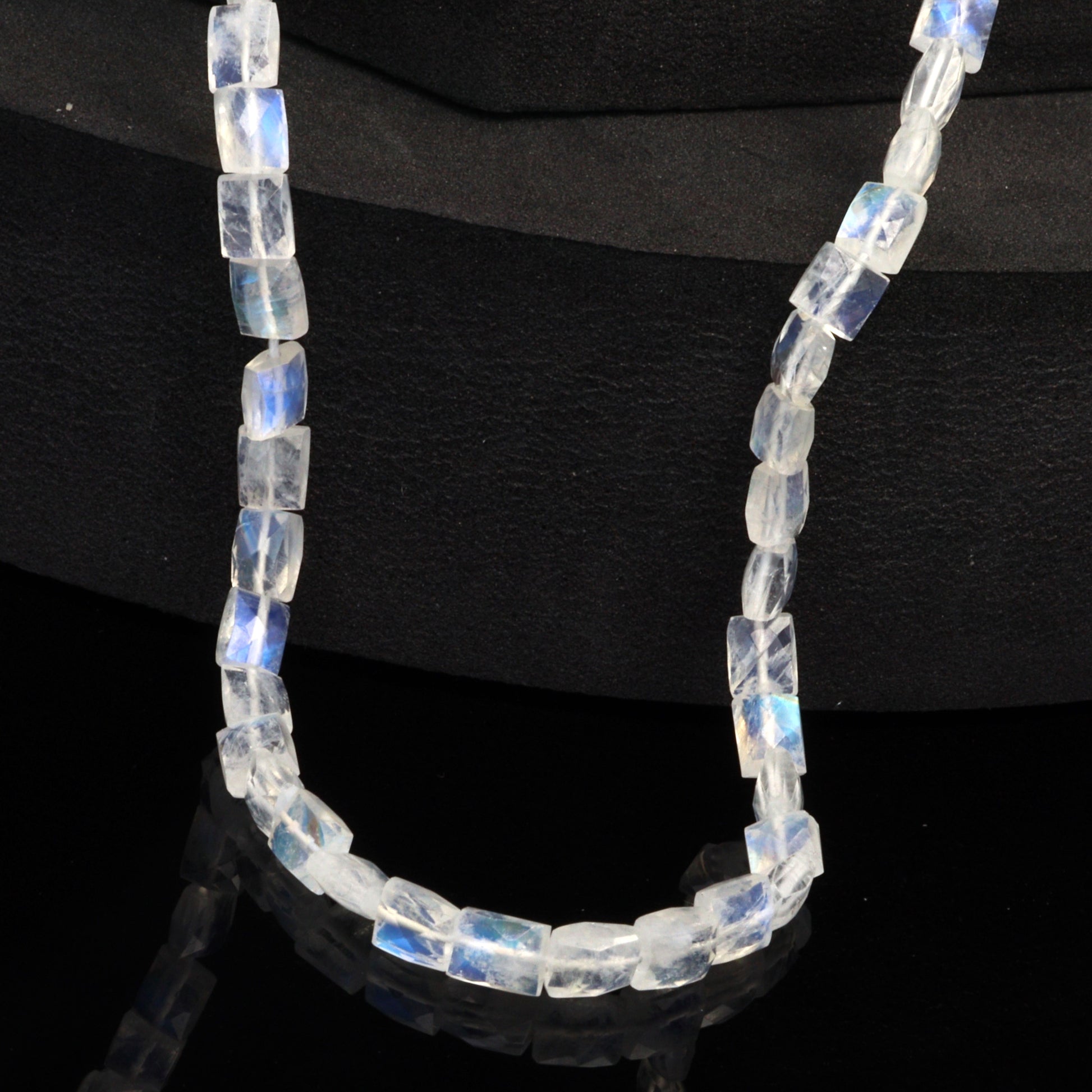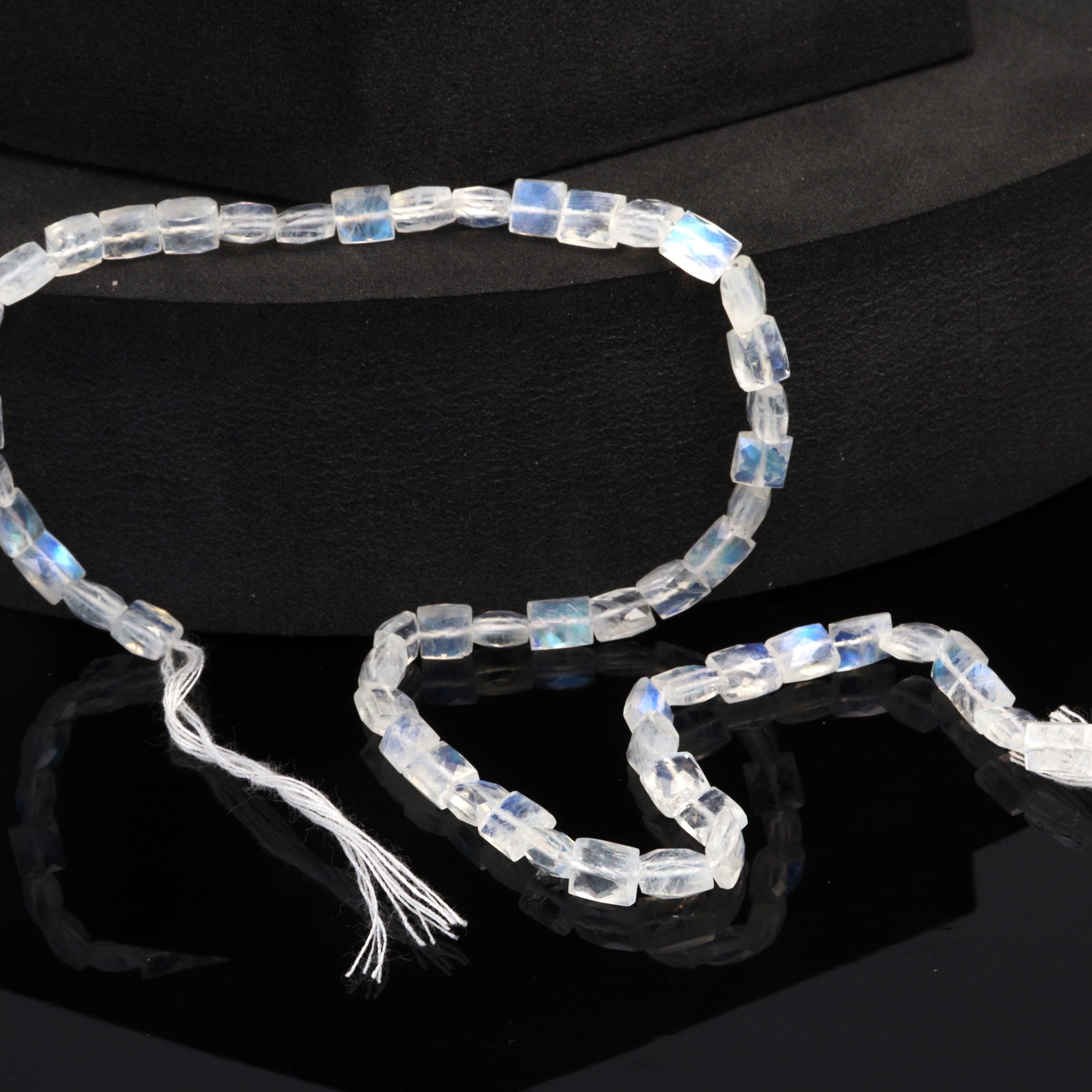 AA Blue Rainbow Moonstone 5x4mm Faceted Cushions Bead Strand