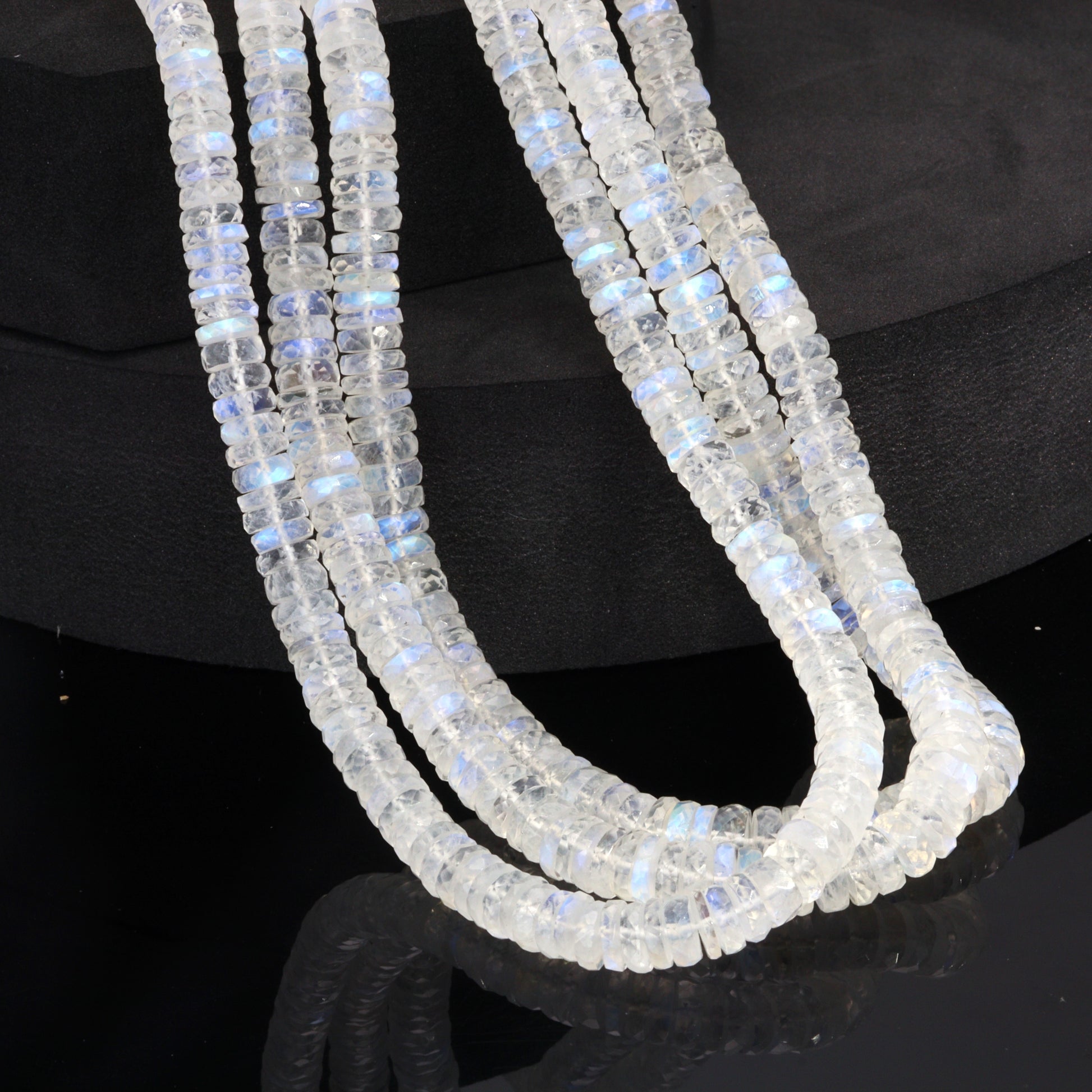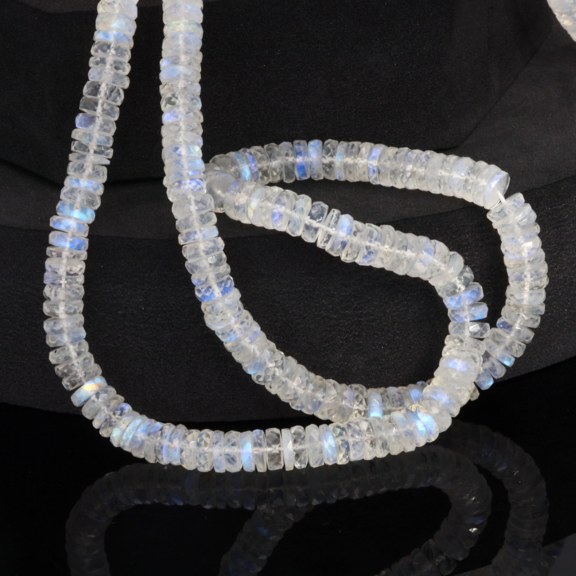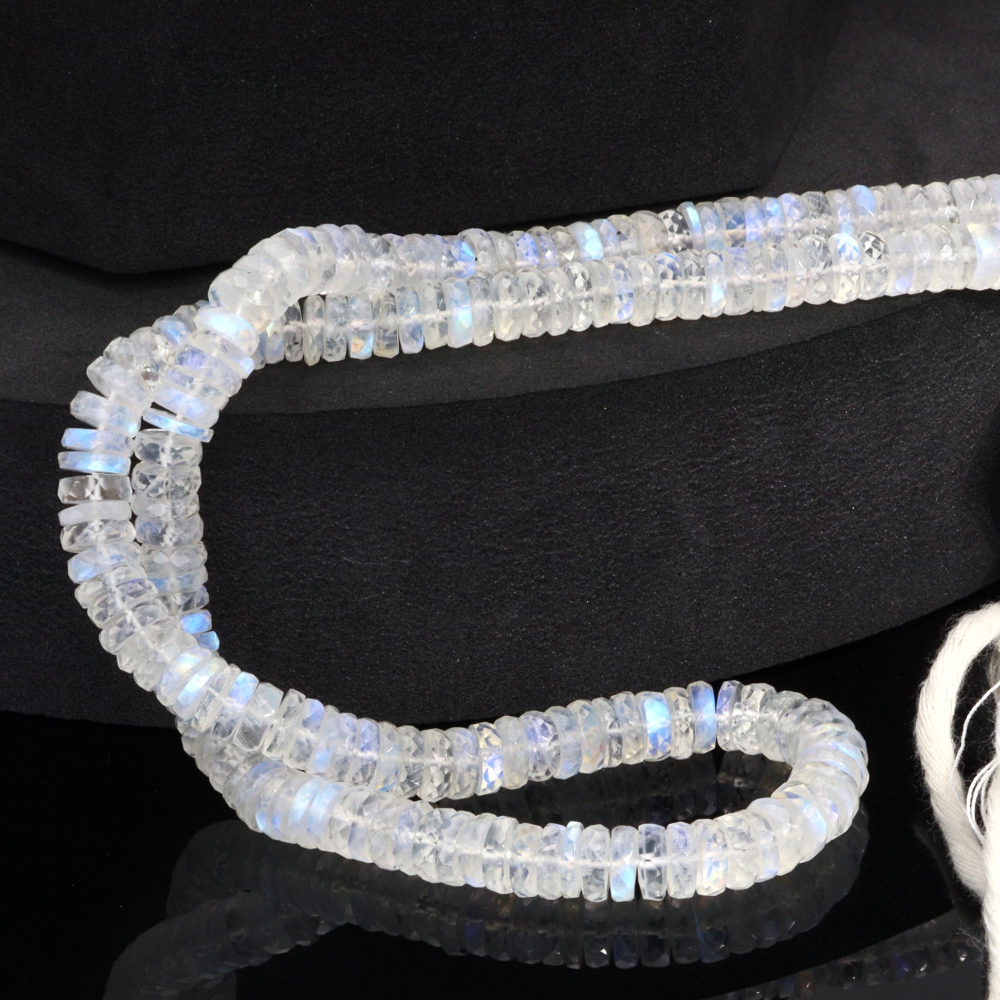 AA Blue Rainbow Moonstone 6mm Faceted Tires Bead Strand
