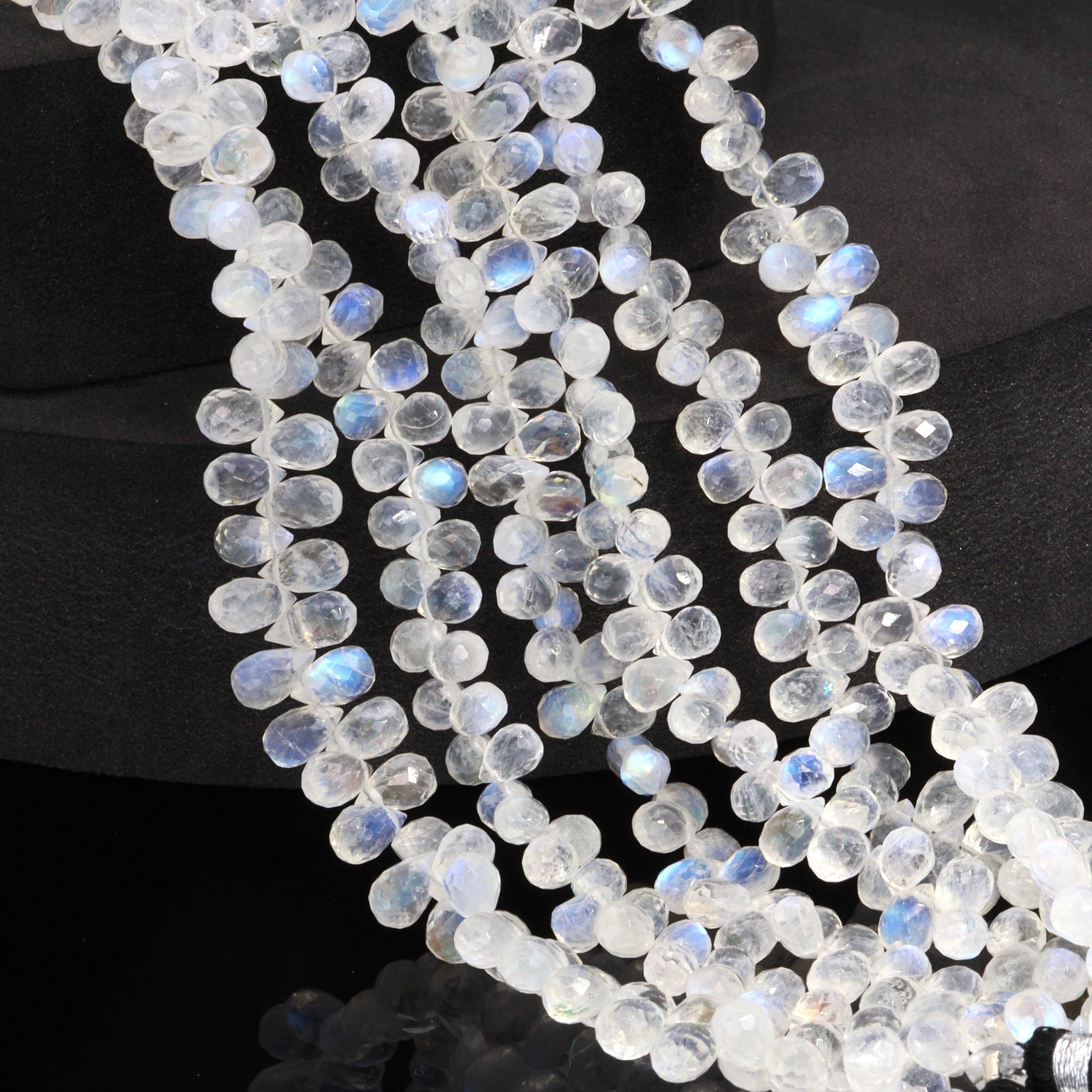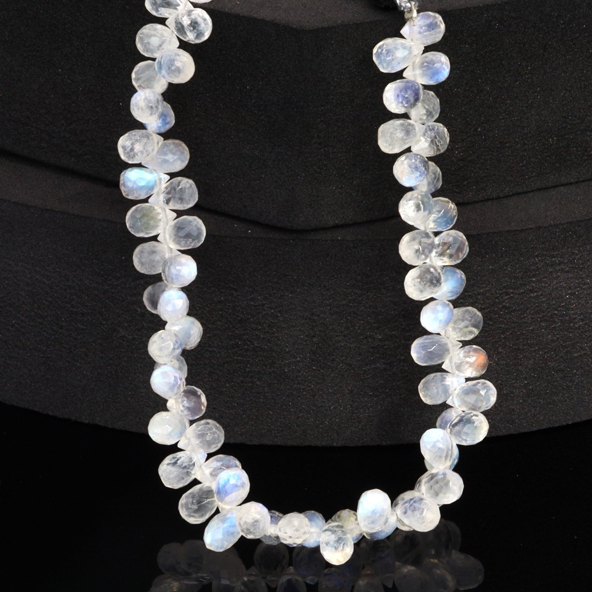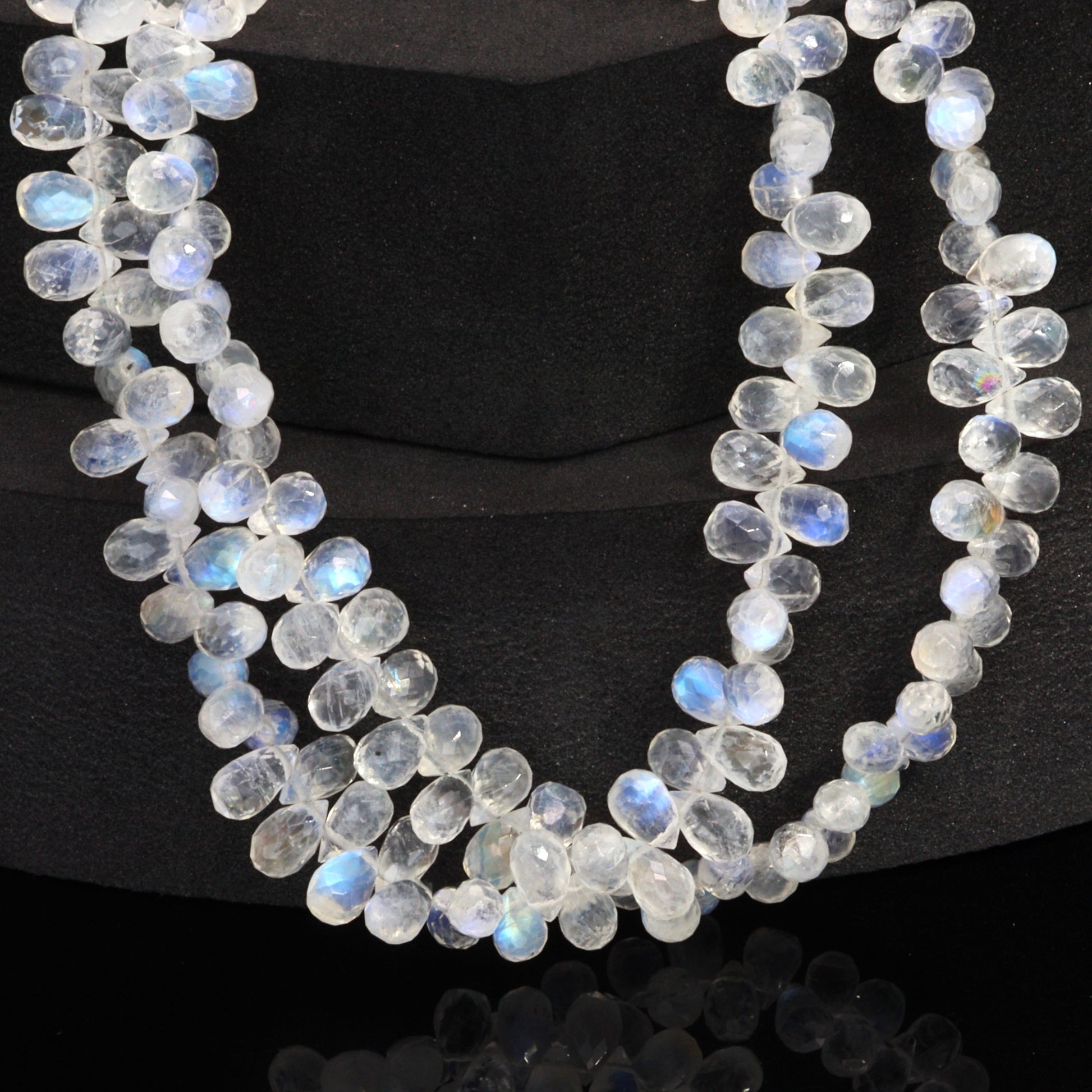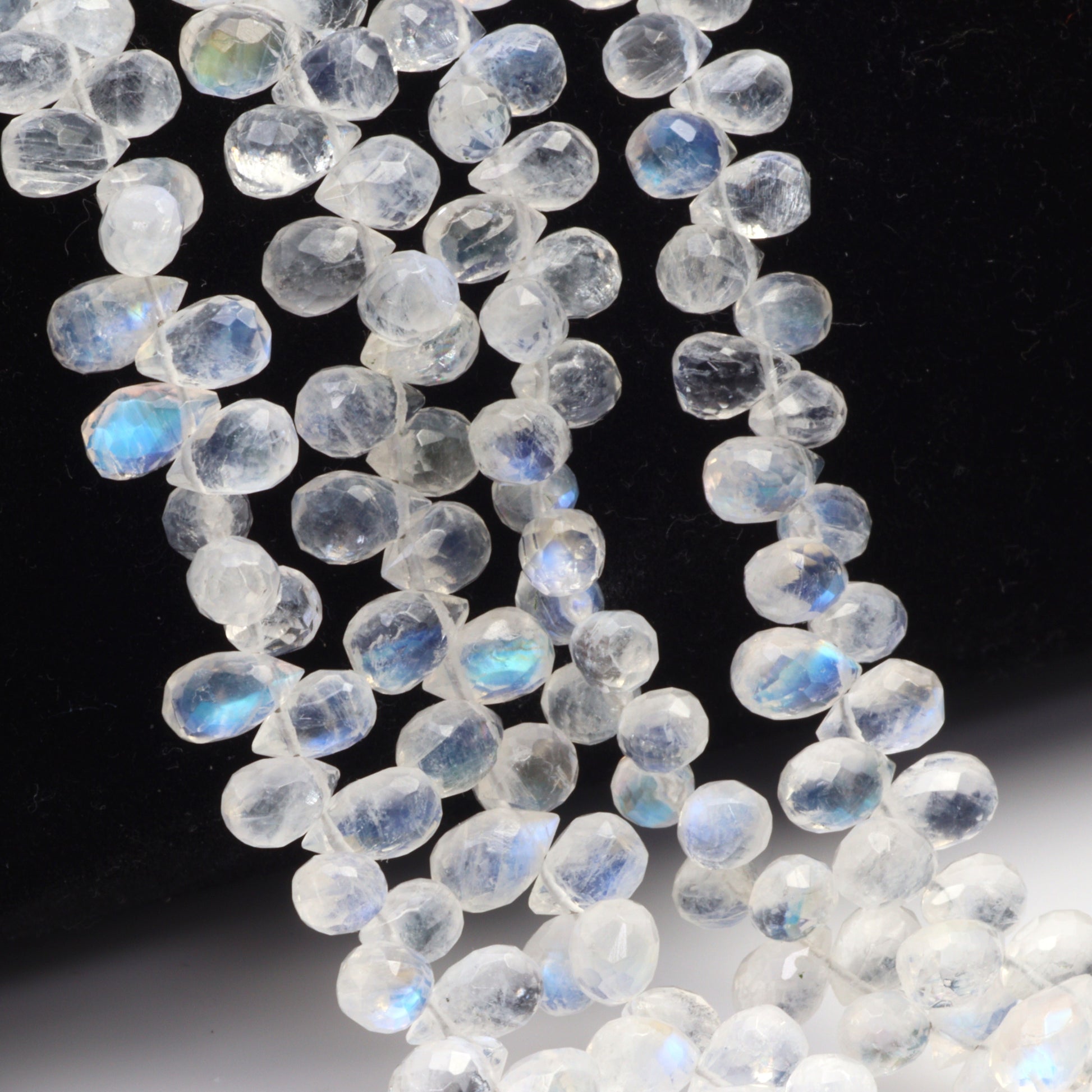 AA Blue Rainbow Moonstone 6x4mm Faceted Teardrop Briolettes Bead Strand