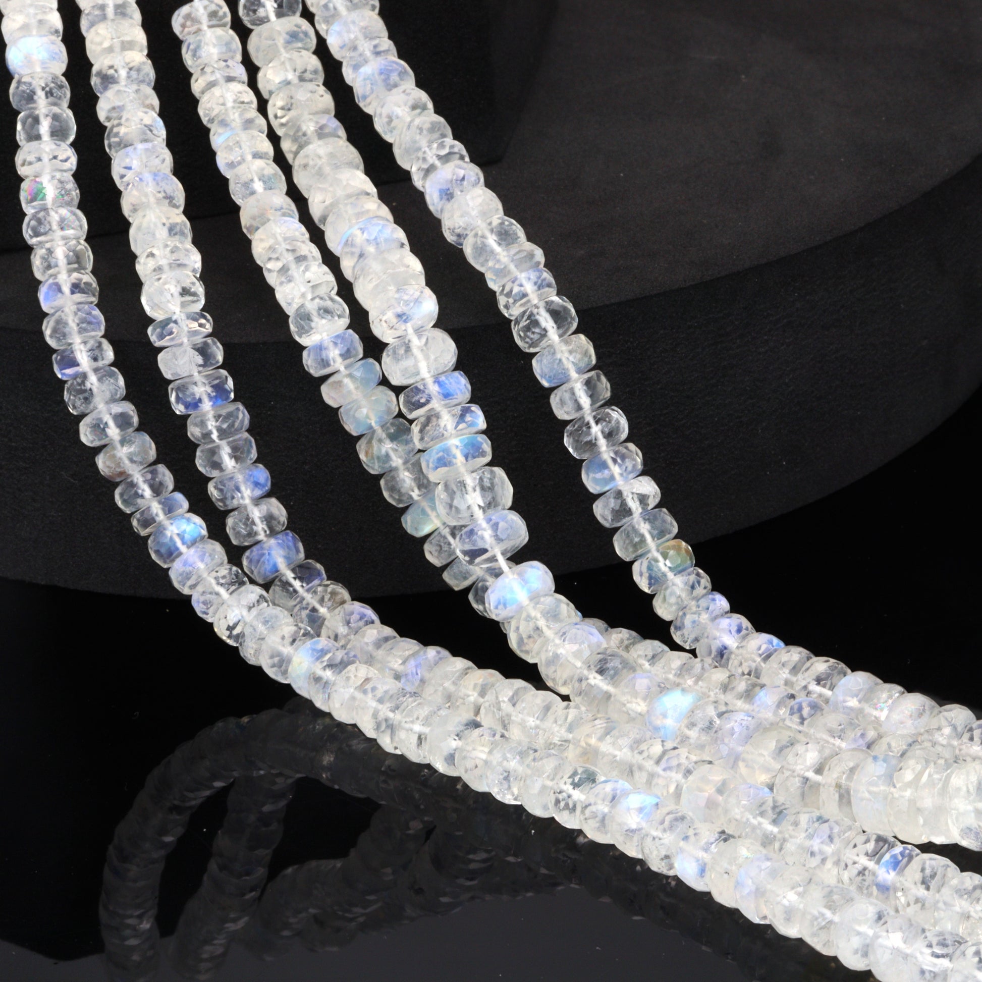 AA Blue Rainbow Moonstone 7mm Faceted Rondelles Bead Strand