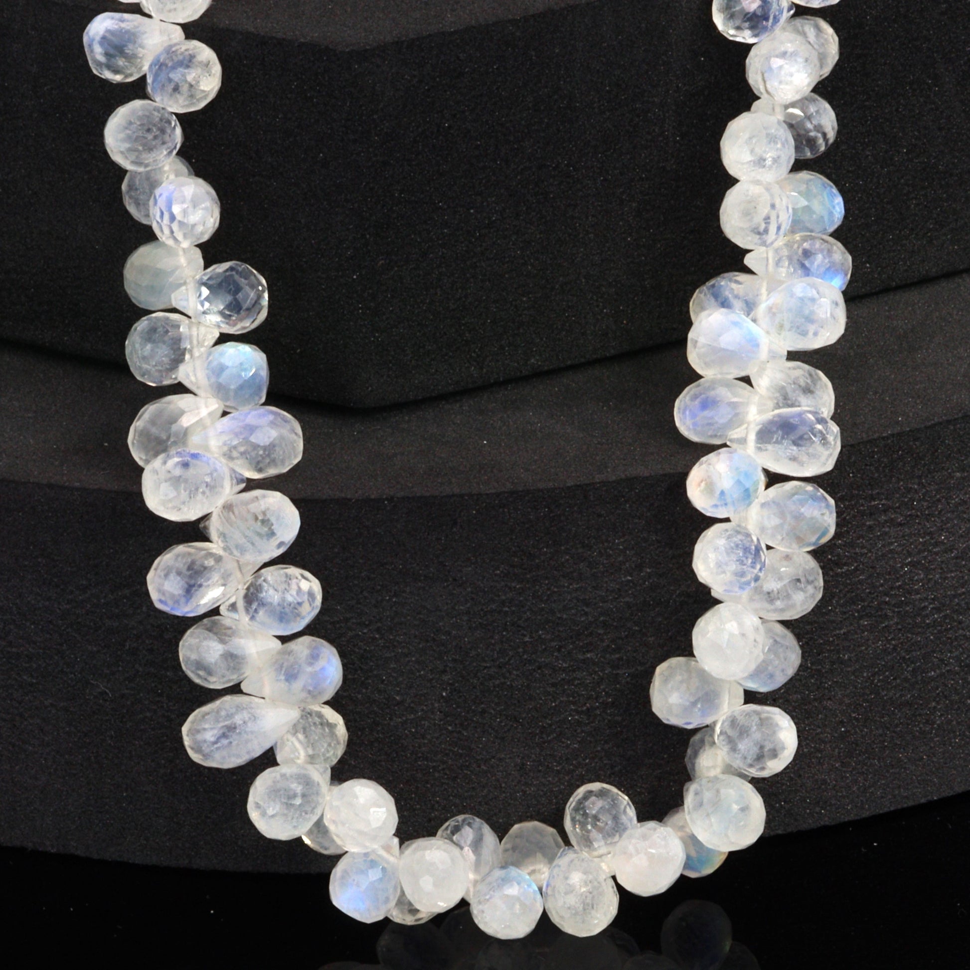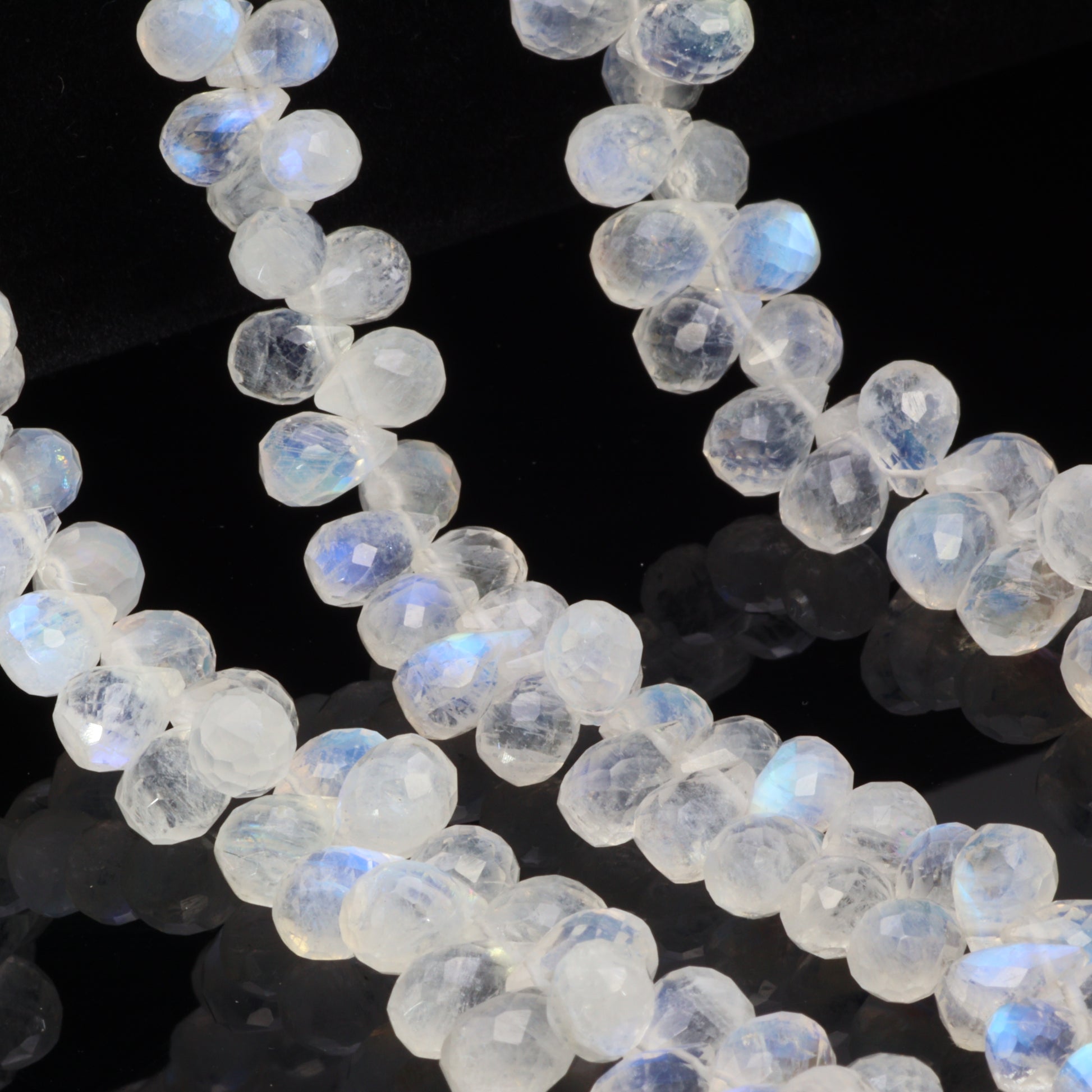 AA Blue Rainbow Moonstone 8x5mm Faceted Teardrop Briolettes Bead Strand