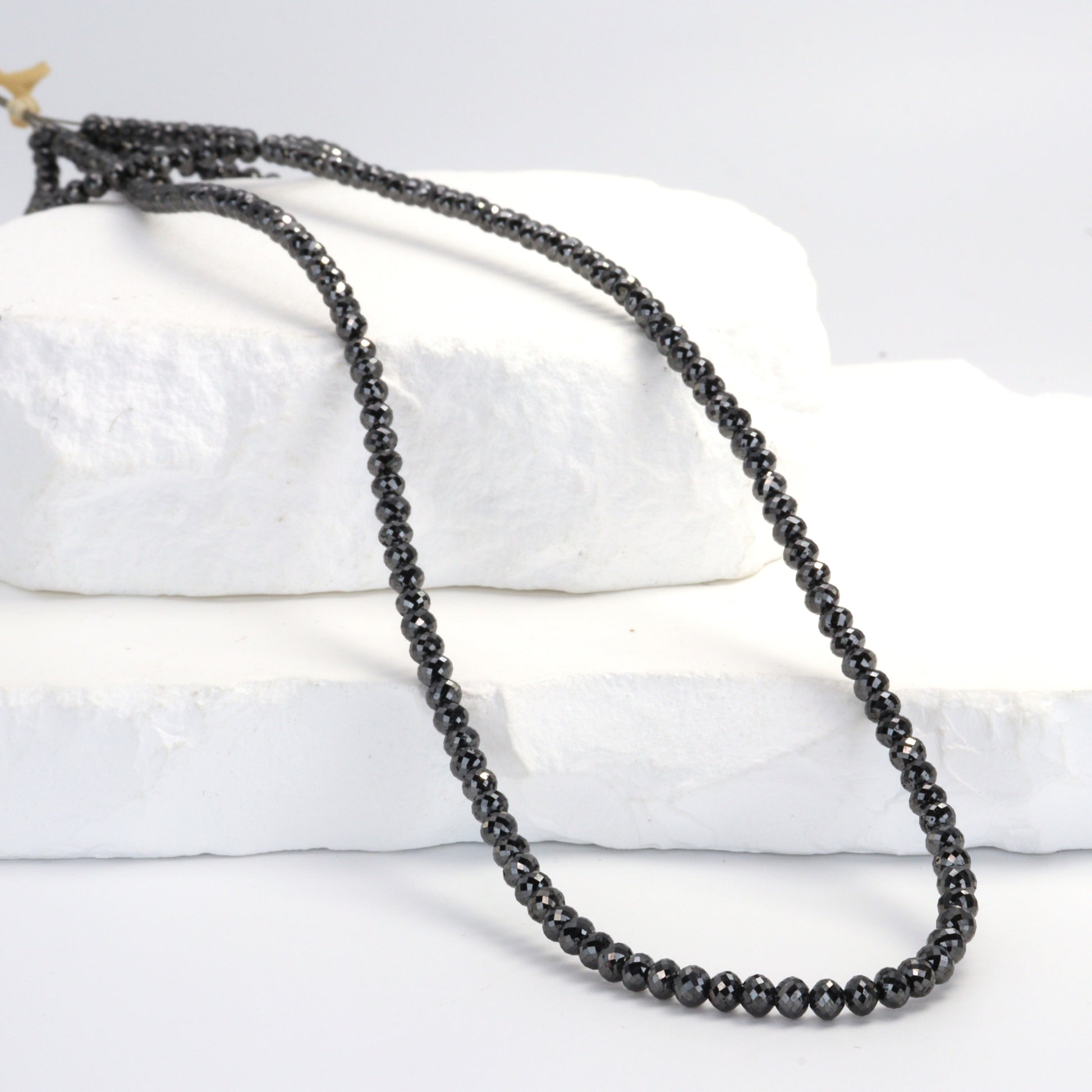 AAA Black Diamond 3mm - 3.5mm Hand Faceted Rondelles Bead Strand