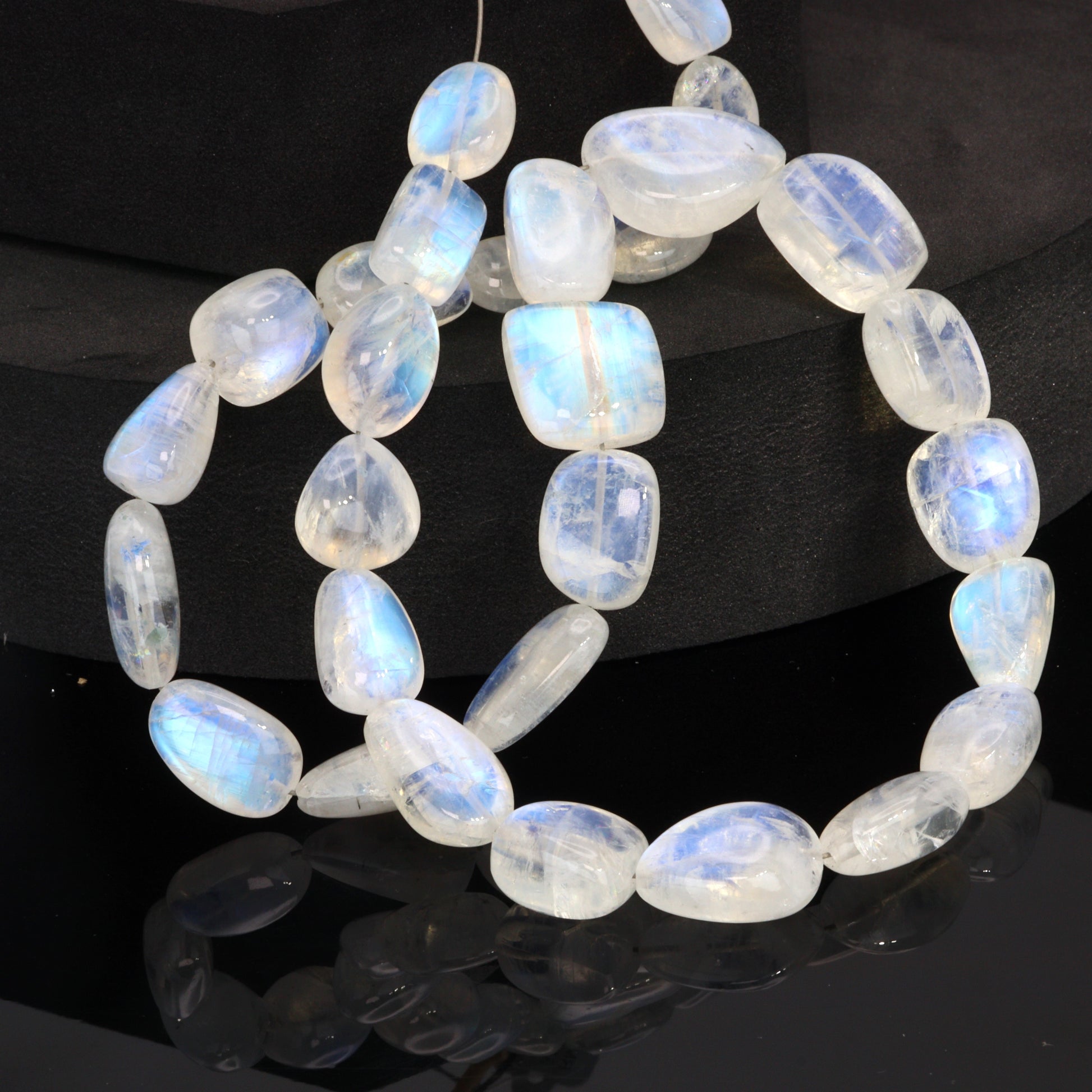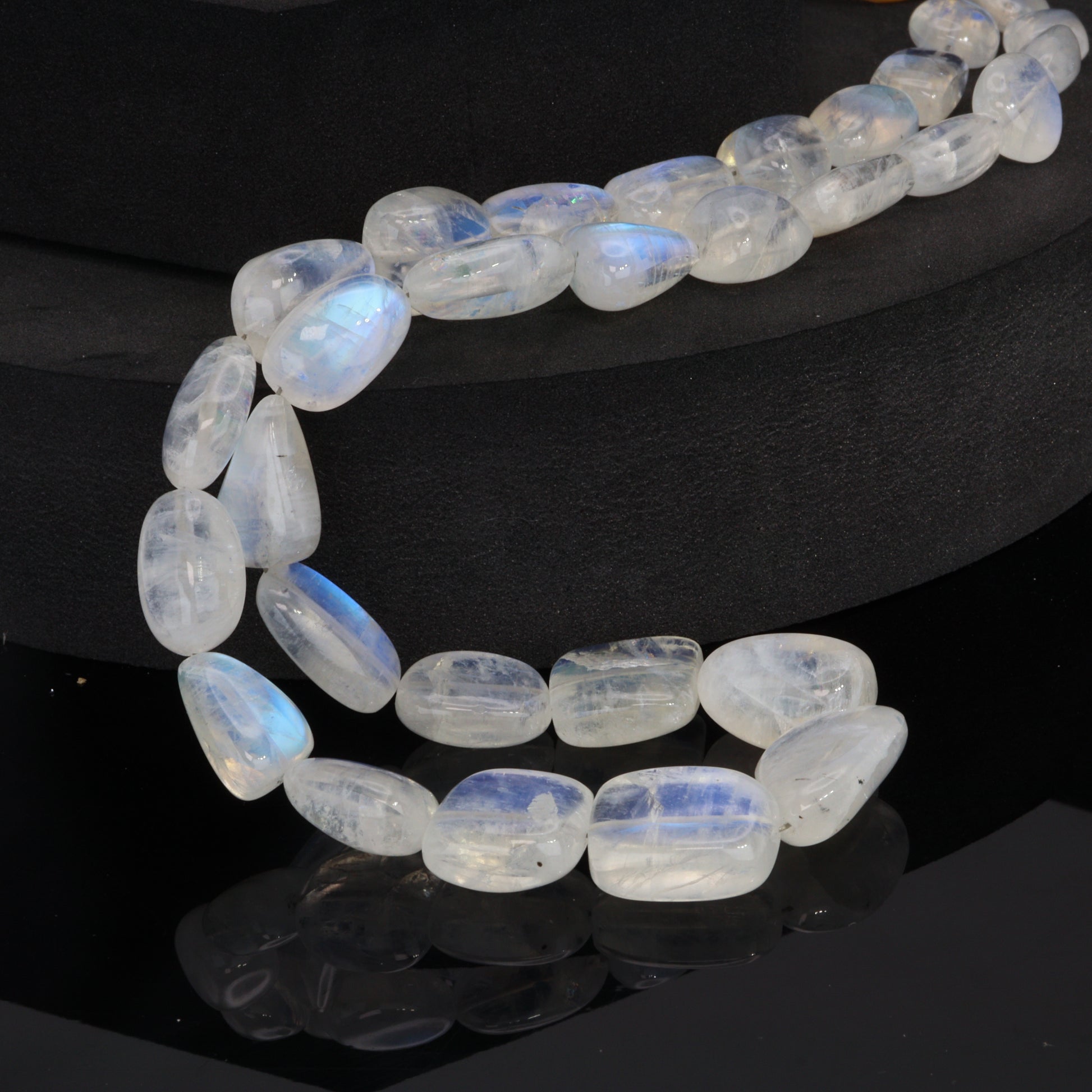 Dive into the mystical allure of our AAA Blue Rainbow Moonstone Bead Strand, featuring a breathtaking range of sizes from 14x10mm to 20x14mm, each bead a window into the ethereal world of moonstone magic. This premium collection captures the essence of the moonstone's revered qualities, with each bead showcasing an enchanting blue sheen that dances across its surface, reminiscent of moonlight reflecting on tranquil waters. The substantial size of these beads makes them perfect centerpieces for statement jewelry pieces, offering an unparalleled blend of elegance and mystique. Crafted for jewelers and designers who demand the highest quality, these AAA-grade moonstones exhibit exceptional clarity and the captivating phenomenon of adularescence, setting your creations apart. The blue rainbow moonstone, known for its connection to intuition and emotional harmony, not only adds a touch of serene beauty to your designs but also imbues them with meaningful depth. Ideal for crafting luxurious necklaces, bracelets, and earrings, this strand is a testament to timeless sophistication, inviting wearers to connect with the moonstone's soothing energy. Elevate your jewelry collection with our AAA Blue Rainbow Moonstone Bead Strand, a symbol of elegance, enchantment, and emotional well-being.