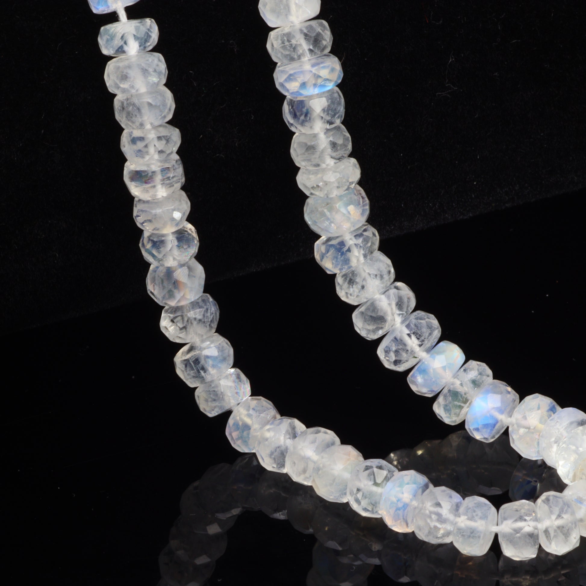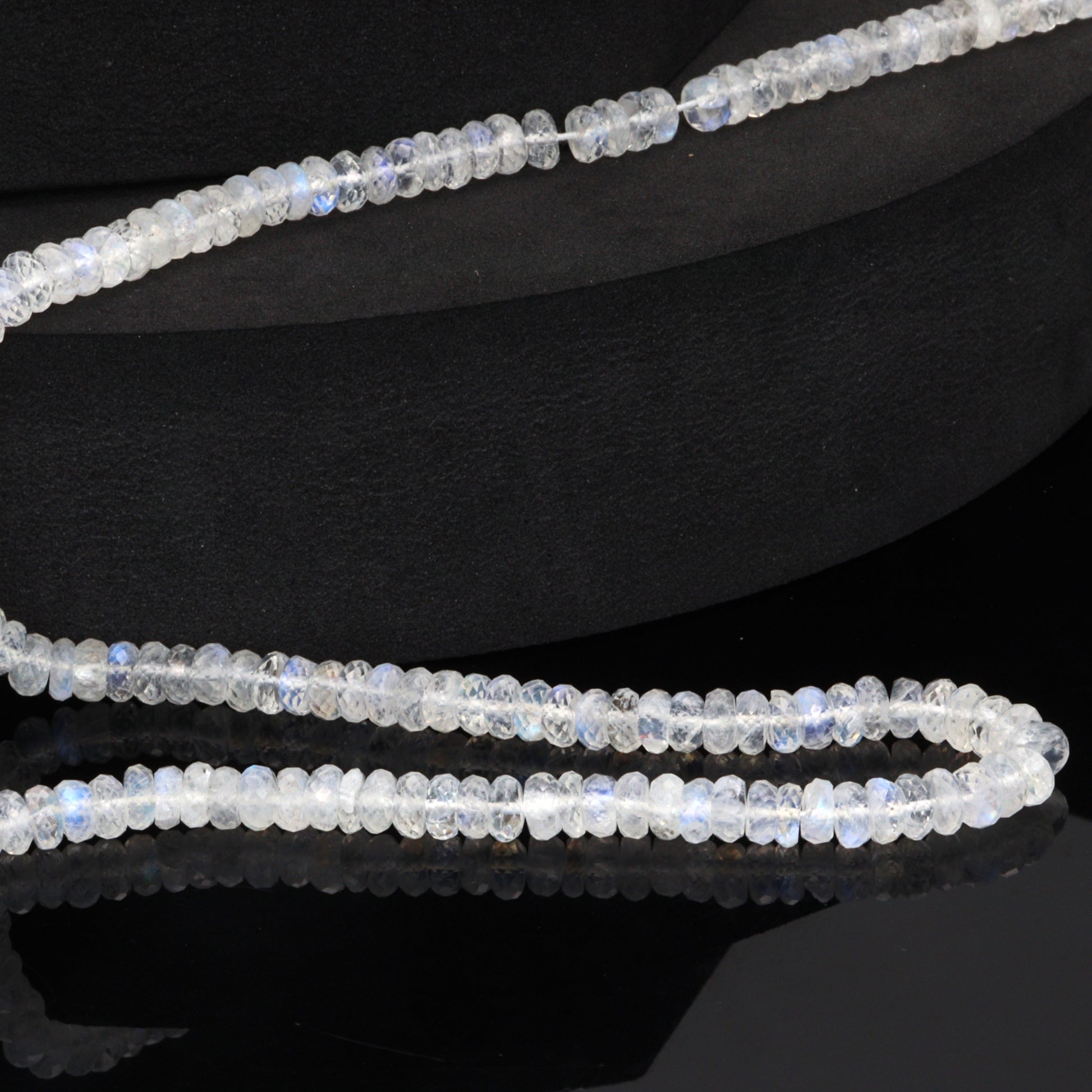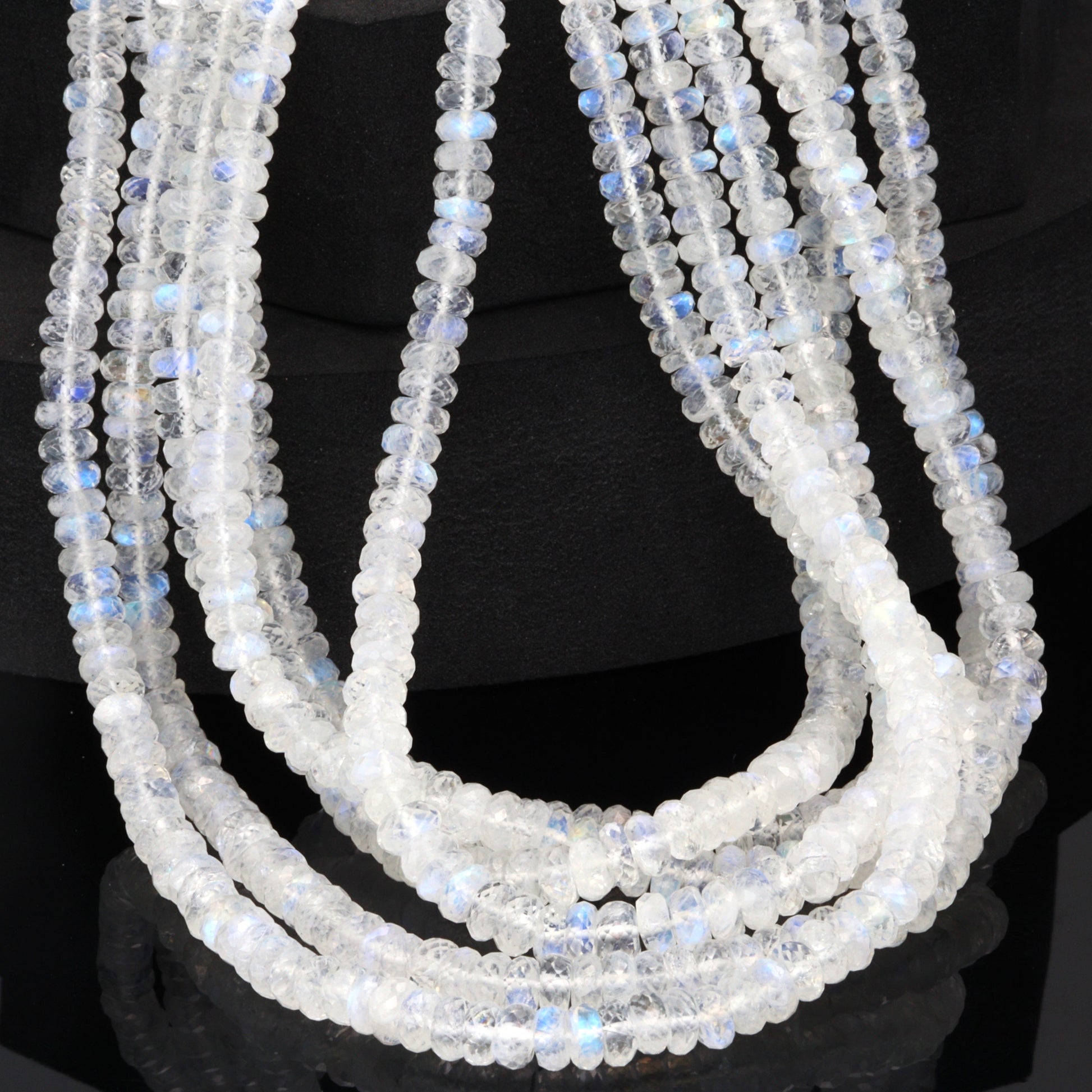 AA Blue Rainbow Moonstone 5mm Faceted Rondelles Bead Strand