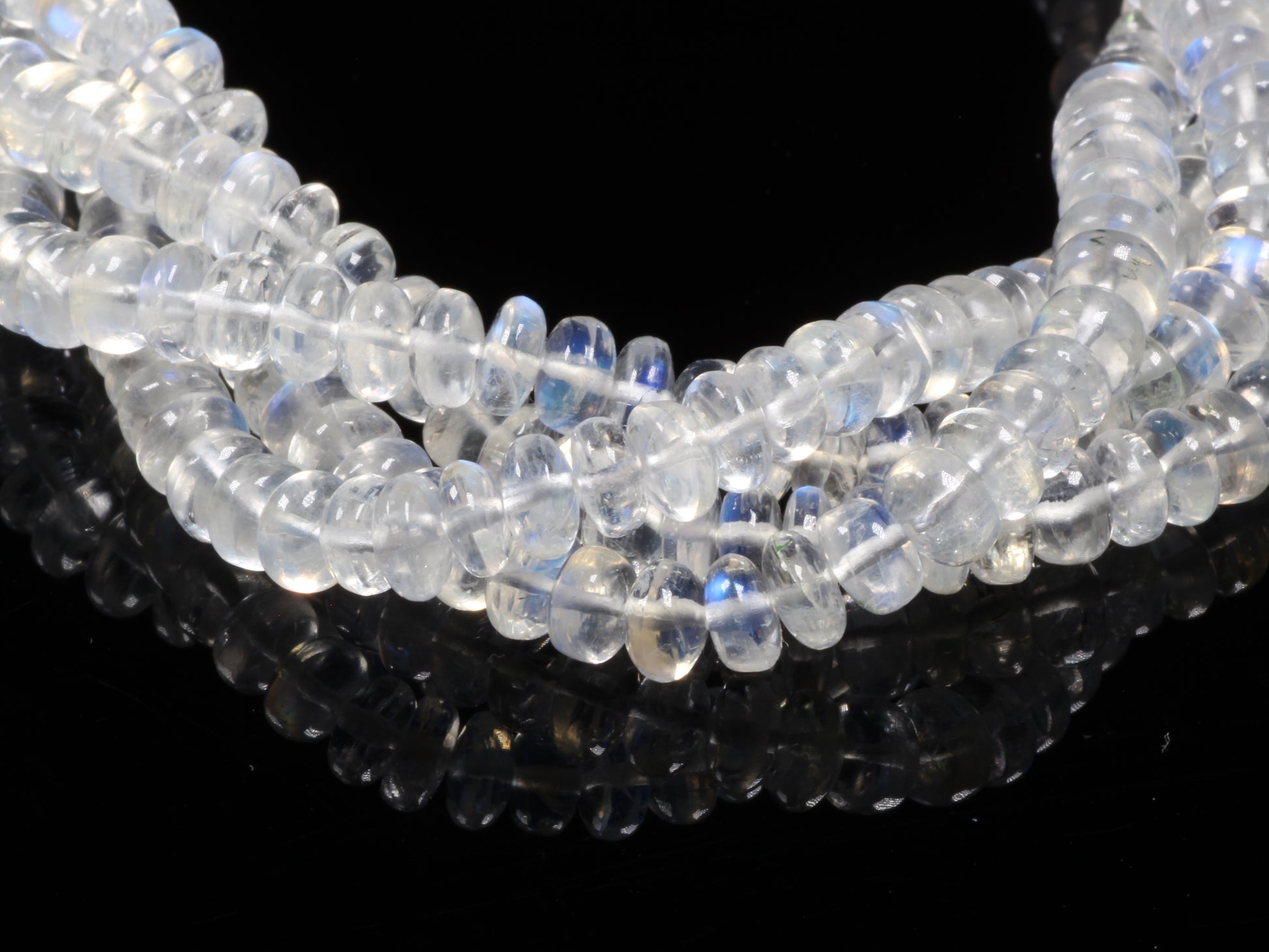 AAA Blue Rainbow Moonstone 5mm Smooth Rondelles Bead Strand