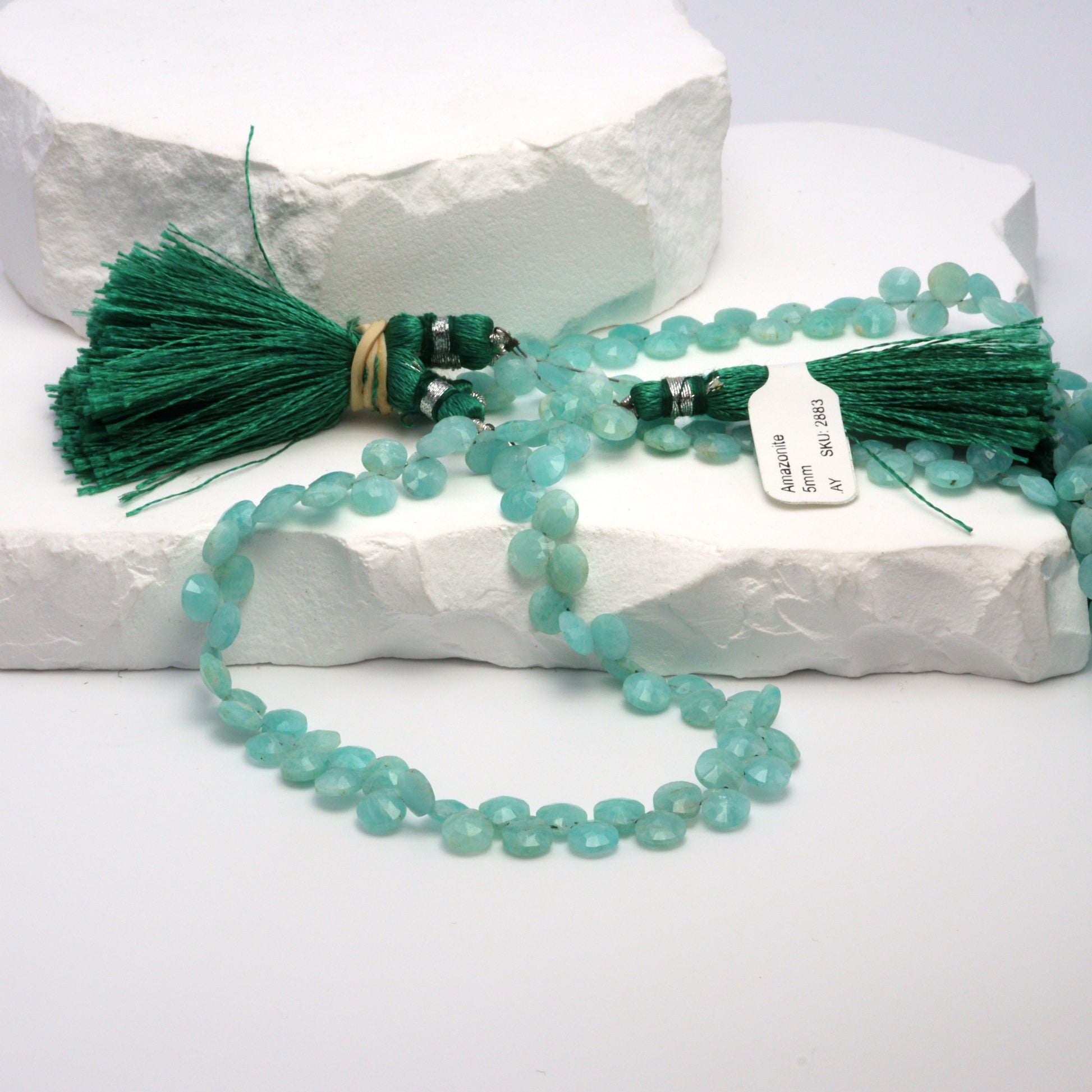 Amazonite 5mm Faceted Heart Shaped Briolettes Bead Strand