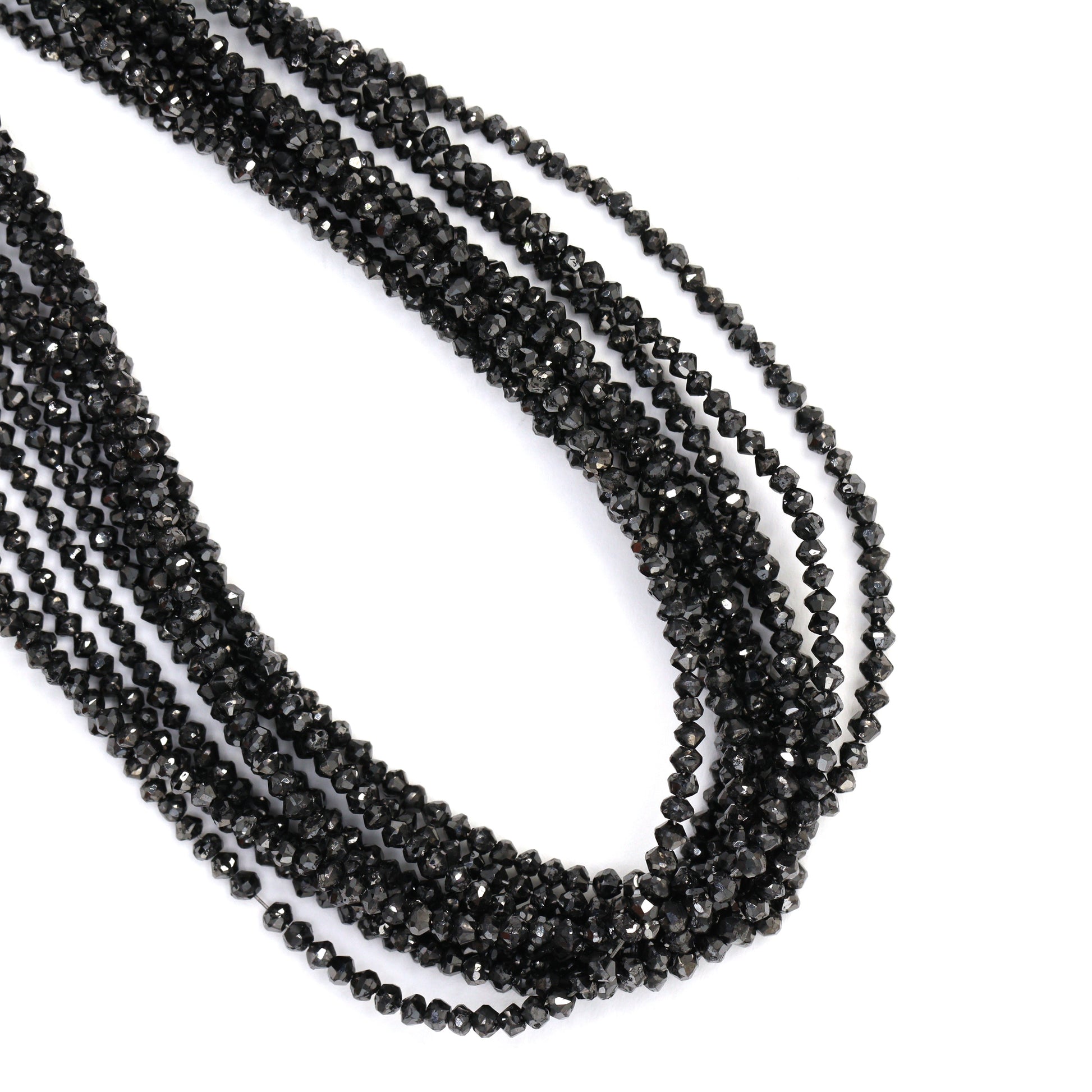 Black Diamond 1.5mm - 2.3mm Hand Faceted Rondelles Bead Strand