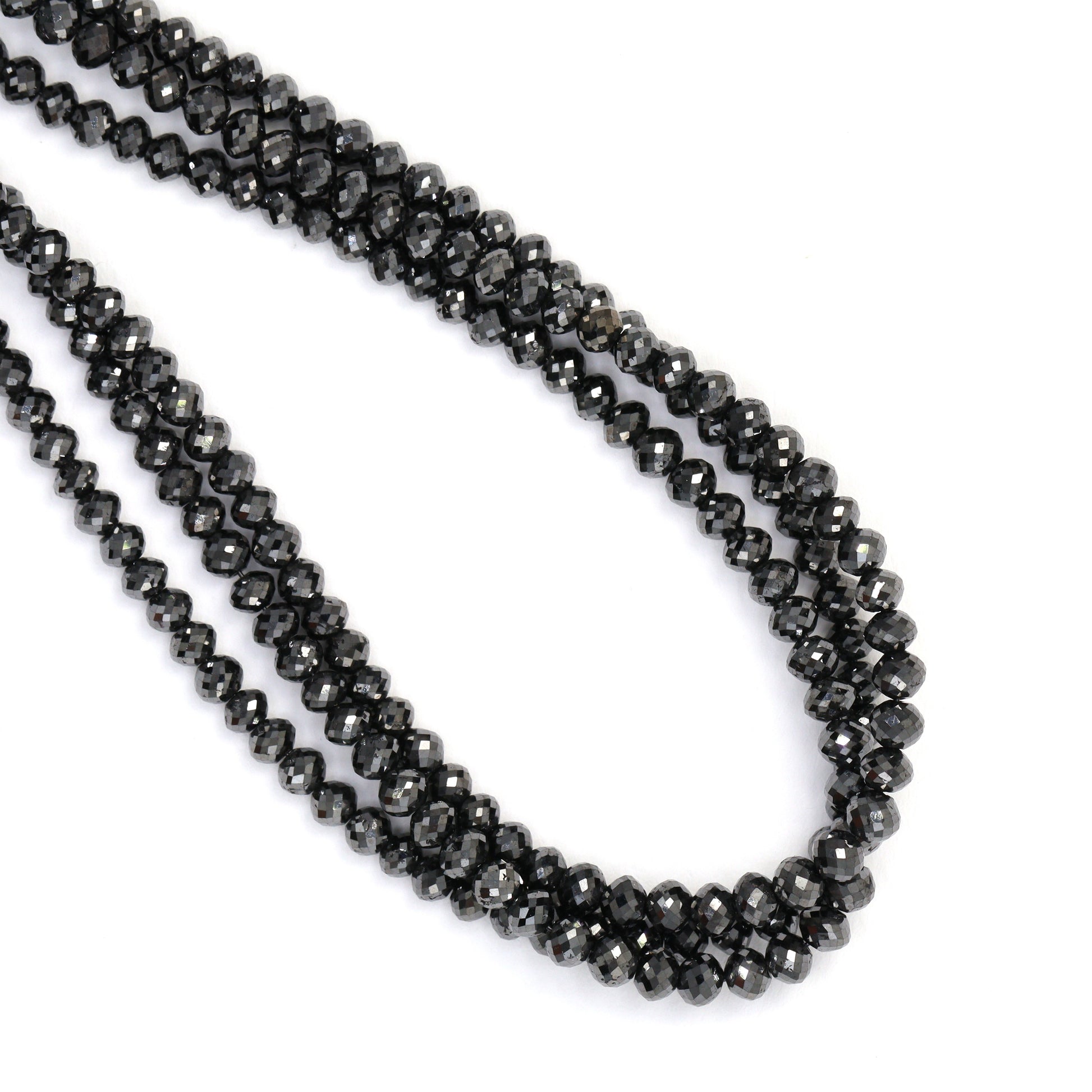 Black Diamond 2.75mm - 3.25mm Hand Faceted Rondelles Bead Strand