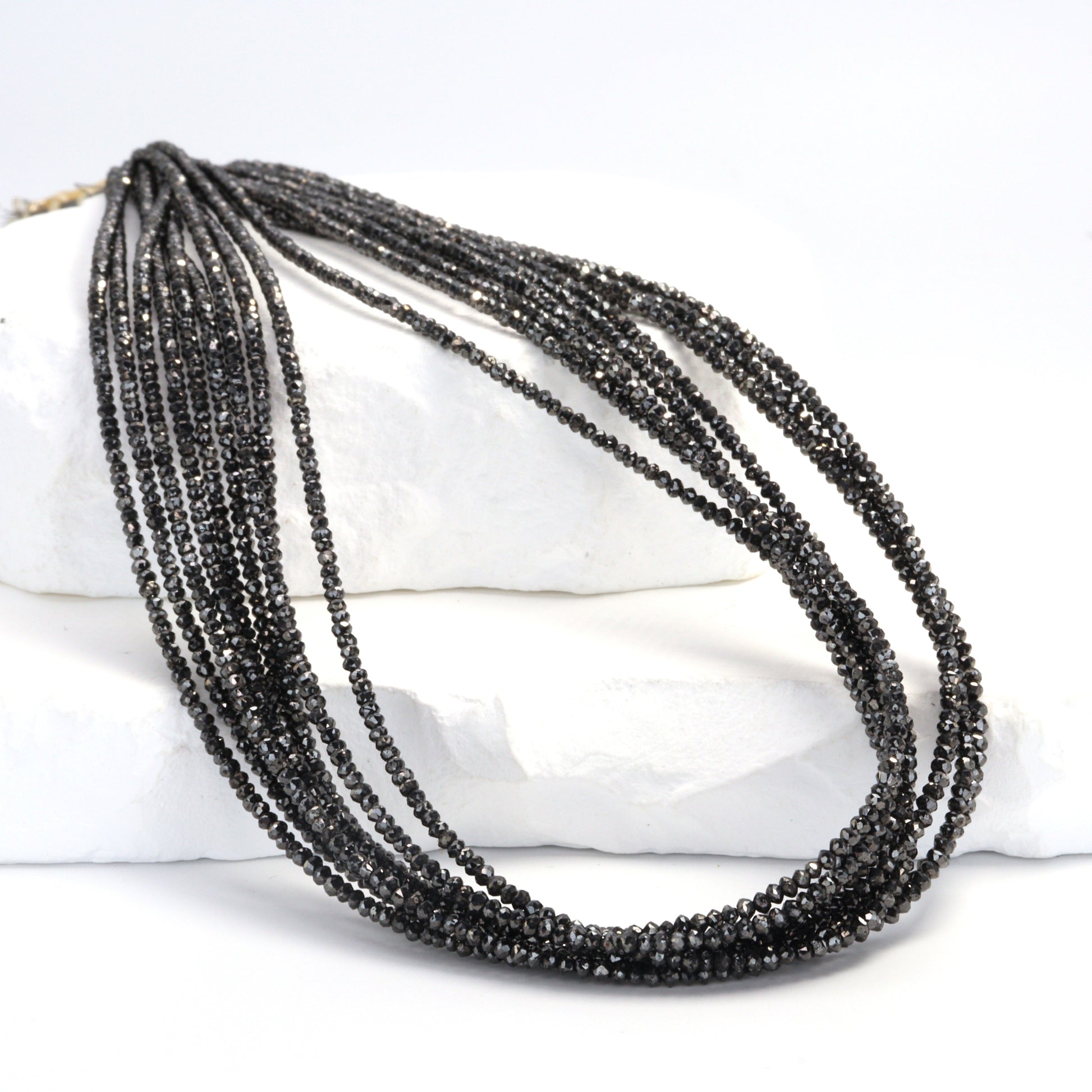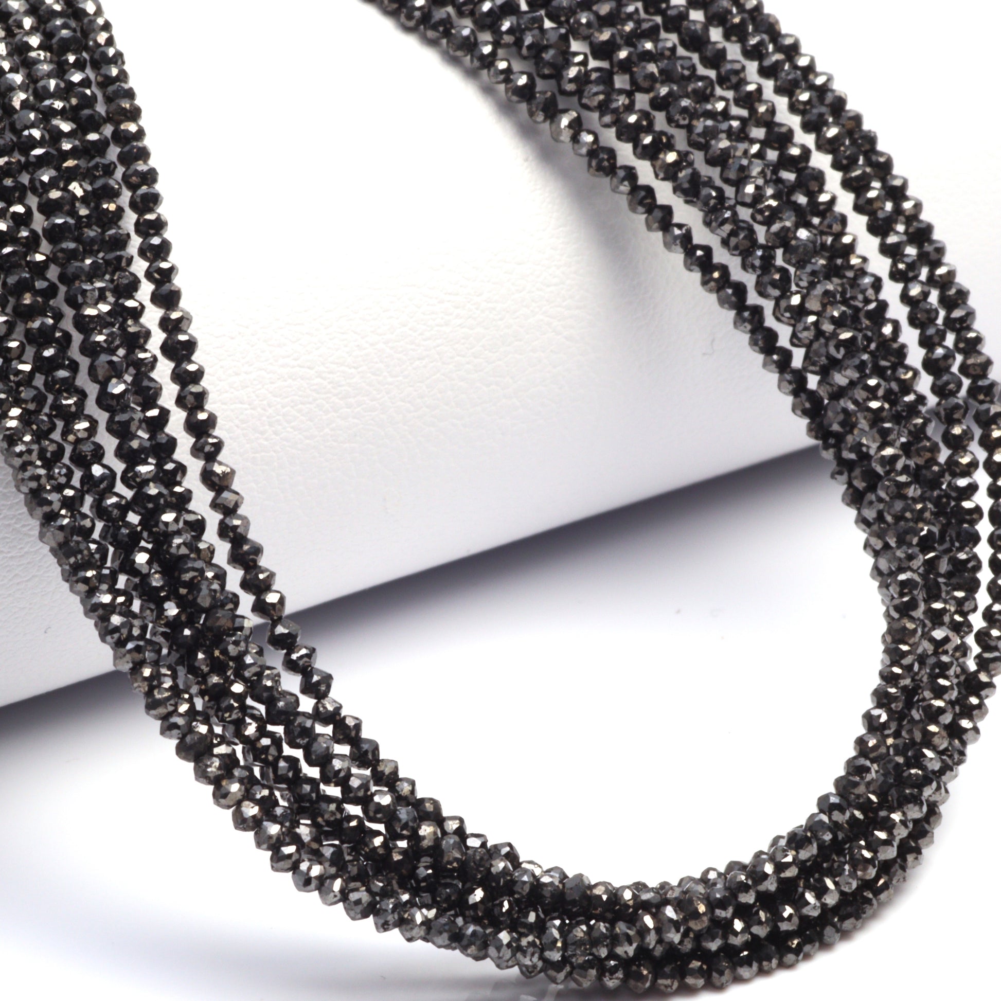 Black Diamond 2mm Hand Faceted Rondelles Bead Strand