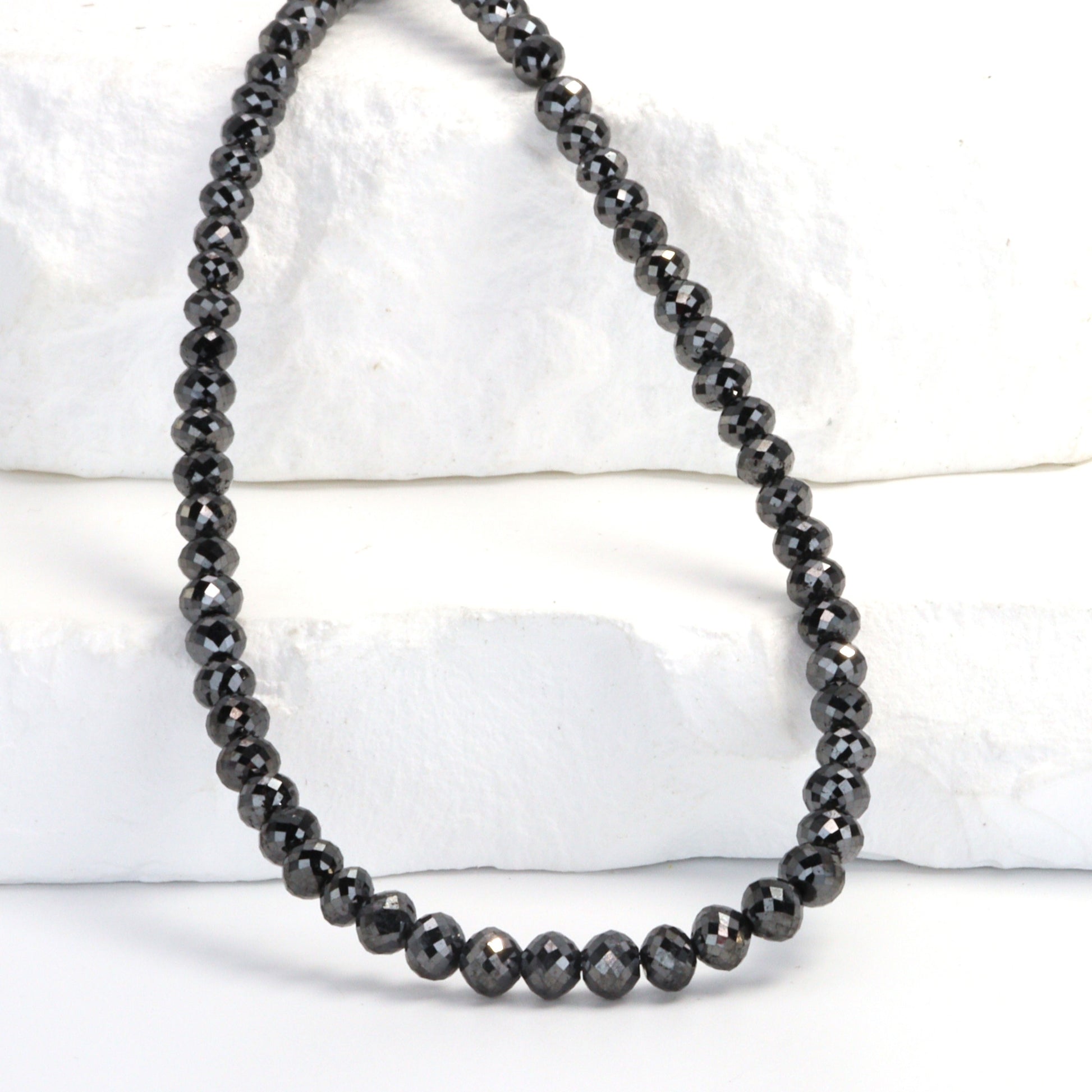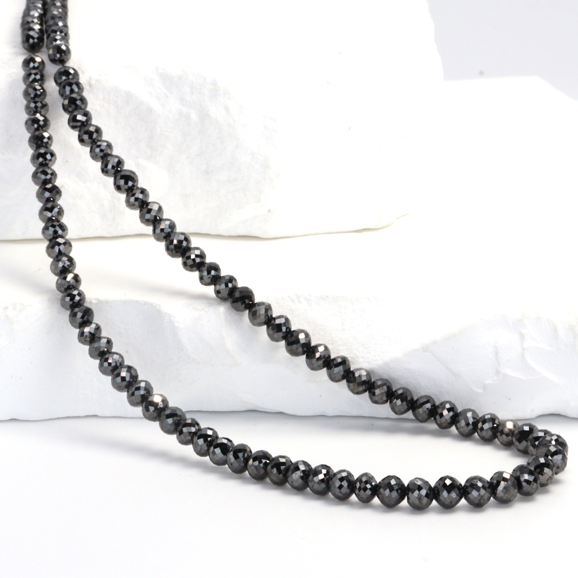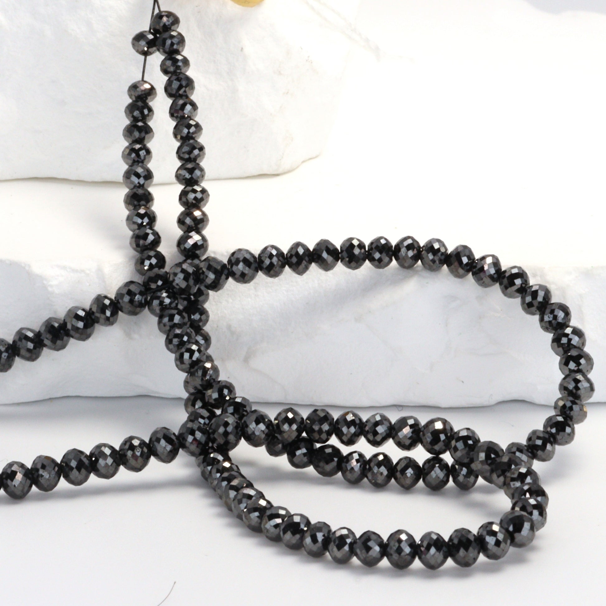 Discover the allure of our 16" Full Bead Strand of Black Diamond Faceted Rondelles. Each bead, meticulously crafted, showcasing the captivating beauty of black diamonds. As a gemstone wholesaler, we ensure that our beads are of the highest quality, perfect for jewelry designers and stores seeking to create or sell unique, eye-catching pieces. These faceted rondelles catch the light beautifully, adding a touch of elegance and sophistication to any jewelry design. Whether you're crafting a stunning necklace or a delicate bracelet, our black diamond beads will add a touch of luxury and mystery to your creations.