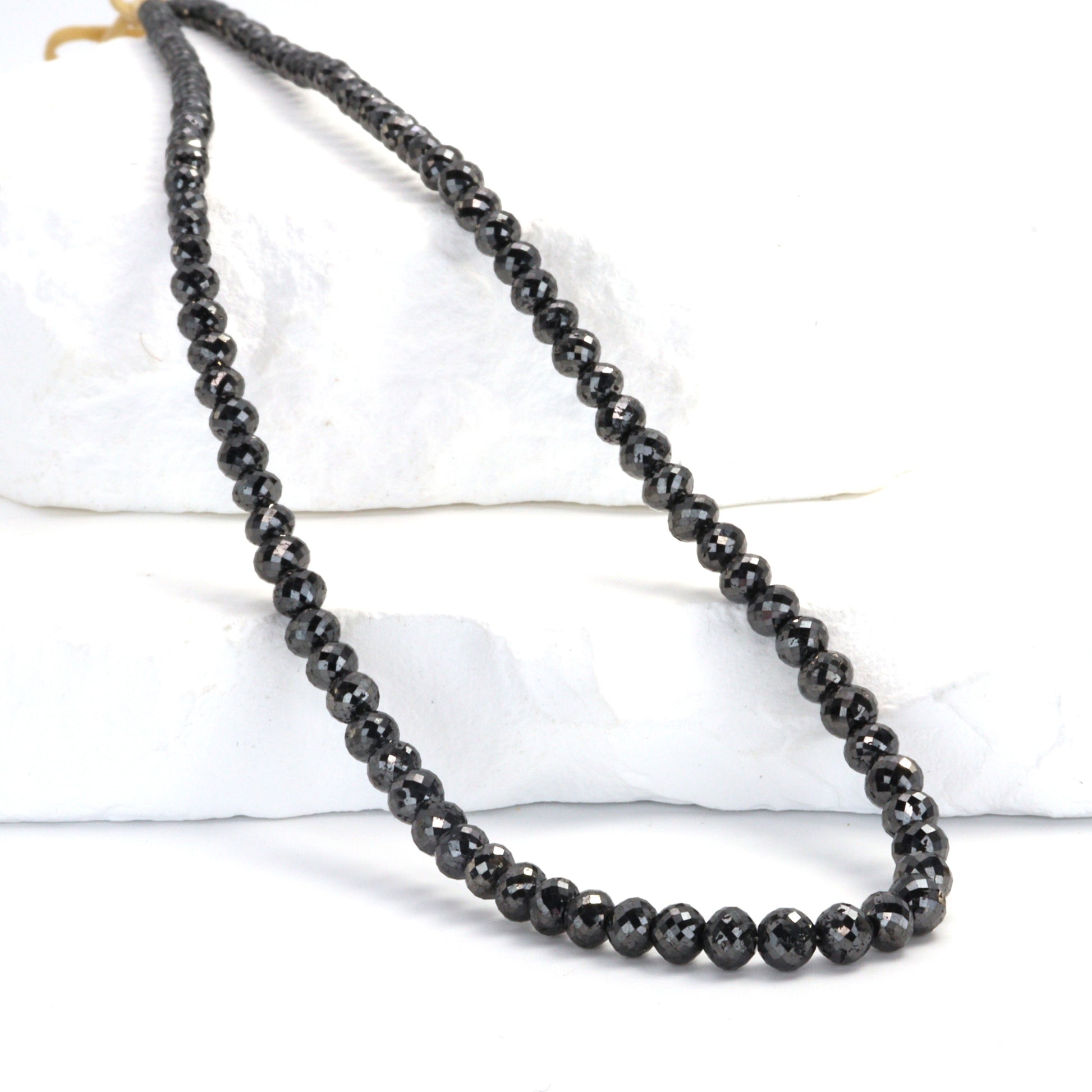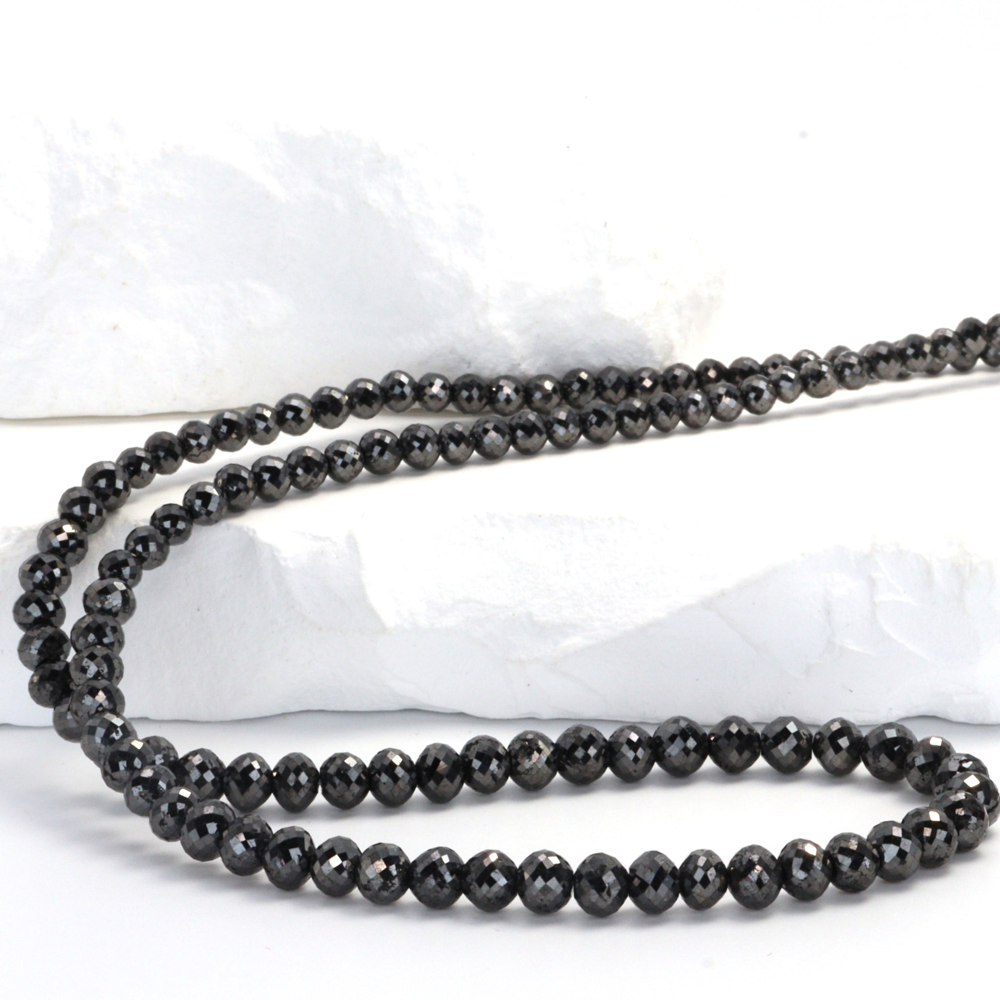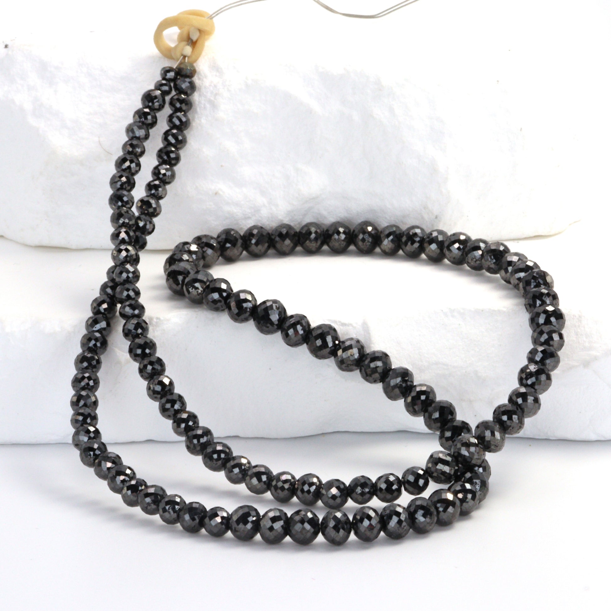 Black Diamond 3.5mm - 4.5mm Hand Faceted Rondelles Bead Strand