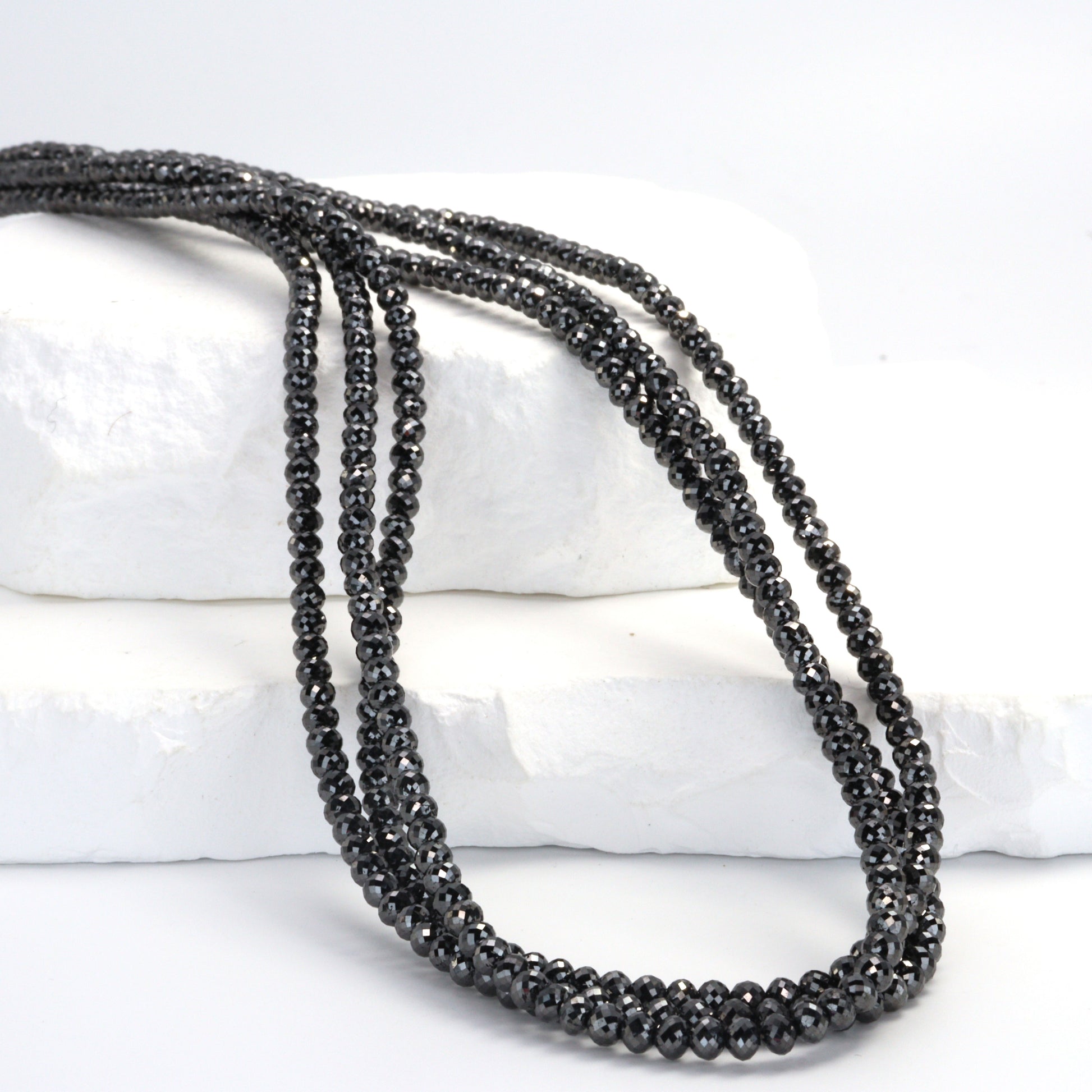 AAA Black Diamond 3mm - 3.5mm Hand Faceted Rondelles Bead Strand