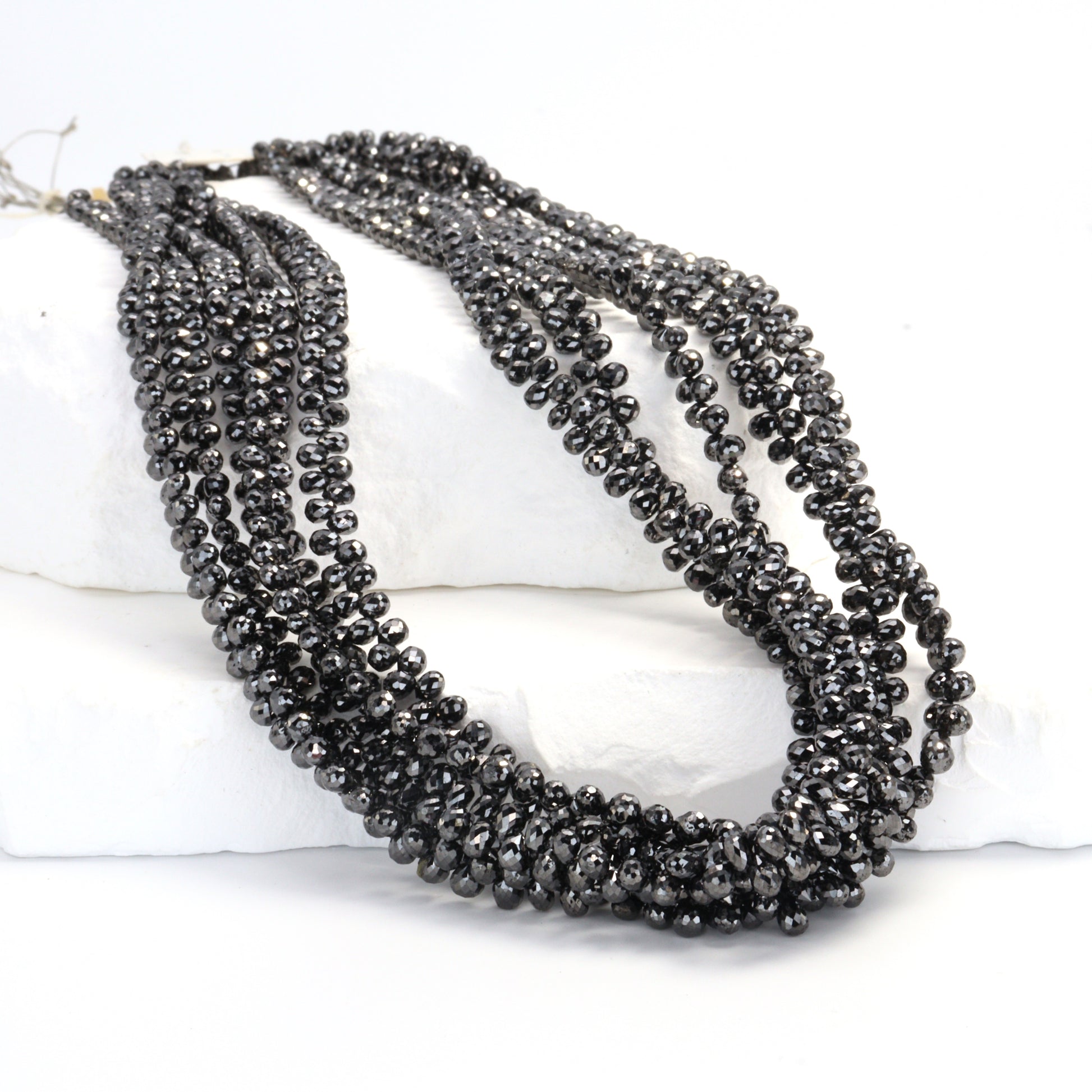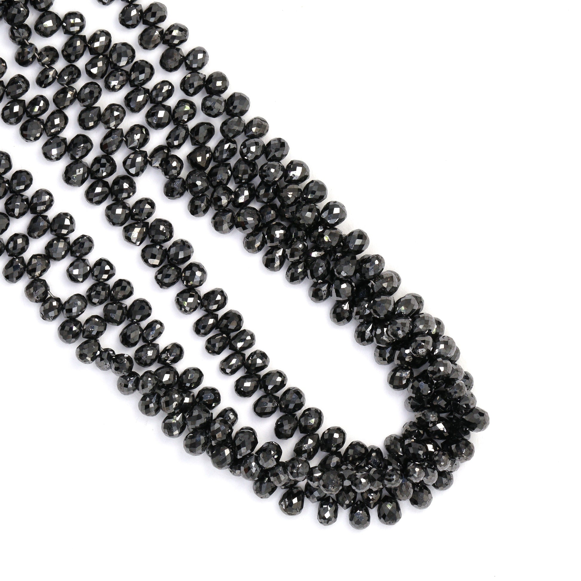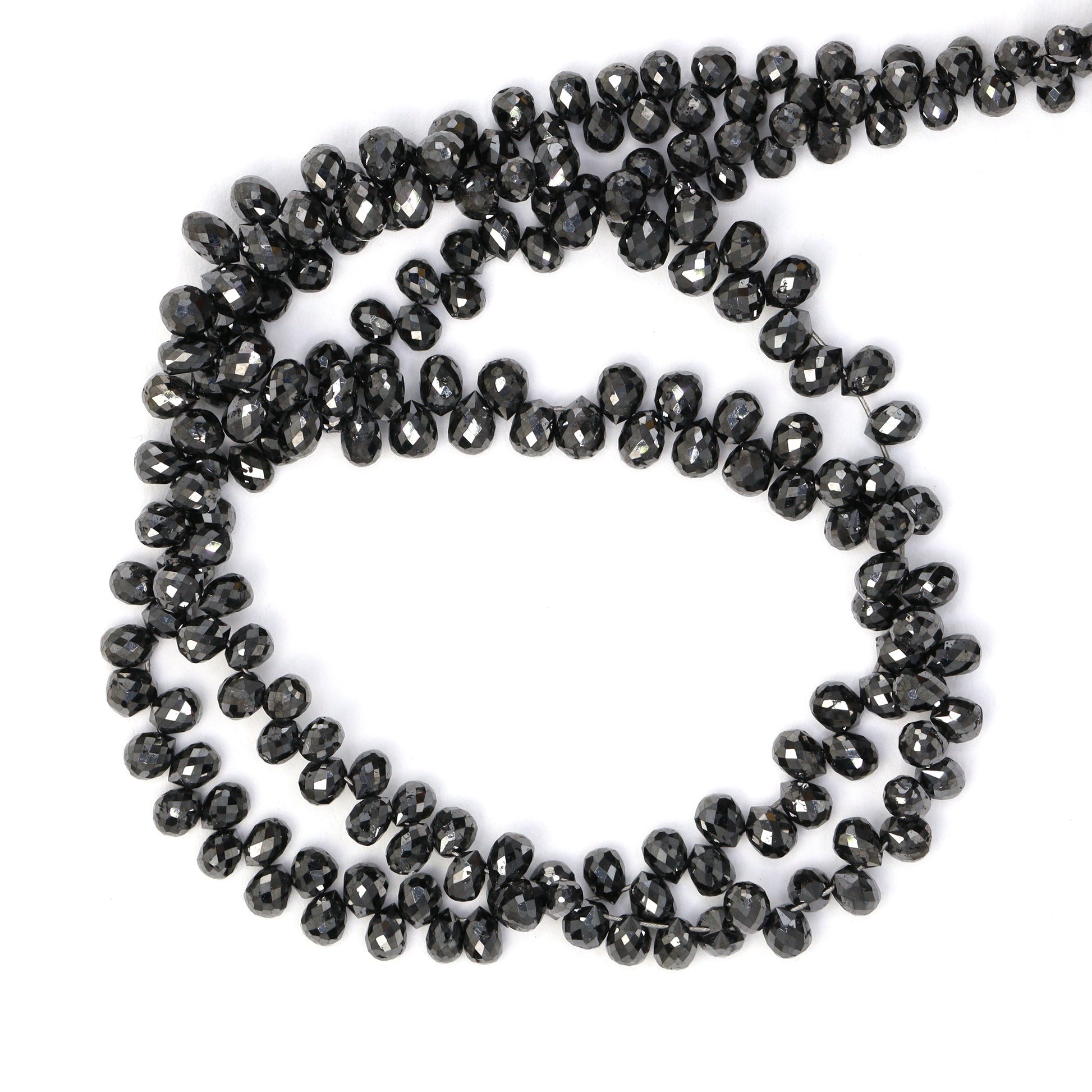Black Diamond 4x2mm – 5x3mm Faceted Teardrop Briolettes Bead Strand