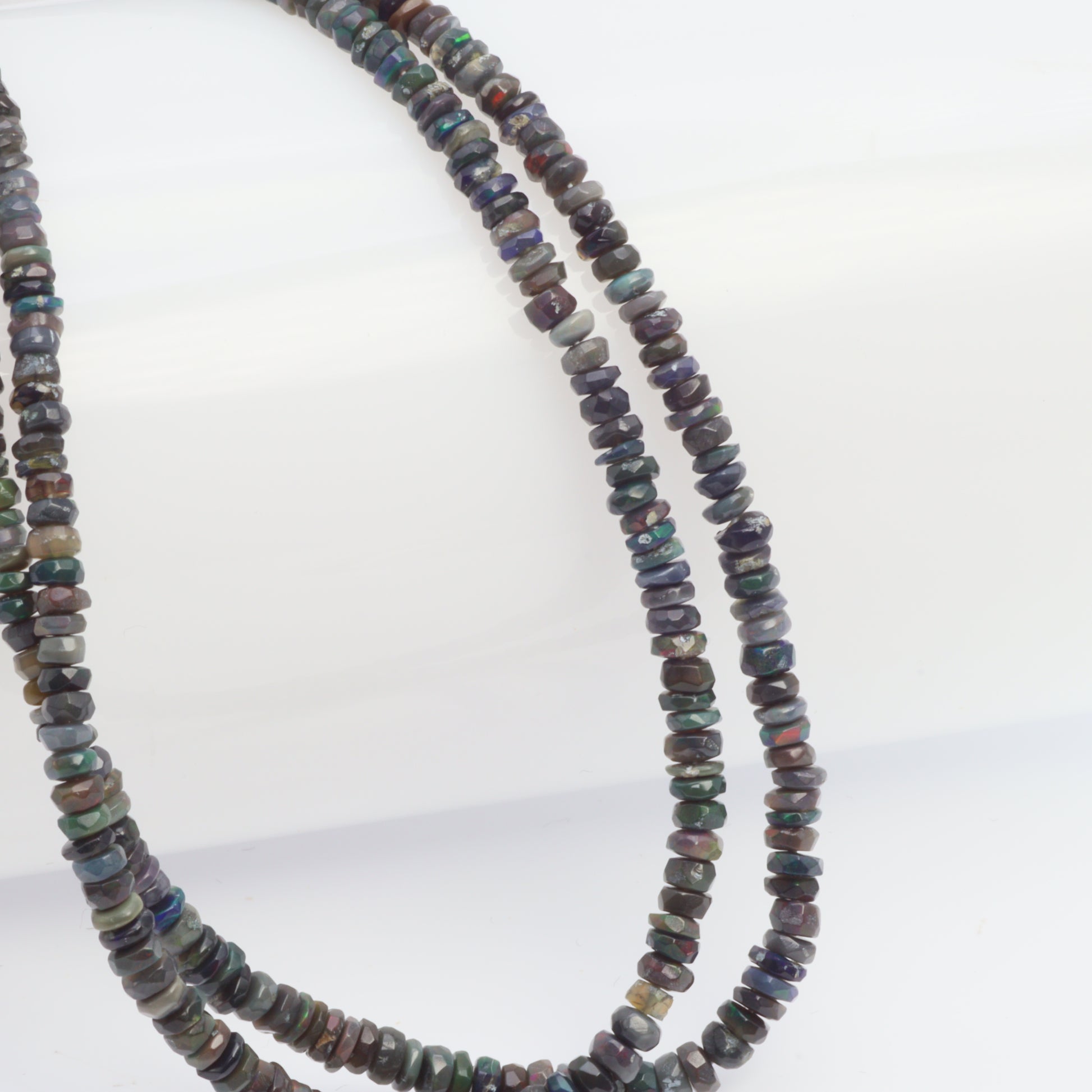 Black Ethiopian Opal 3mm - 4mm Hand Faceted Rondelles Bead Strand