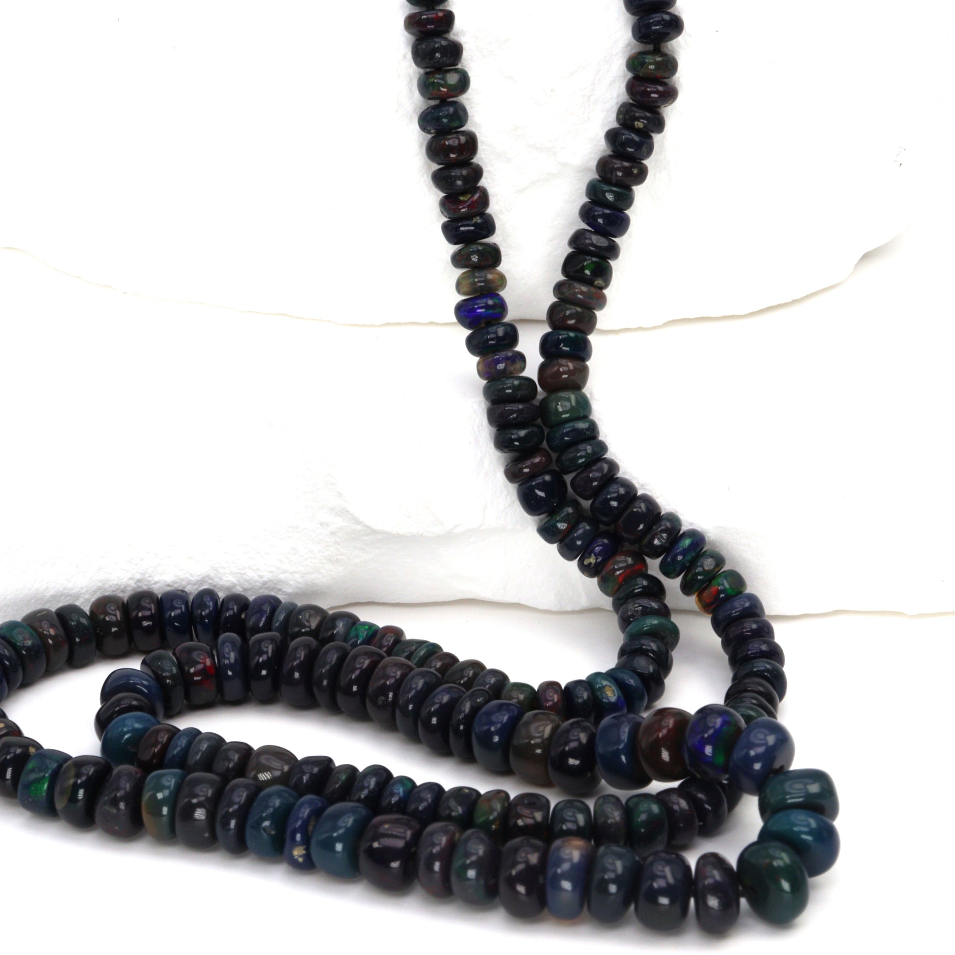 Black Ethiopian Opal 4mm Smooth Rondelles Bead Strand