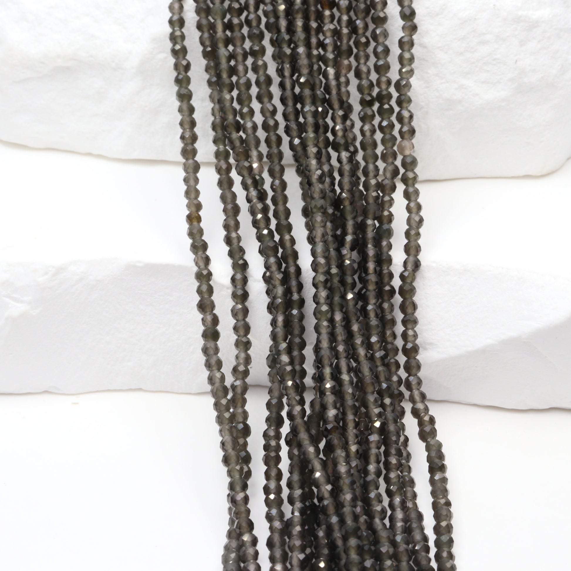 Black Obsidian 2mm Faceted Rounds Bead Strand