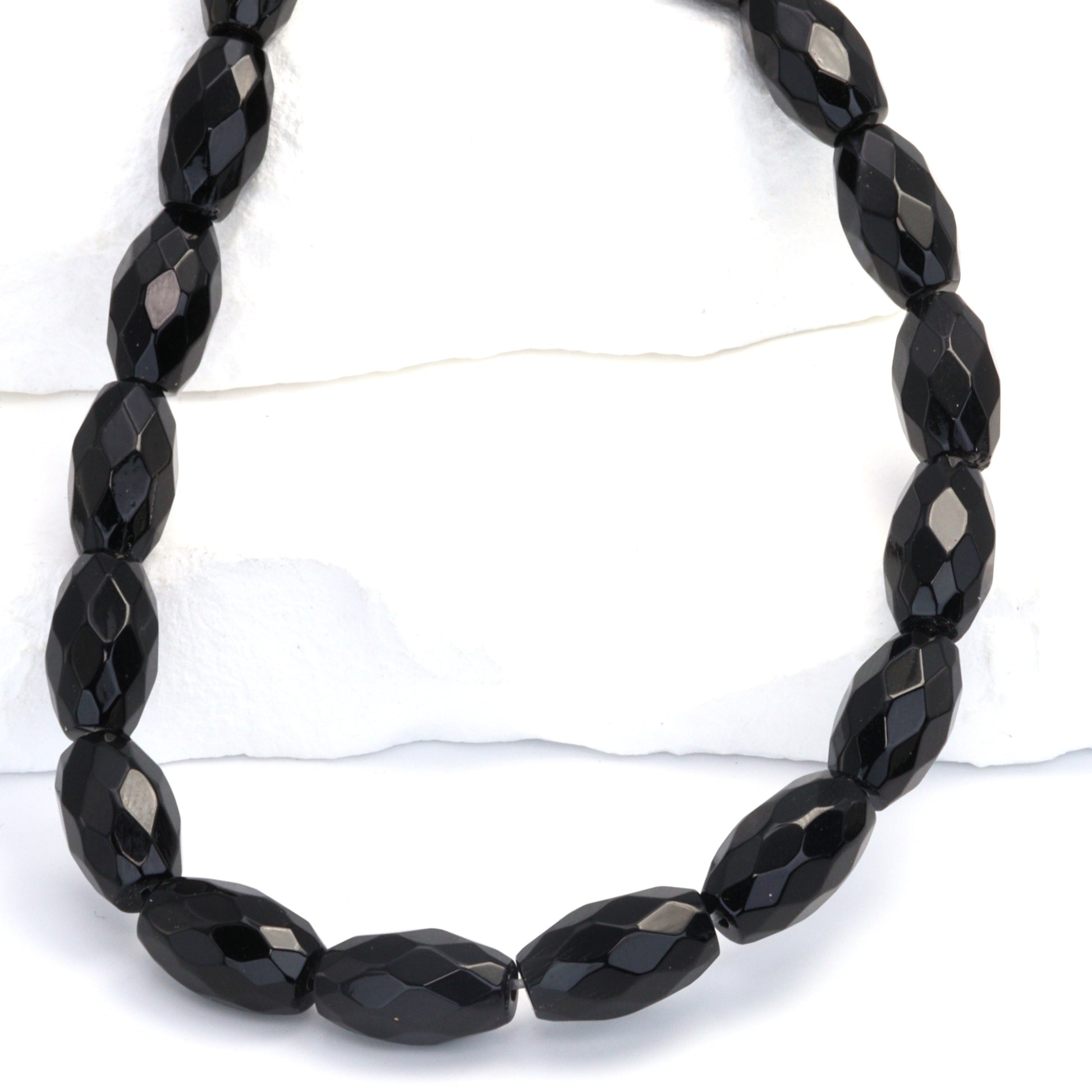 Black Onyx 14x8mm Faceted Ovals Bead Strand