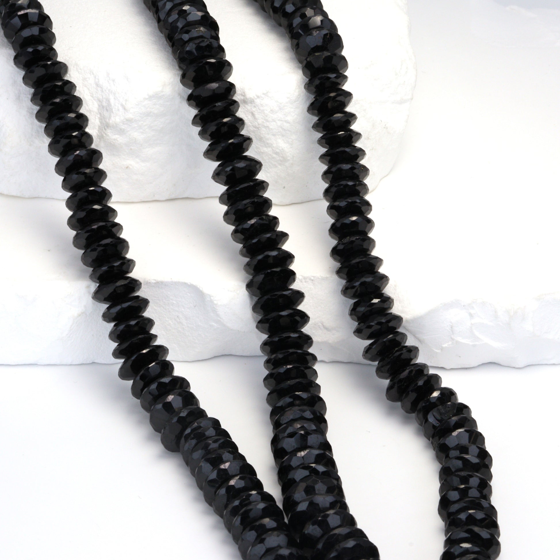 Black Spinel 10mm German Cut Faceted Rondelles Bead Strand