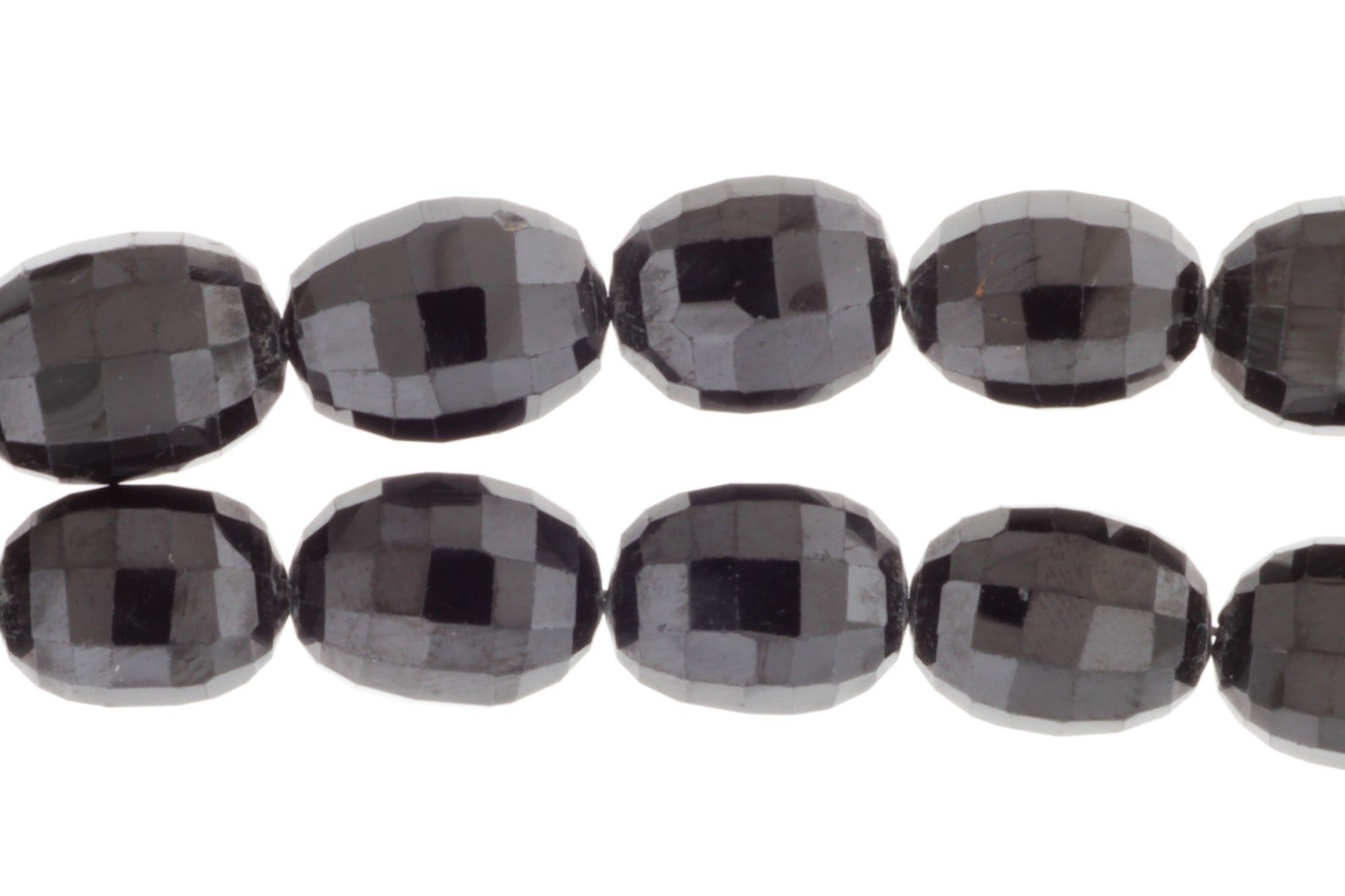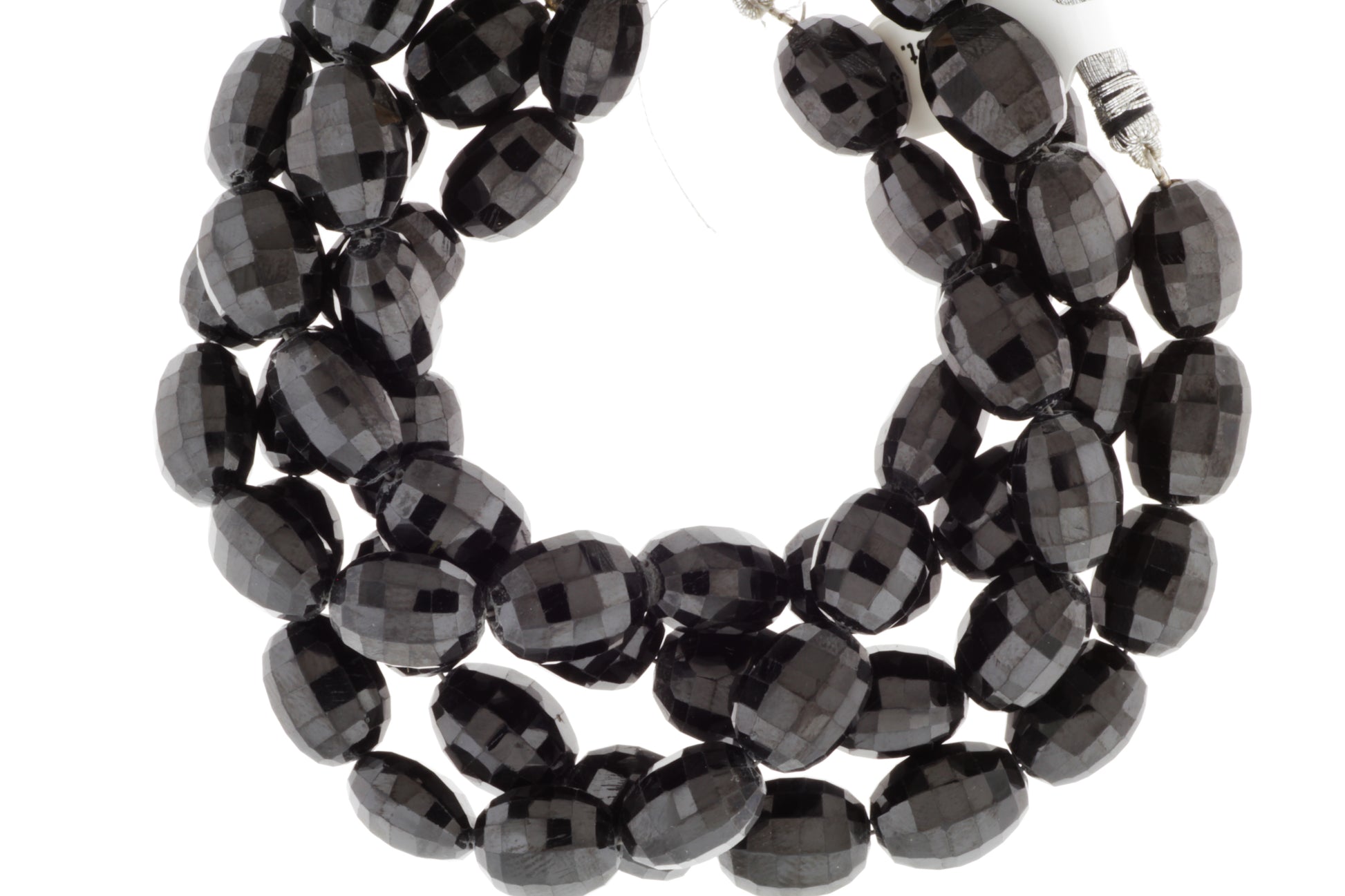 Black Spinel 14x10mm Faceted Drums Bead Strand
