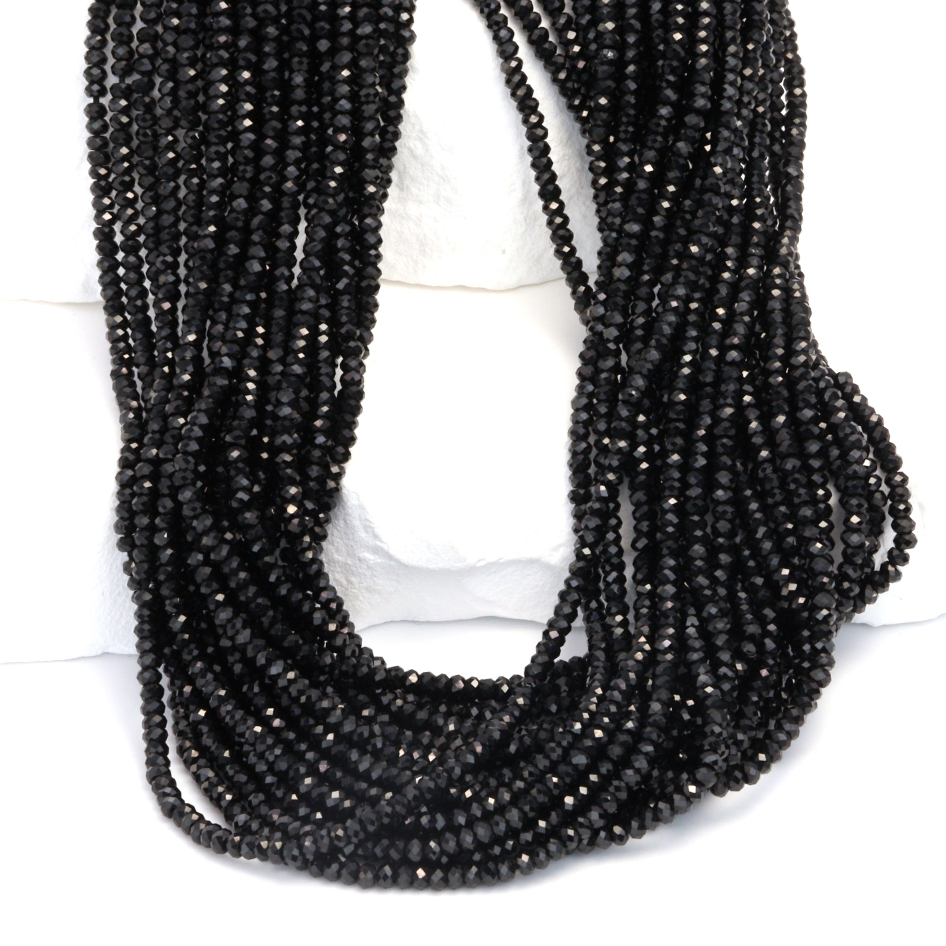 Black Spinel 2mm Faceted Rondelles