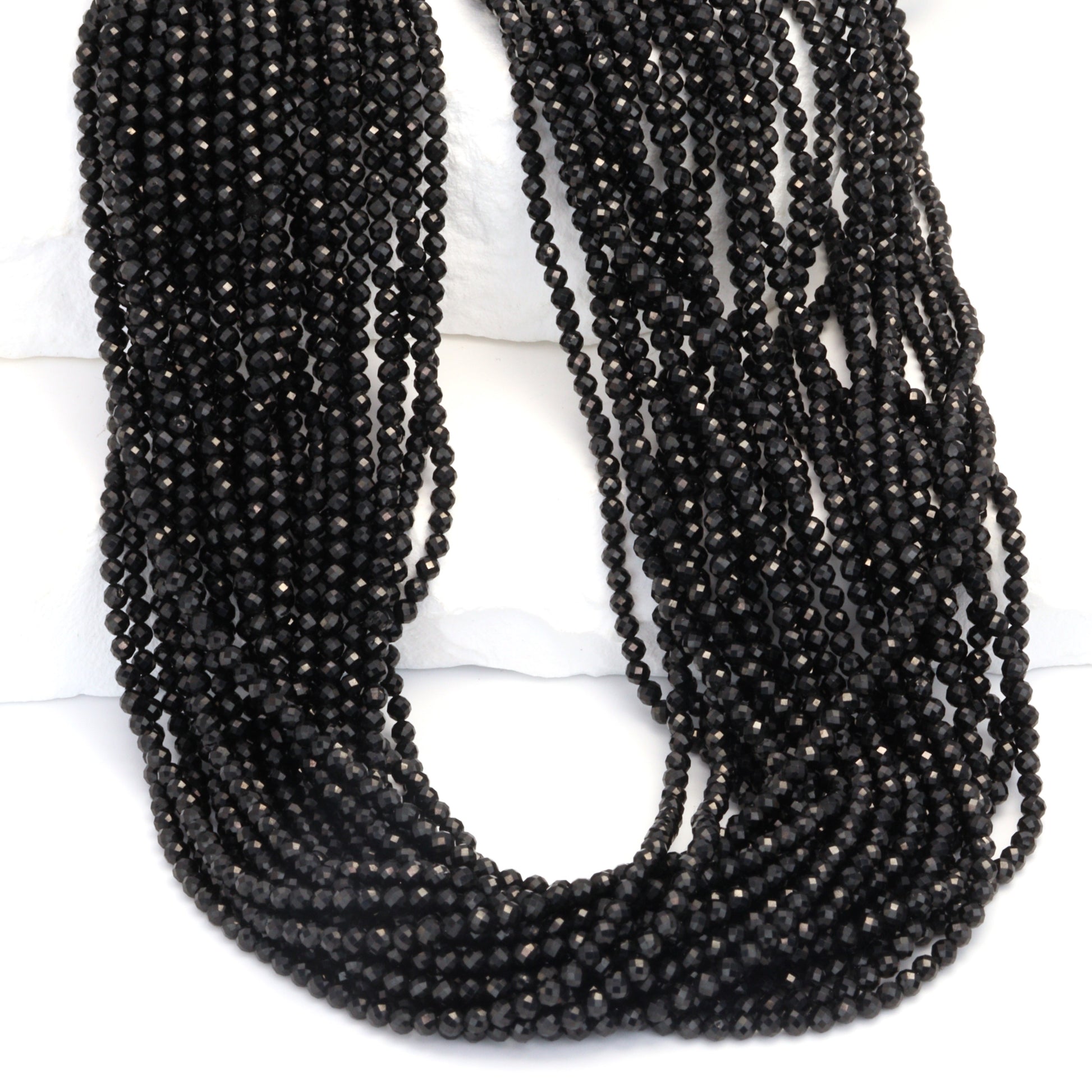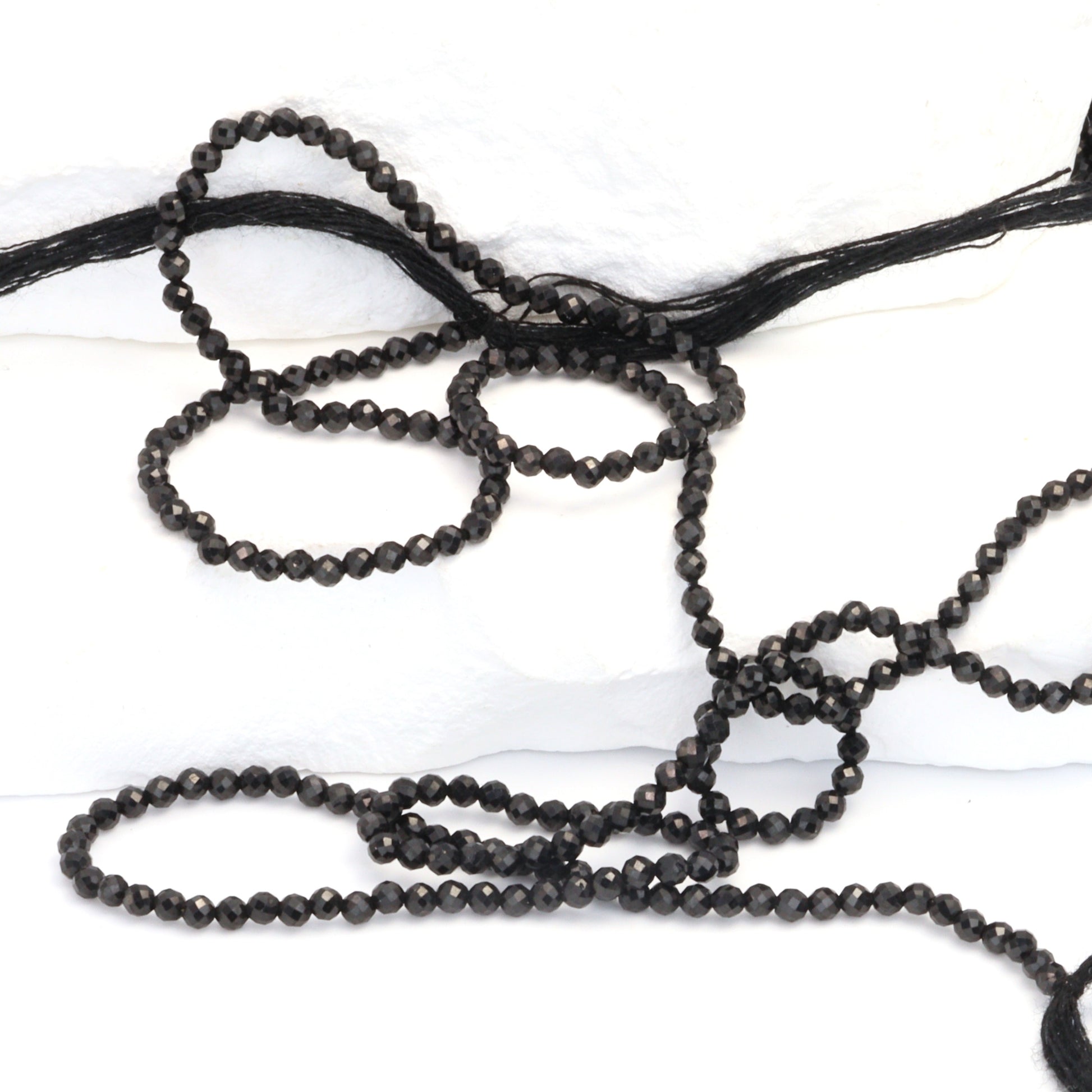 Black Spinel 2mm Faceted Rounds Bead Strand