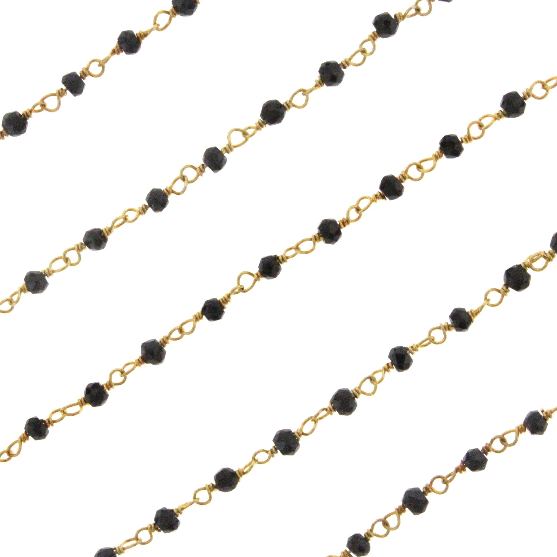 Black Spinel 3mm Faceted Rondelles Rosary Chain Sterling Silver with Gold Plating Wire Wrap Chain by the Foot