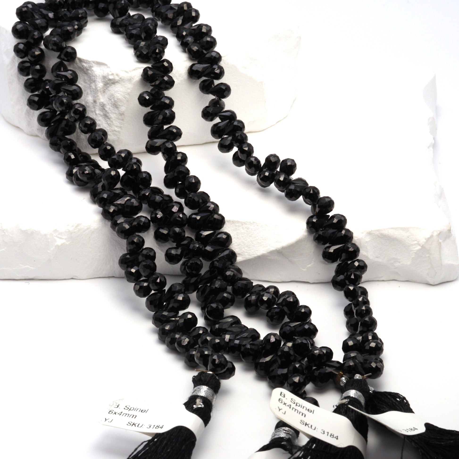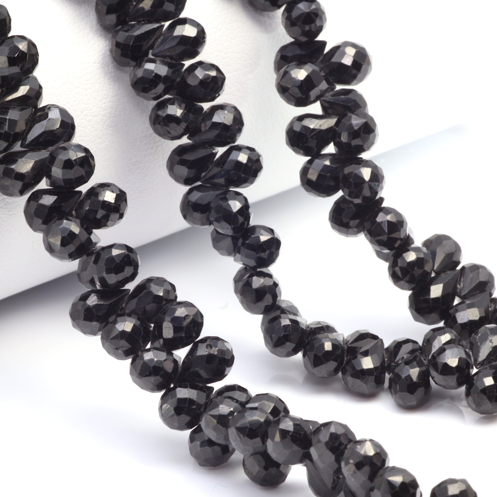 Black Spinel 6x4mm Faceted Teardrop Briolettes Bead Strand