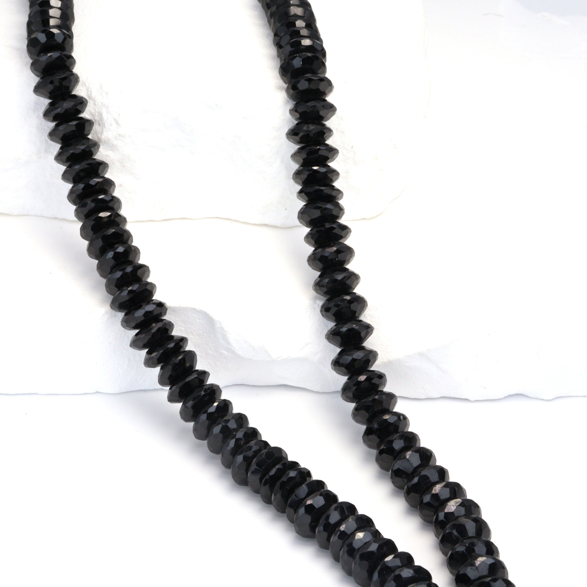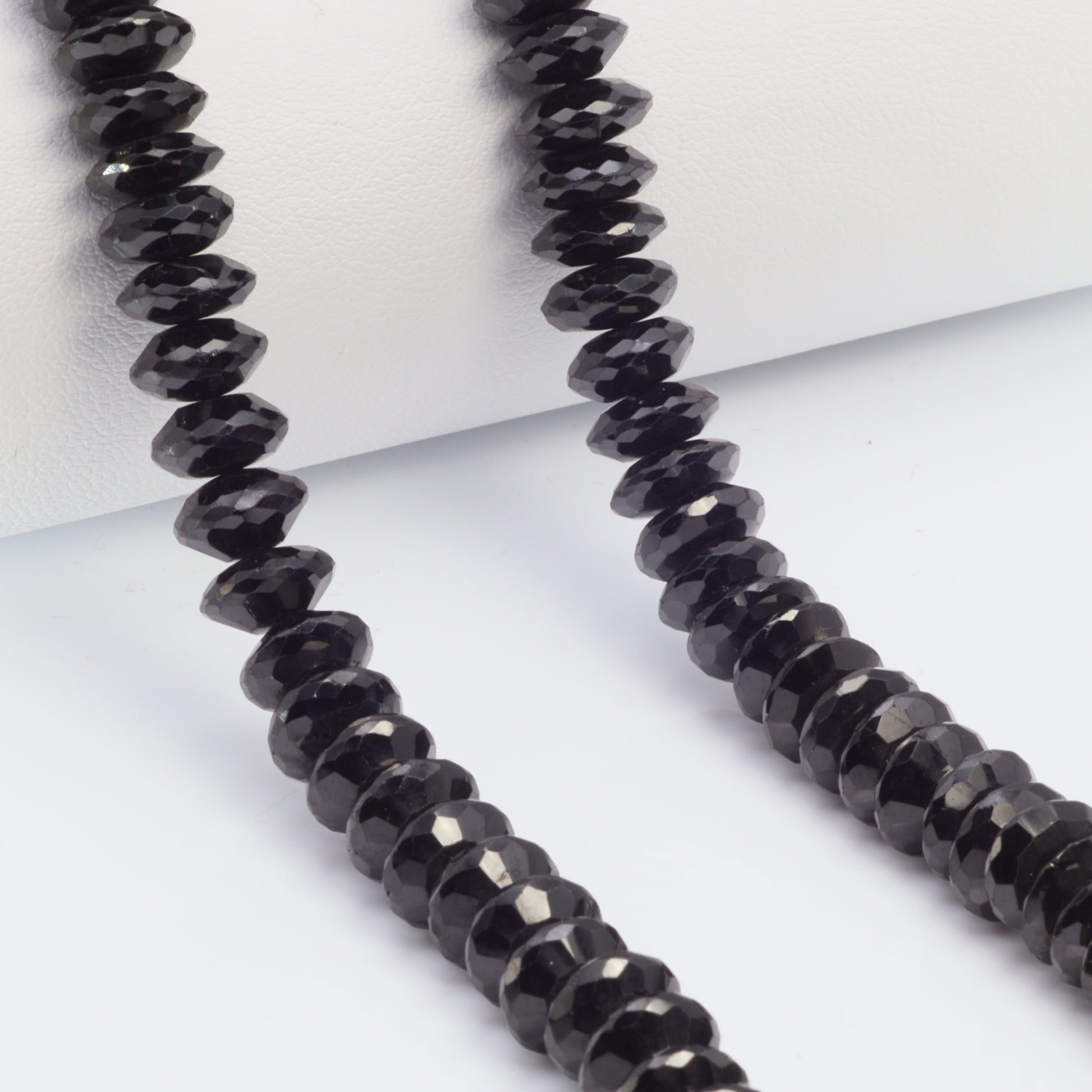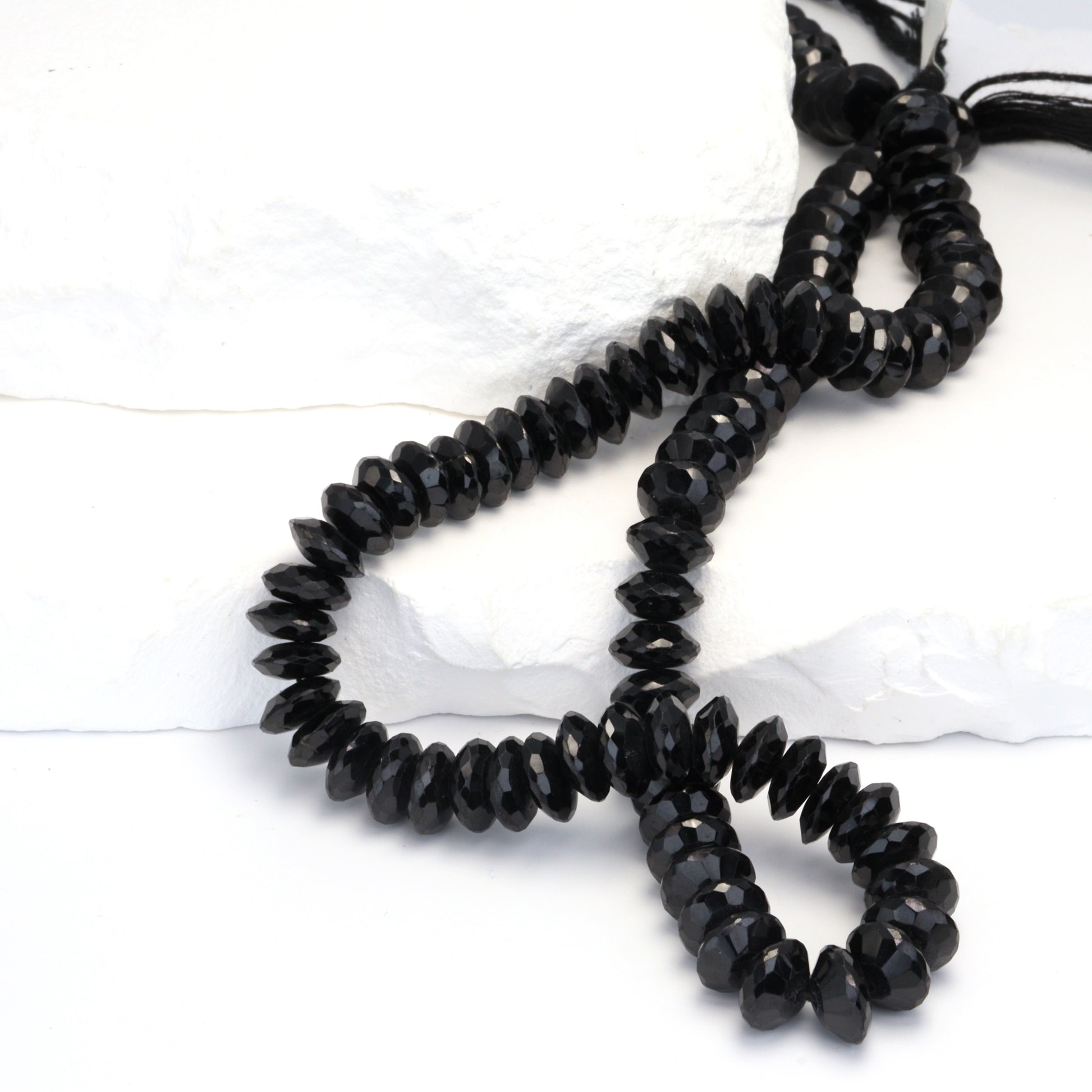Black Spinel 9mm German Cut Faceted Rondelles Bead Strand