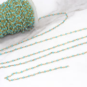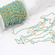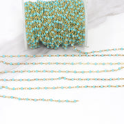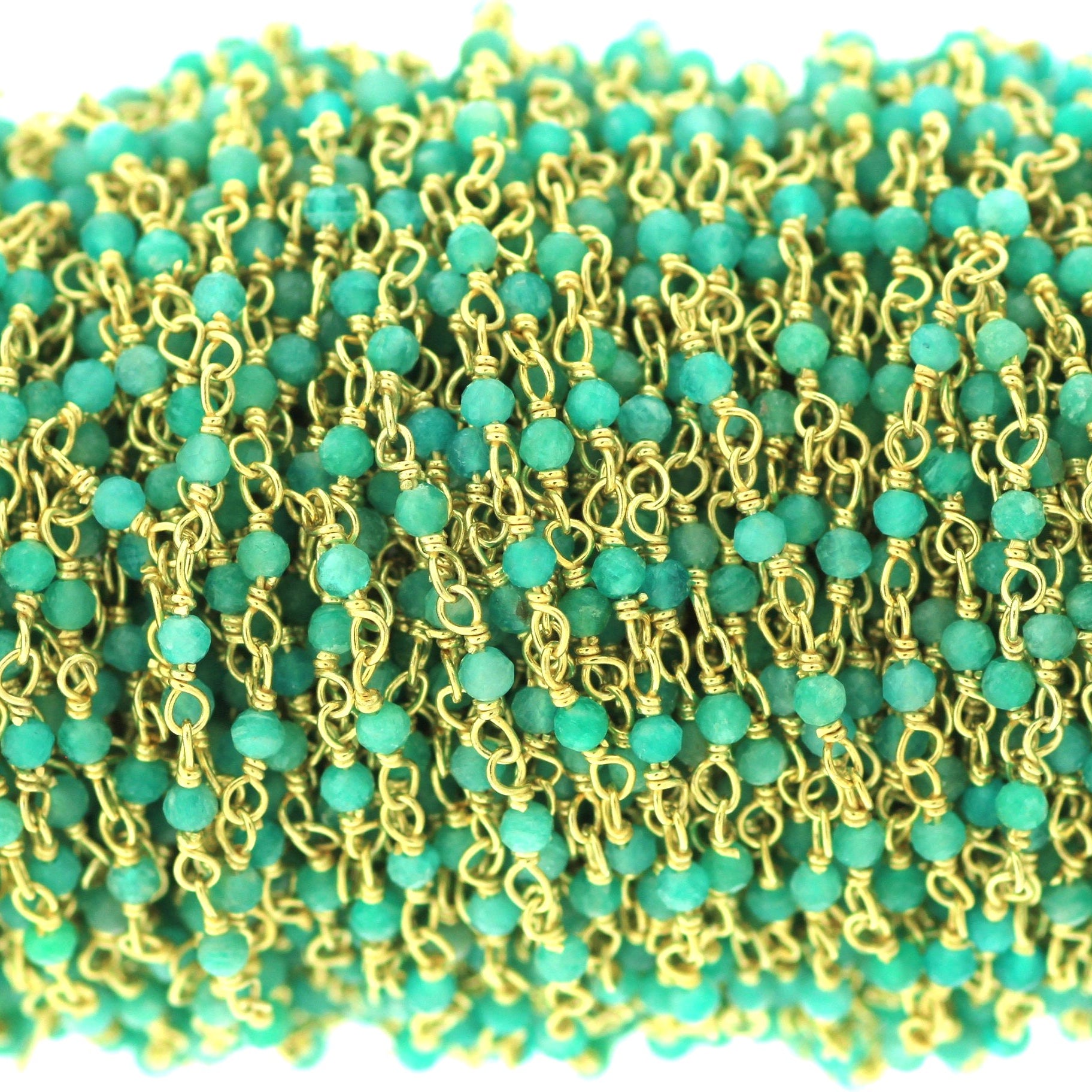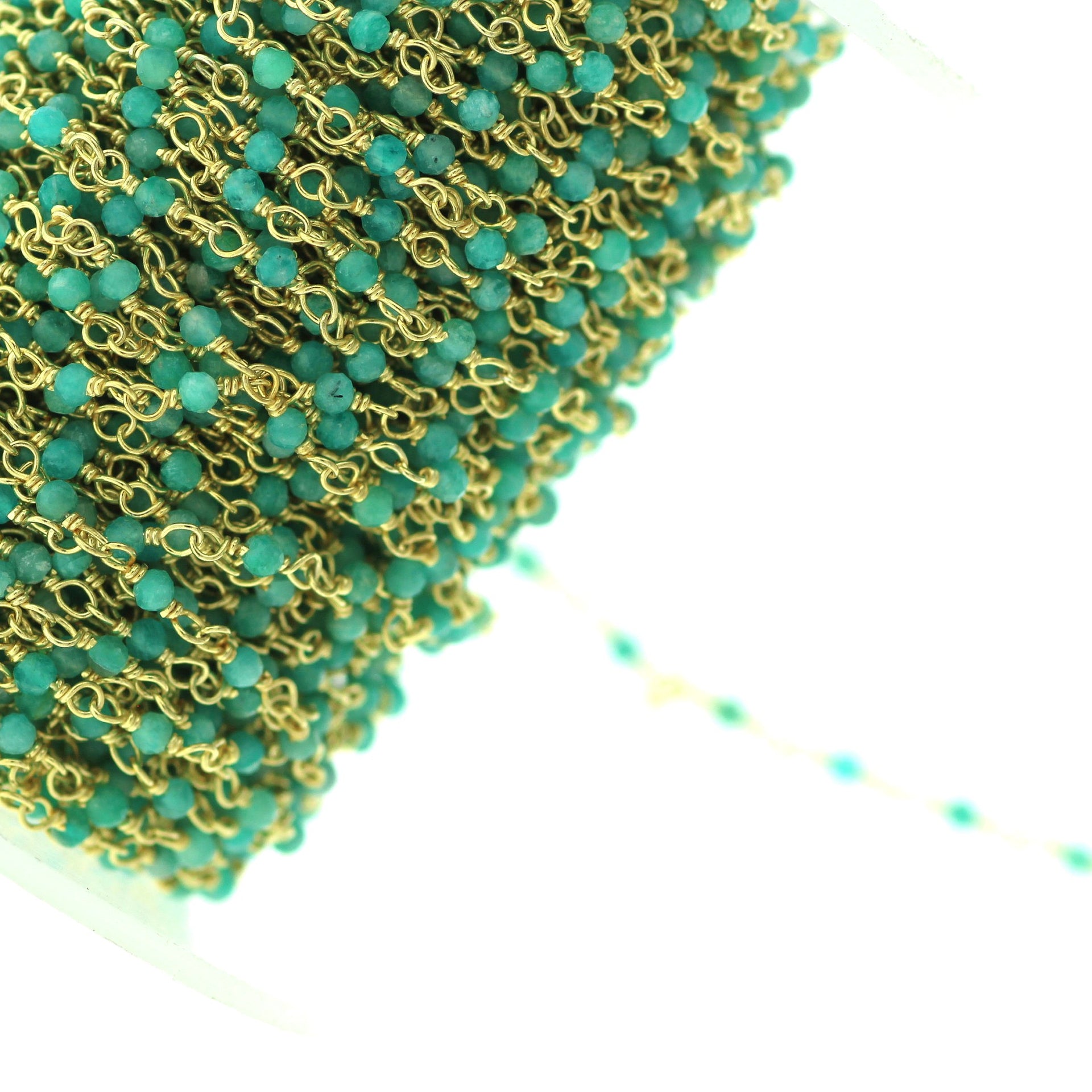 Blue Amazonite 2.5mm Faceted Rounds Rosary Chain Sterling Silver with Gold Plating Wire Wrap Chain by the Foot