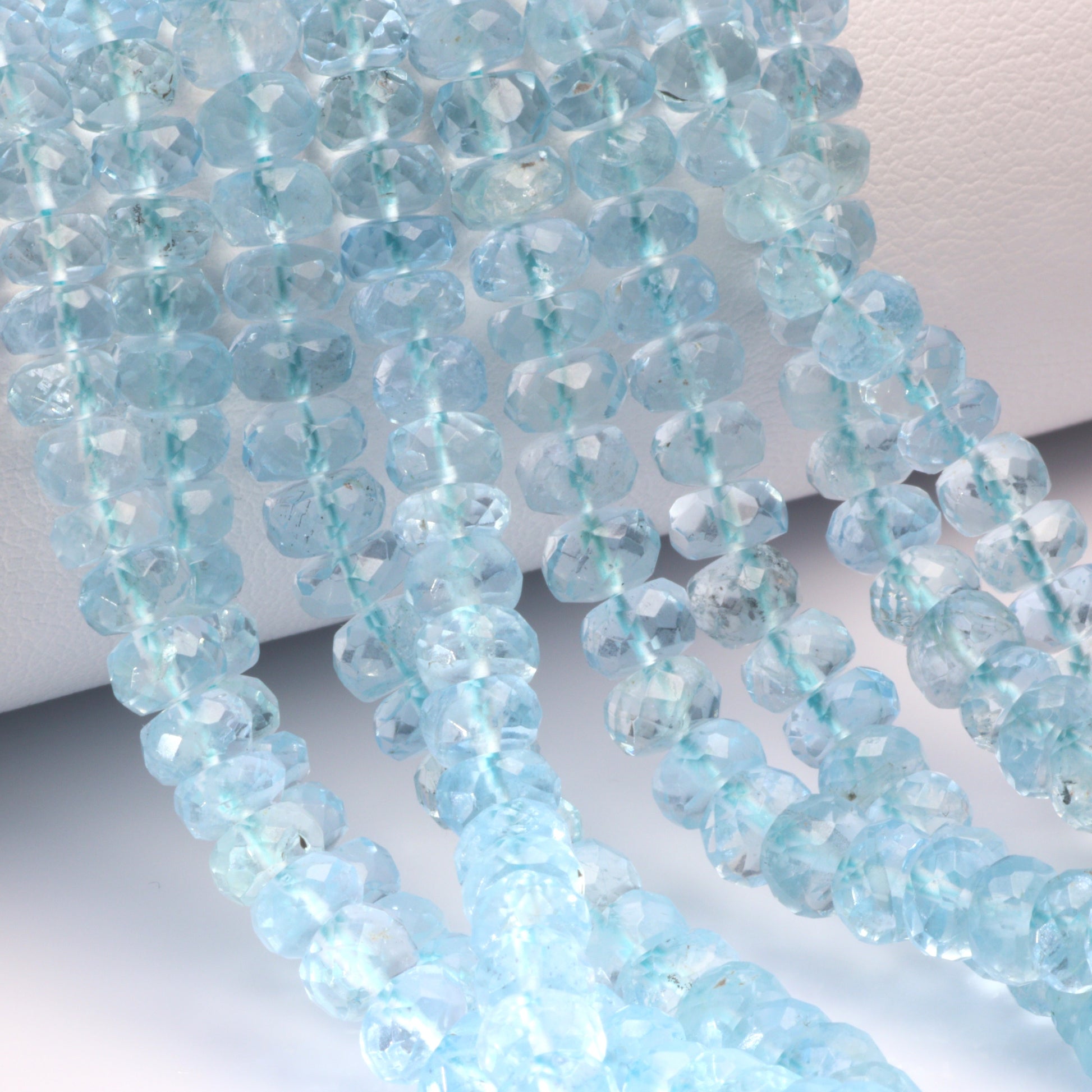 Blue Aquamarine 4.5mm – 5.5mm Faceted Rondelles Bead Strand
