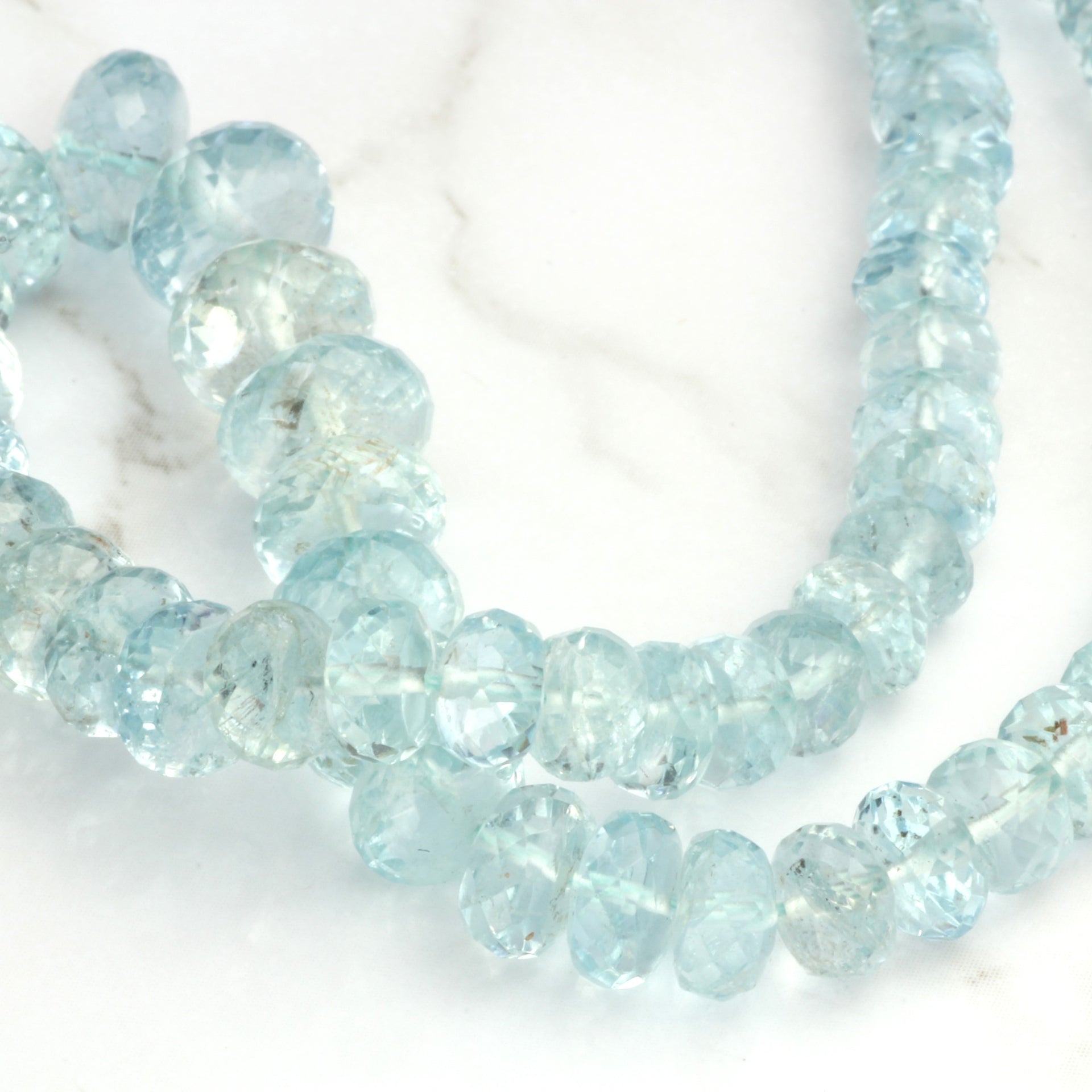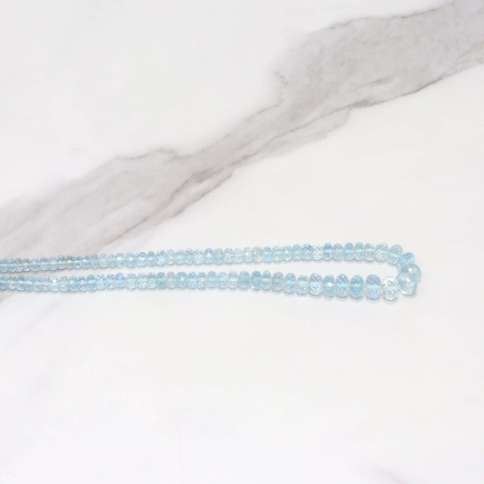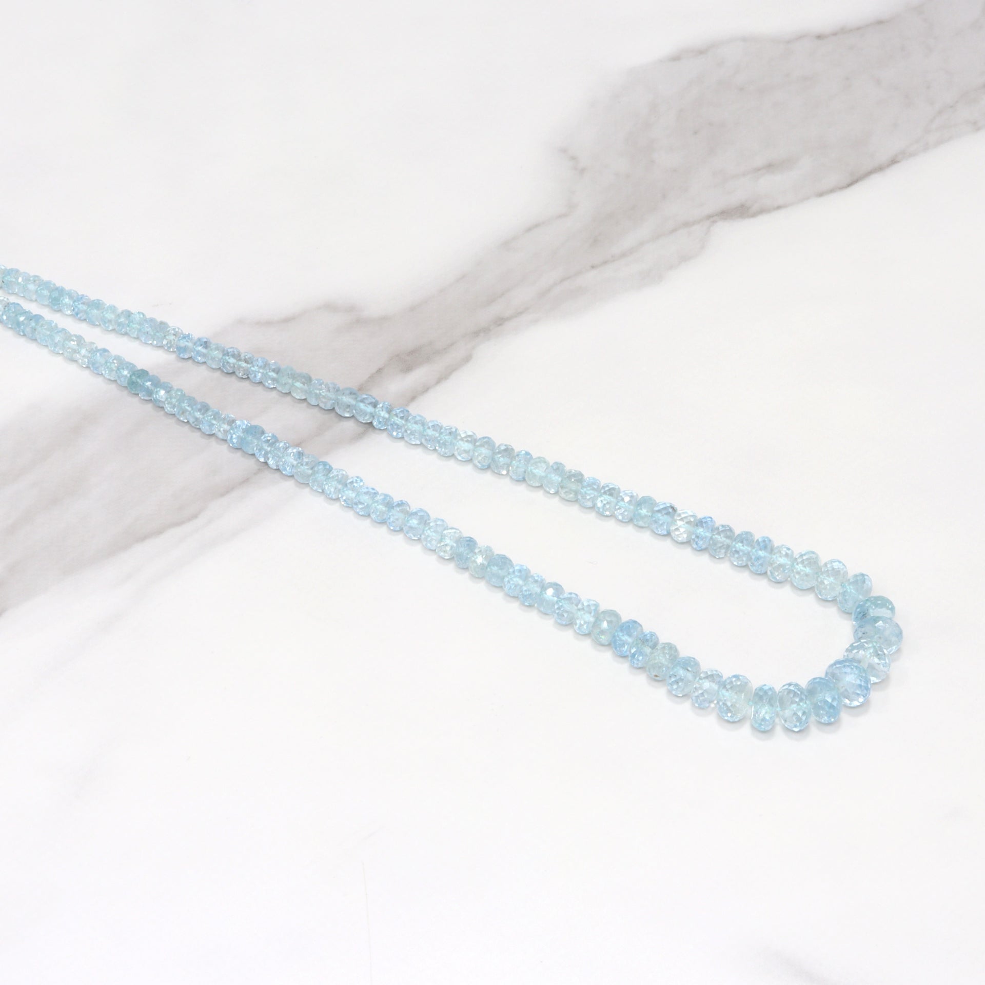 Blue Aquamarine 4mm - 8mm Hand Faceted Rondelles Bead Strand