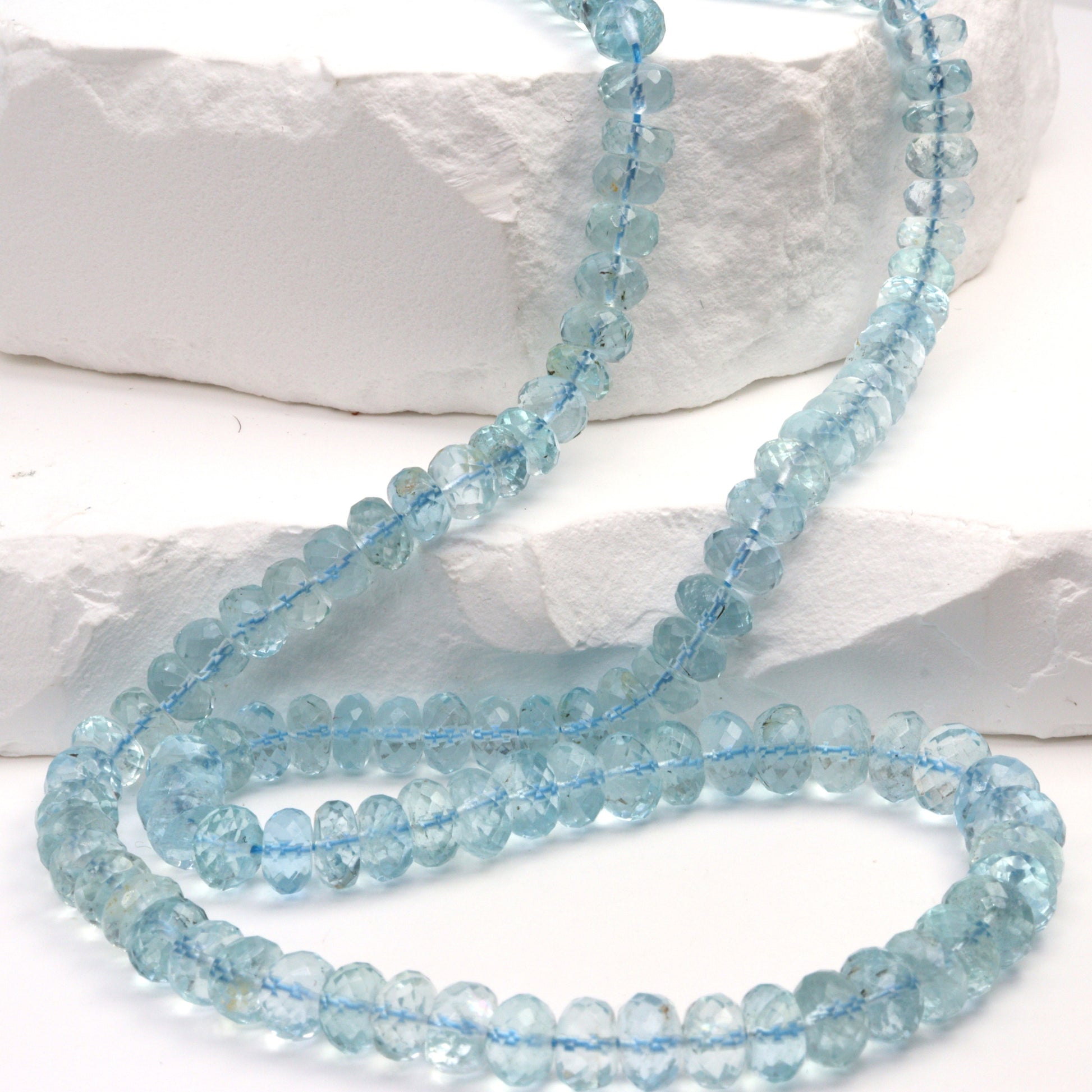Discover the enchanting allure of our 16" Full Bead Strand of Blue Aquamarine Faceted Rondelles. Each bead, measuring 5.5mm, is meticulously crafted to showcase the captivating hues and sparkling facets of genuine aquamarine. Ideal for jewelry designers and stores, these gemstone beads offer a touch of elegance and sophistication to any jewelry piece. Their vibrant blue color, reminiscent of the sea, adds a serene and calming effect, making them perfect for creating stunning necklaces, bracelets, and earrings. As a trusted gemstone wholesaler, we ensure that every bead strand we supply is of the highest quality, promising durability and long-lasting beauty. Elevate your jewelry designs with the mesmerizing charm of our Blue Aquamarine Faceted Rondelles.