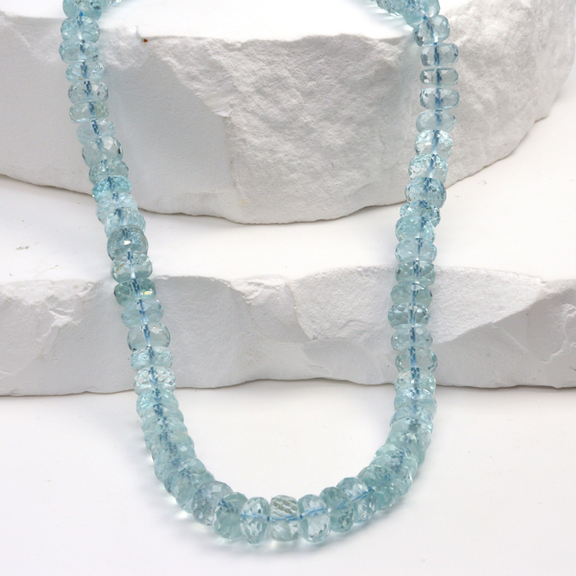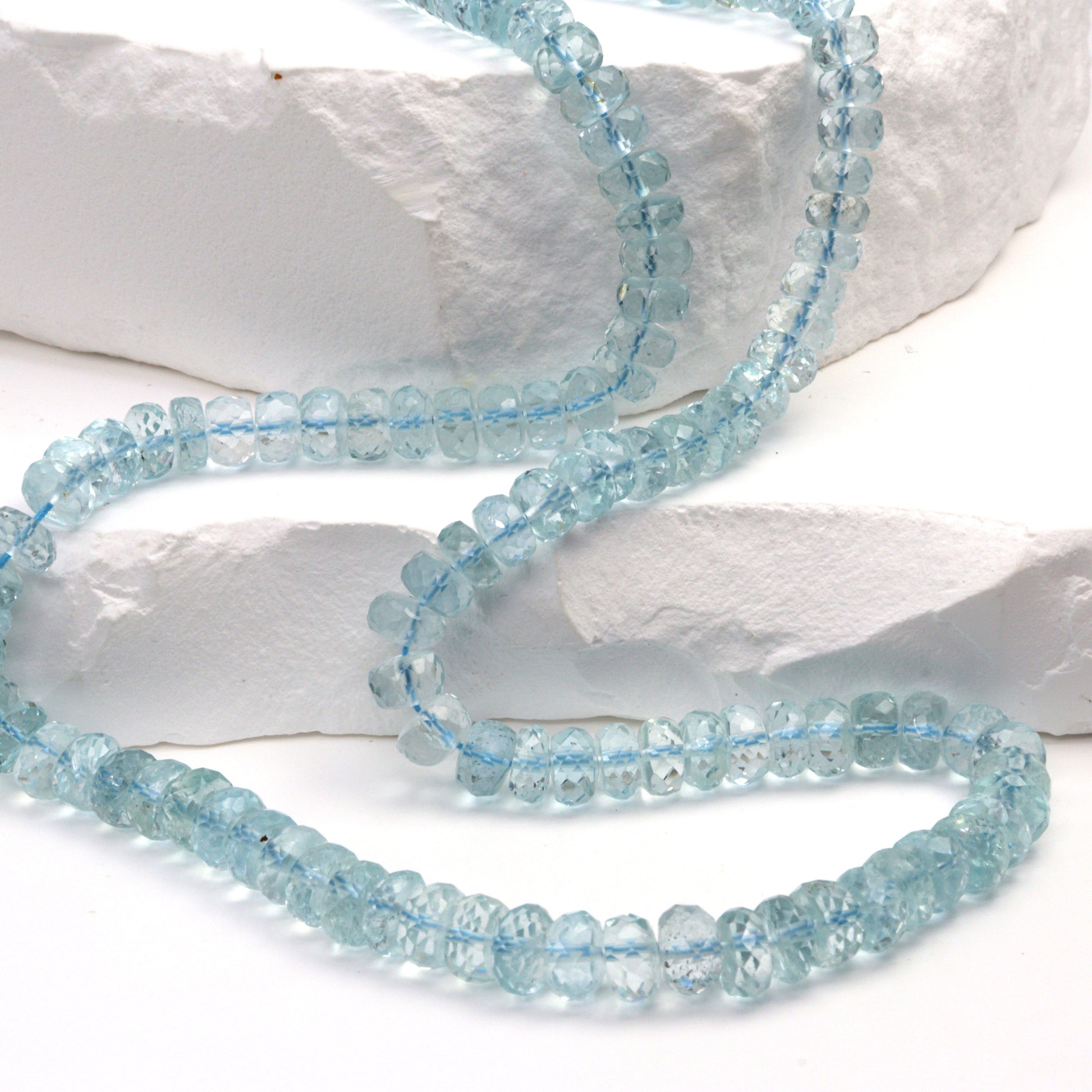 Discover the enchanting allure of our 16" Full Bead Strand of Blue Aquamarine Faceted Rondelles. These 5mm beads are meticulously crafted, boasting a captivating blue hue that mirrors the serene beauty of the sea. Each bead is faceted to perfection, ensuring a brilliant sparkle that enhances any jewelry design. Ideal for jewelry designers and stores, these high-quality aquamarine beads offer a touch of elegance and sophistication to any piece. As a gemstone wholesaler, we provide these exquisite beads in bulk, ensuring you have the premium materials you need to create stunning, unique jewelry. Elevate your designs with the tranquil beauty of our Blue Aquamarine Faceted Rondelles.