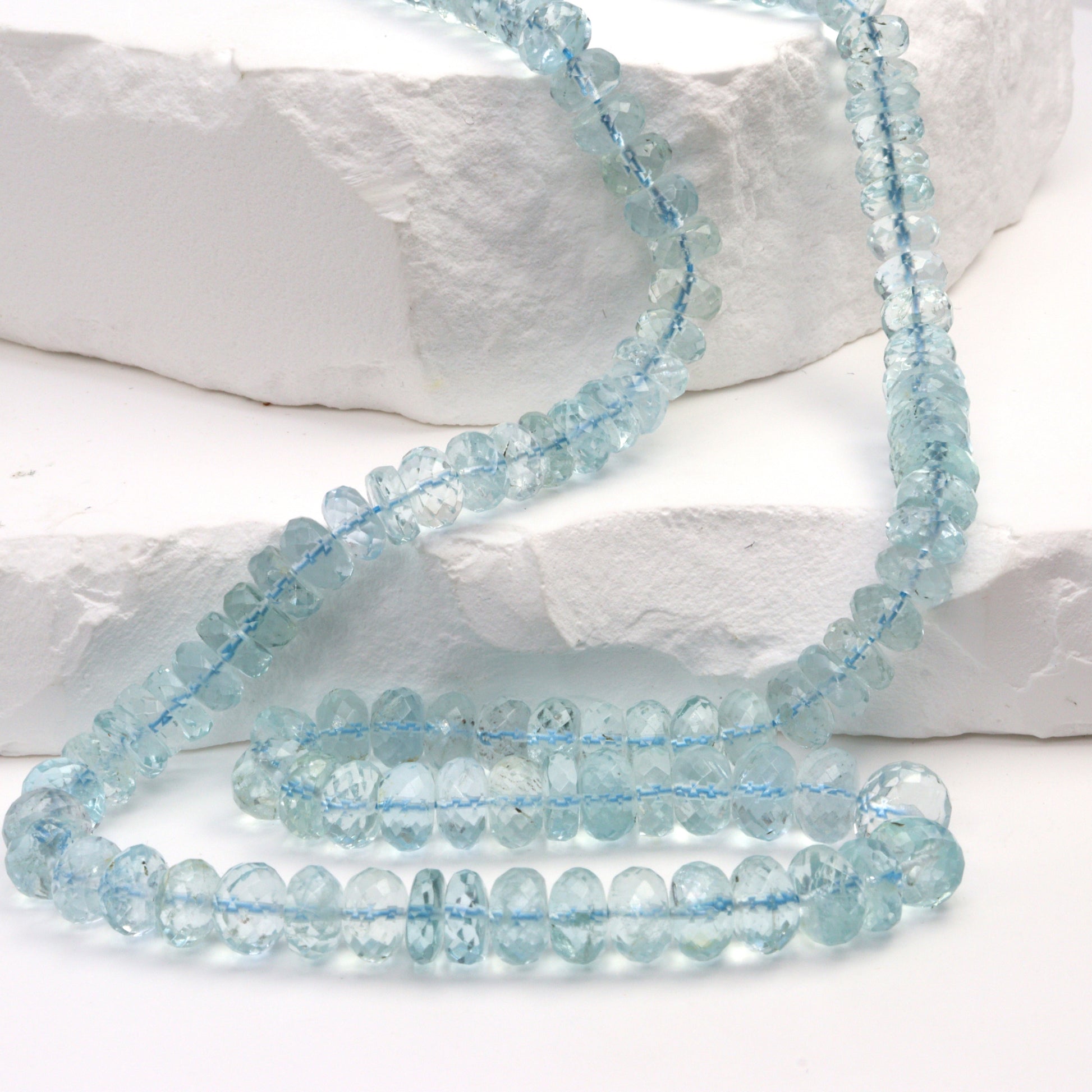 Blue Aquamarine 6mm - 7mm Faceted Rondelles Bead Strand