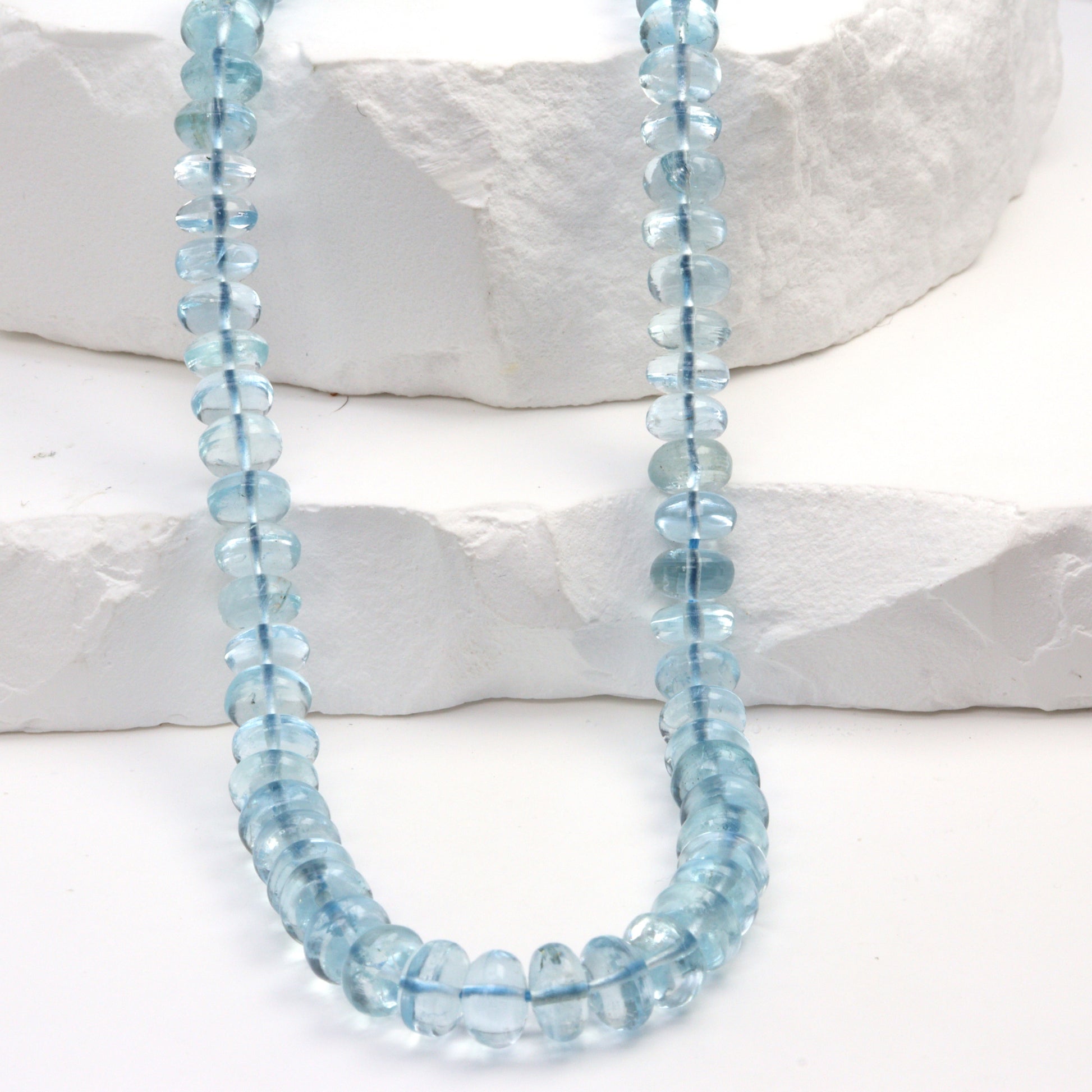 Embark on a journey of serenity and elegance with our Blue Aquamarine 6-7mm Smooth Rondelle Beads, a must-have for any discerning jeweler or designer. Each strand of these beads encapsulates the tranquil essence of the sea, with smooth rondelles that range from 6 to 7mm in size, showcasing the soothing, gentle hues of blue aquamarine. The smooth finish of each bead reflects a serene, polished look, making them perfect for creating sophisticated and timeless jewelry pieces. These beads are ideal for those who prefer a more understated elegance, lending themselves beautifully to both modern minimalist designs and classic, ornate creations. Aquamarine, known for its calming properties and connection to the sea, adds not just a splash of color but also a sense of peace and clarity to your designs. Perfect for crafting necklaces, bracelets, or earrings that evoke the tranquility of the ocean, our Blue Aquamarine Smooth Rondelle Beads are an exquisite choice for designers aiming to offer their clients a touch of refined beauty and a tranquil aesthetic.
