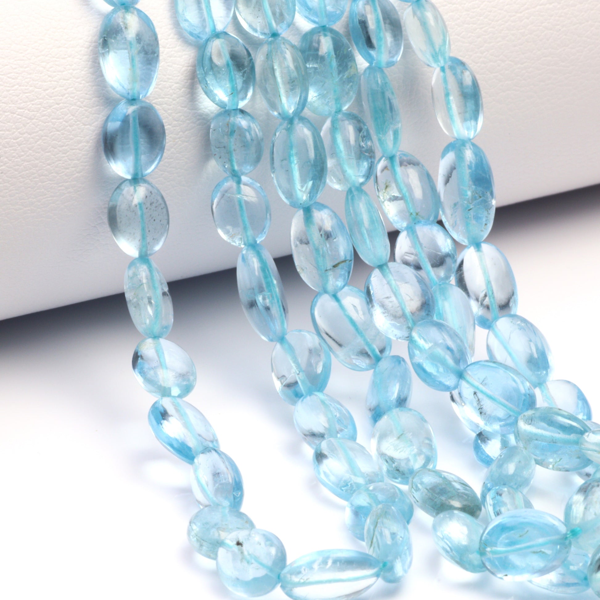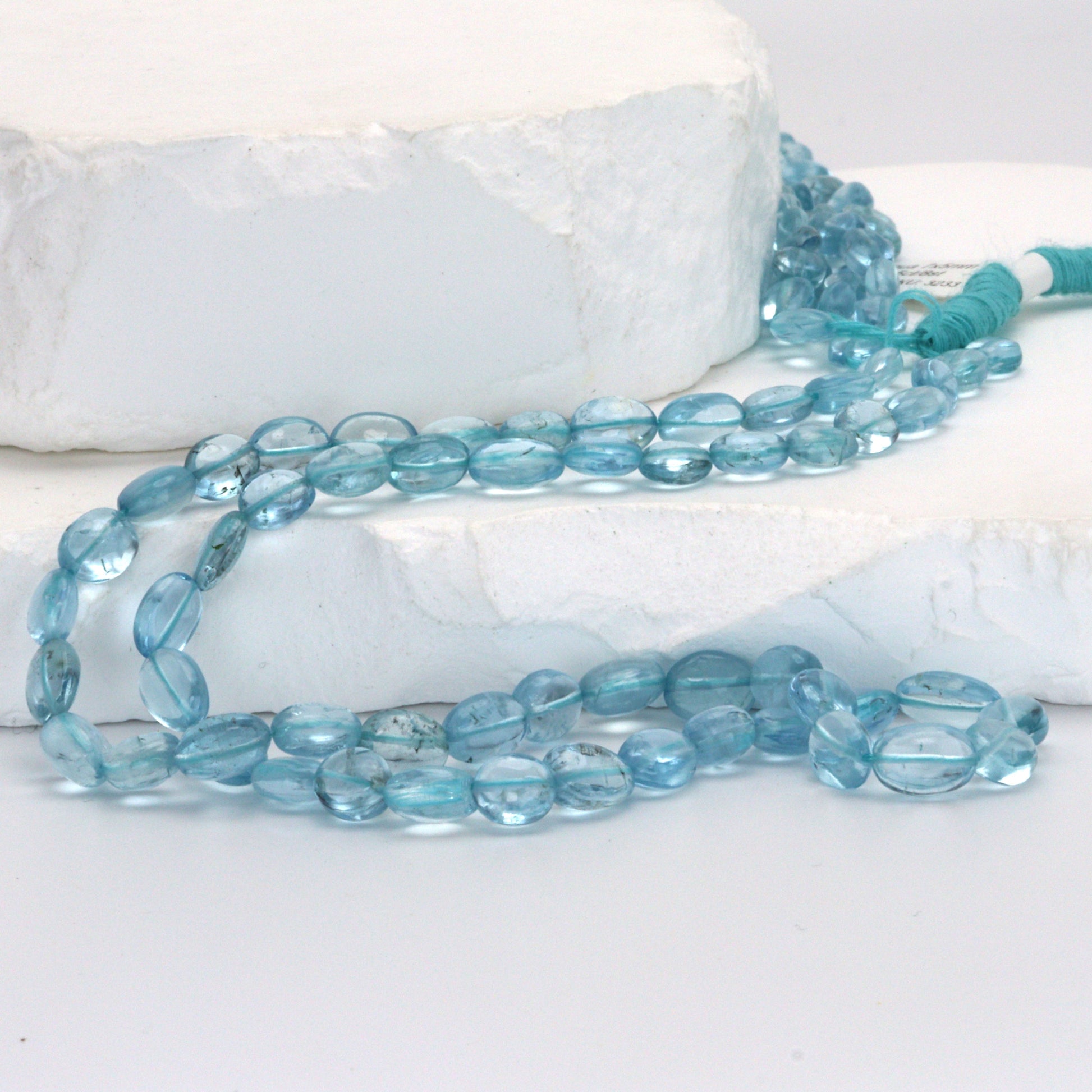 Blue Aquamarine 7x5mm - 8x6mm Smooth Ovals Bead Strand