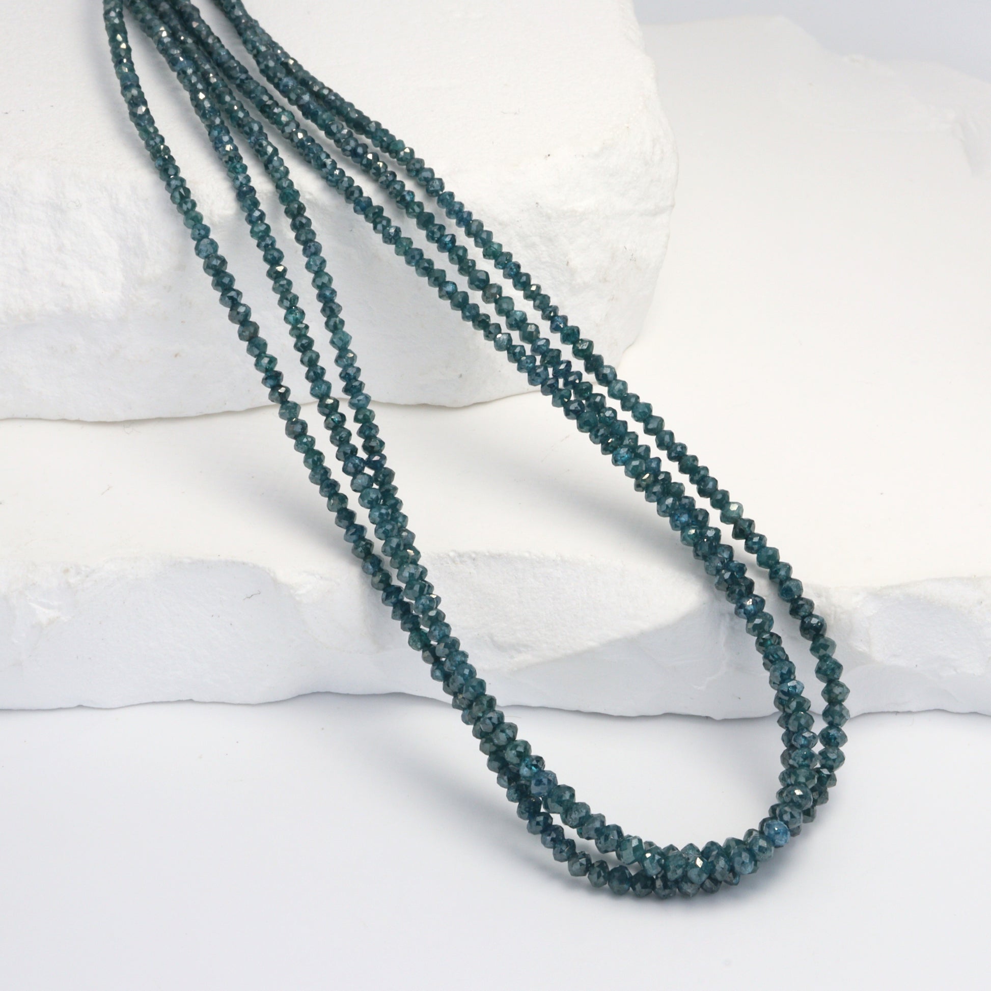 Blue Diamond 2.1mm - 2.8mm Hand Faceted Rondelles Bead Strand