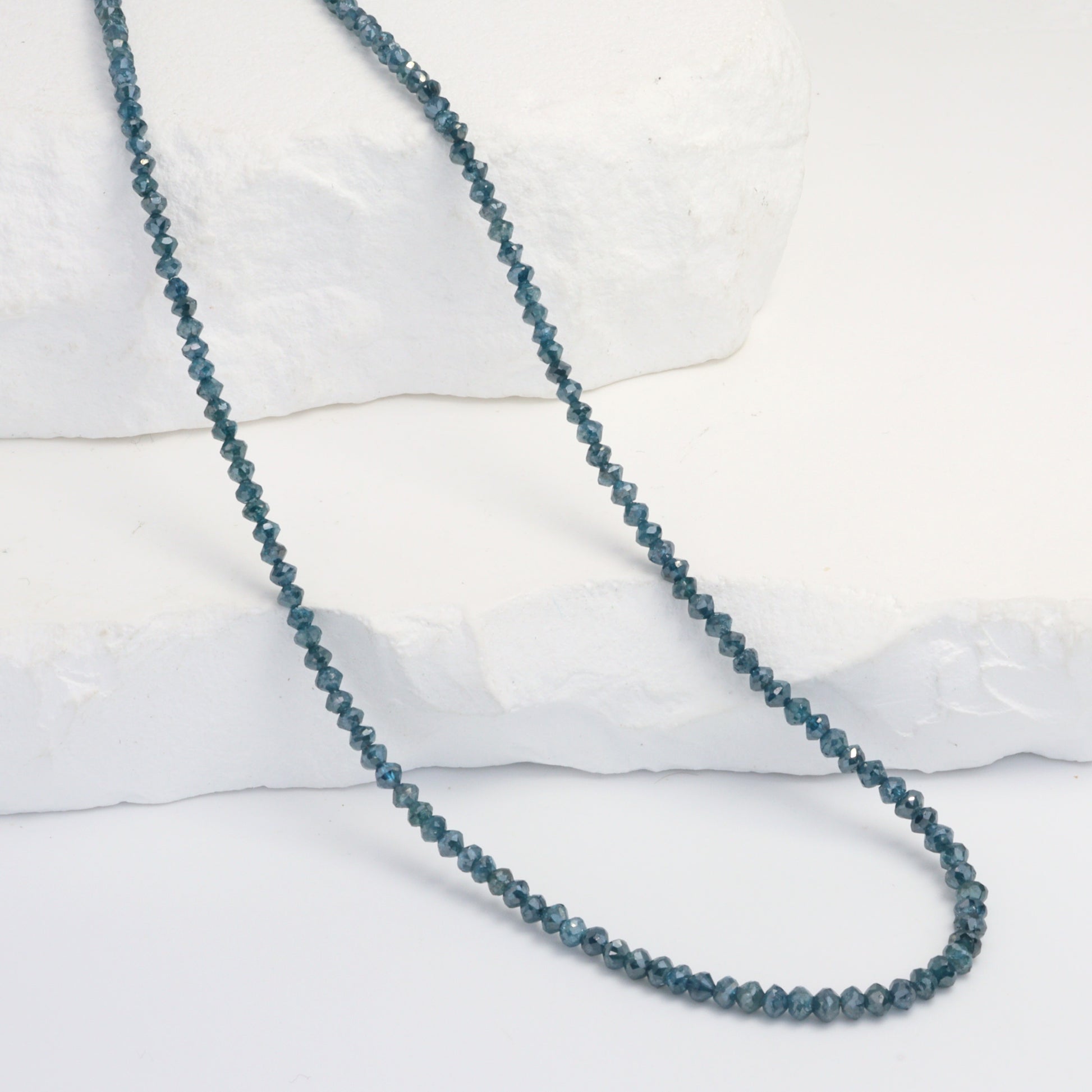Elevate your jewelry designs with the rare and exquisite allure of our Blue Diamond 2mm - 2.6mm Hand Faceted Rondelle Bead Strand. Each bead in this luxurious strand has been hand-faceted with meticulous care, showcasing the unique brilliance and captivating sparkle of blue diamonds. Ranging from 2mm to 2.6mm in size, these rondelles offer a delicate yet impactful presence, perfect for creating high-end jewelry pieces. The deep, mesmerizing blue of each diamond reflects the sophistication and exclusivity that only rare gemstones can offer. Ideal for crafting elegant necklaces, bracelets, or earrings, these beads add a touch of opulence and timeless grace to any design. Blue diamonds are not only known for their stunning beauty but also for their symbolism of eternity and strength, making this strand a meaningful addition to luxury collections. Whether you're designing for the discerning collector or for a special occasion, our Blue Diamond Hand Faceted Rondelle Bead Strand is a standout choice, promising to bring a touch of unparalleled elegance and premium quality to your jewelry creations.