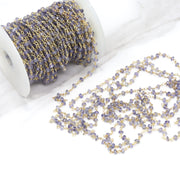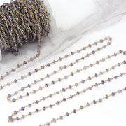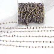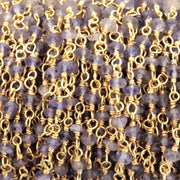 Blue Iolite 3mm Faceted Rondelles Rosary Chain Sterling Silver with Gold Plating Wire Wrap Chain by the Foot