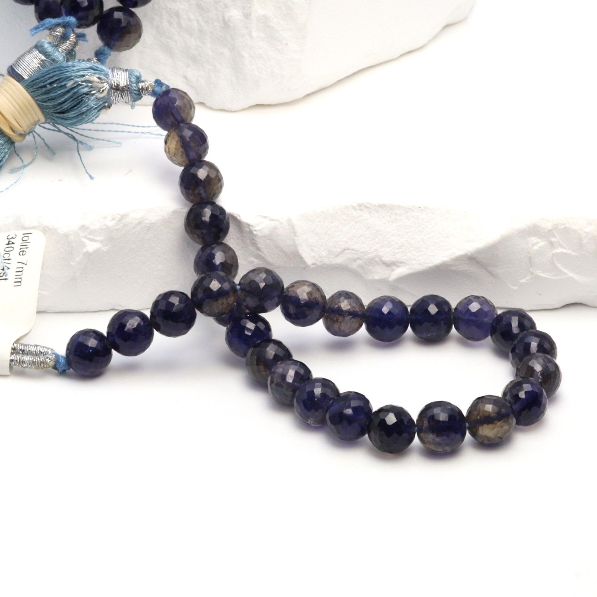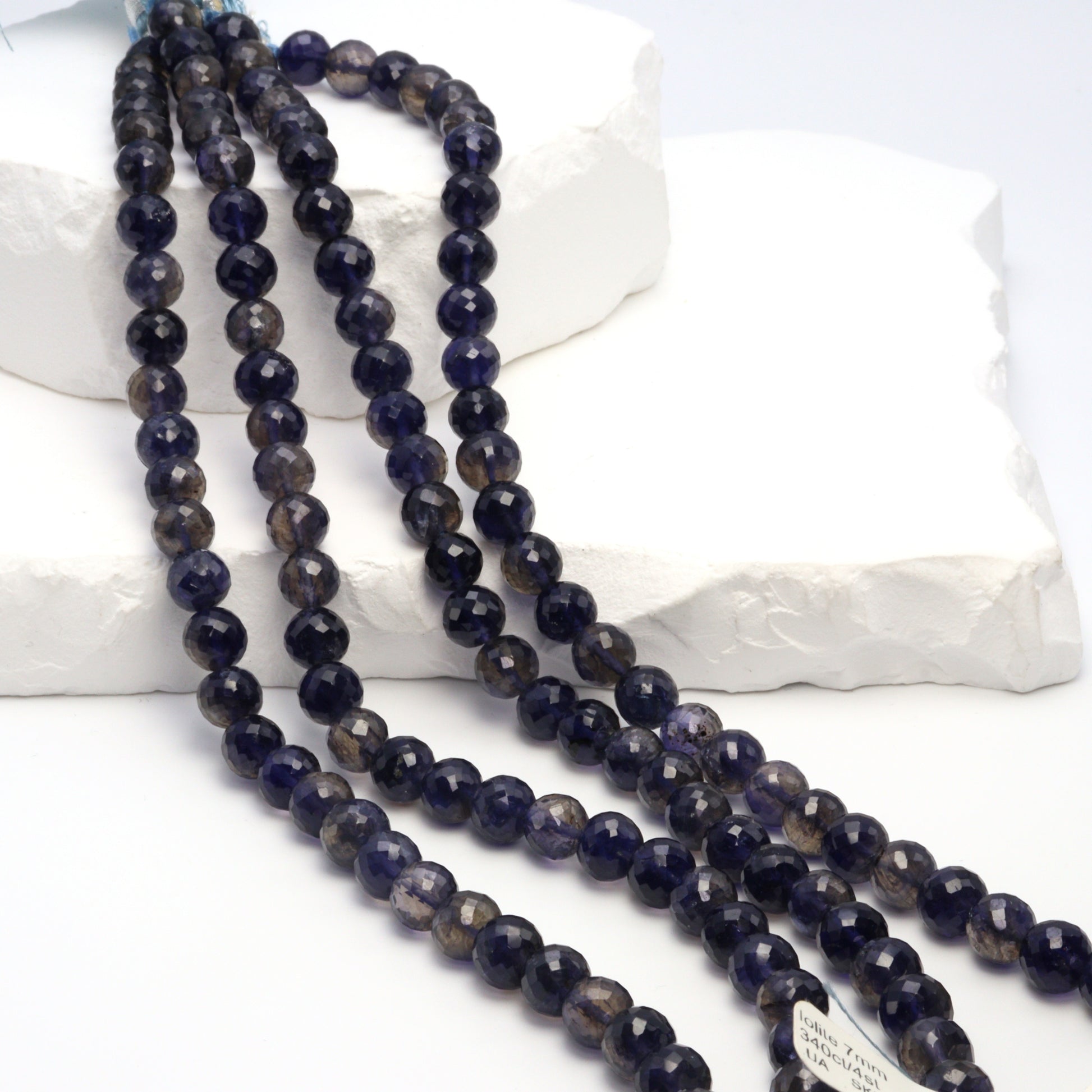 Blue Iolite 7mm Faceted Rounds Bead Strand