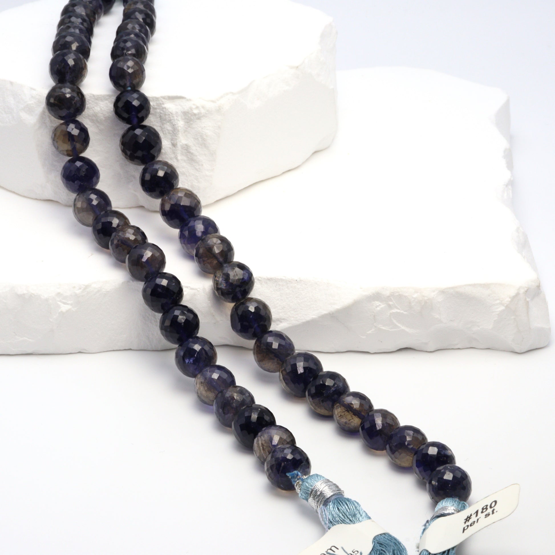 Blue Iolite 9mm Faceted Rounds Bead Strand