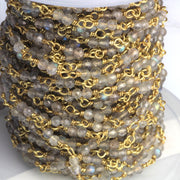 Blue Labradorite 2.5mm Faceted Rounds Double Rosary Chain Sterling Silver with Gold Plating Wire Wrap Chain by the Foot