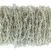 Blue Labradorite 3mm Faceted Rondelles Rosary Chain Sterling Silver Wire Wrap Chain by the Foot